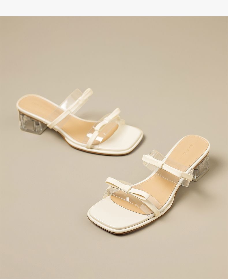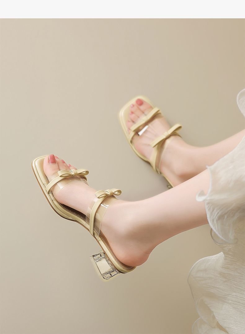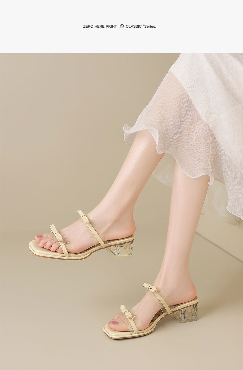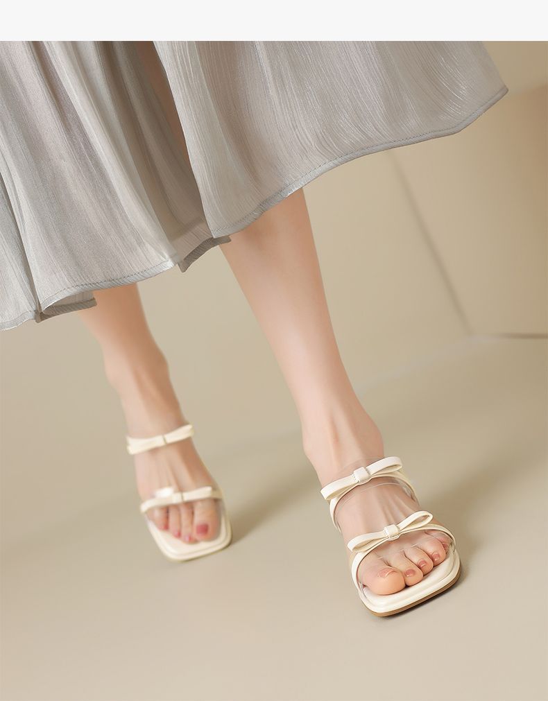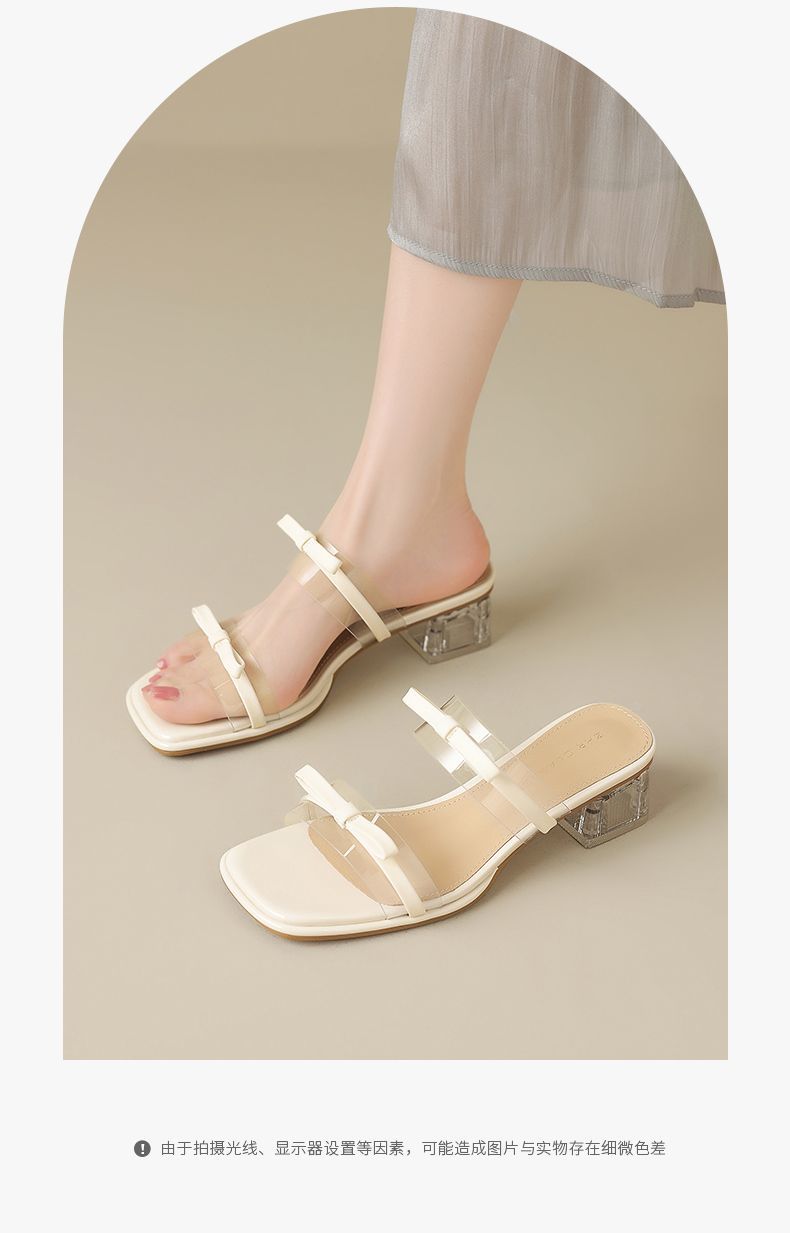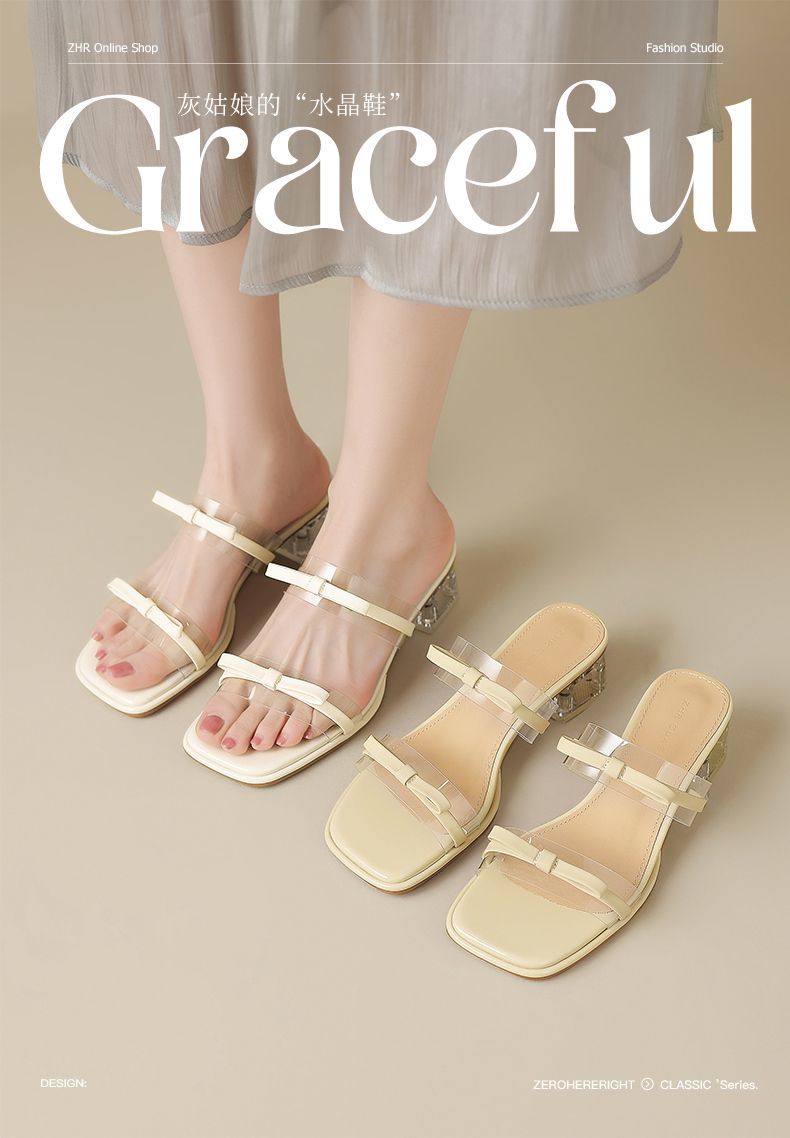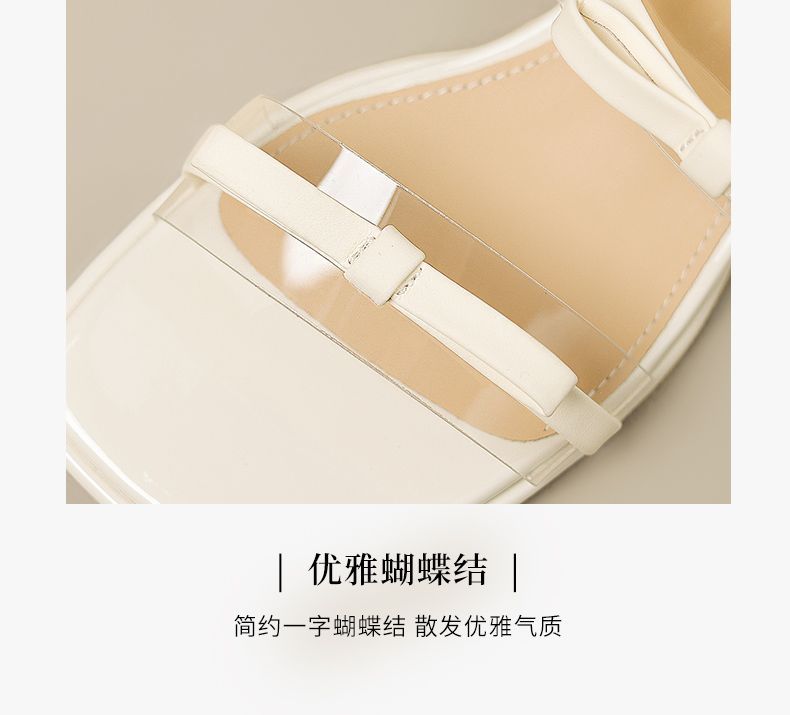 ZHR则则透气外出方根拖鞋透明女2025新款夏季蝴蝶结轻便凉鞋水晶