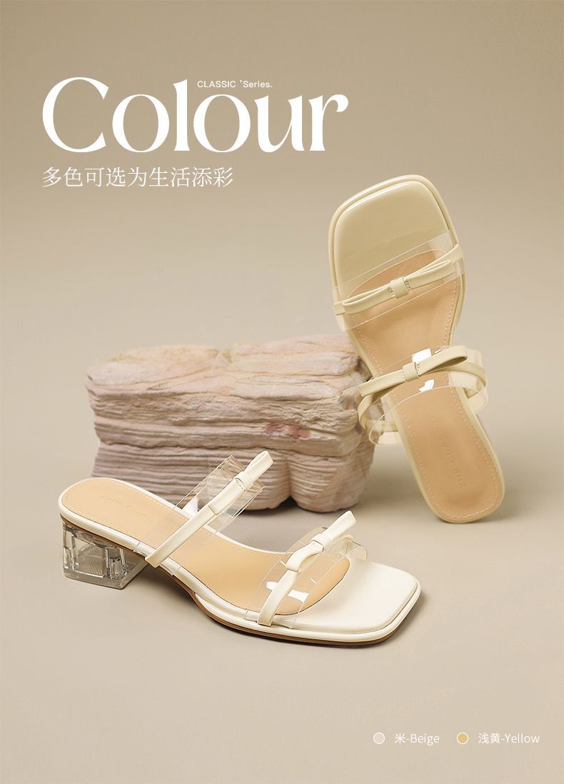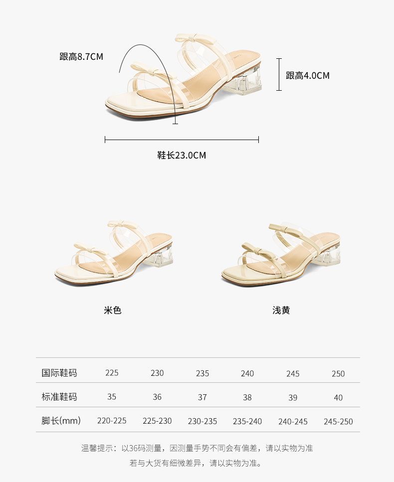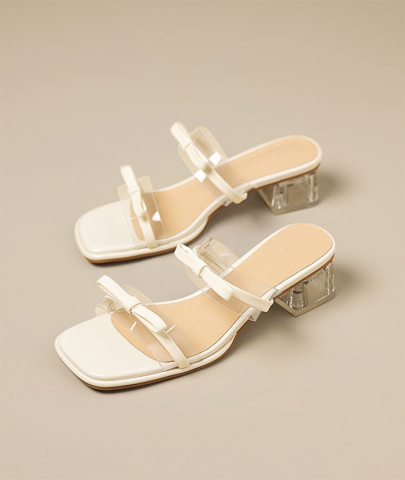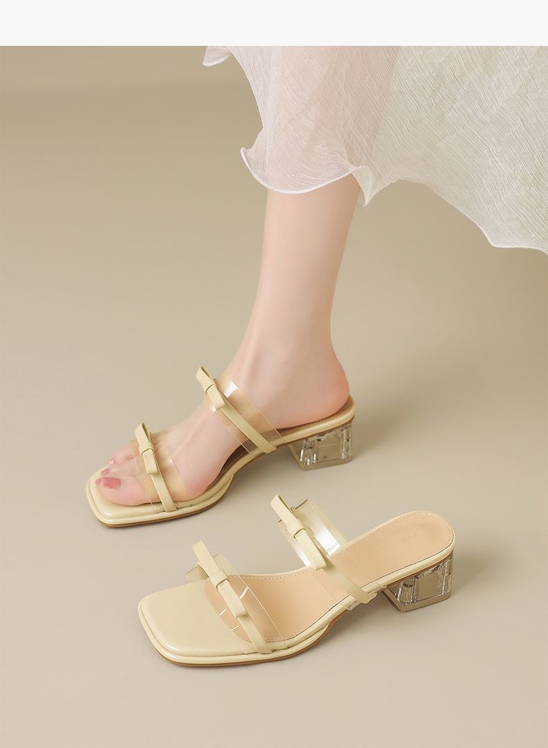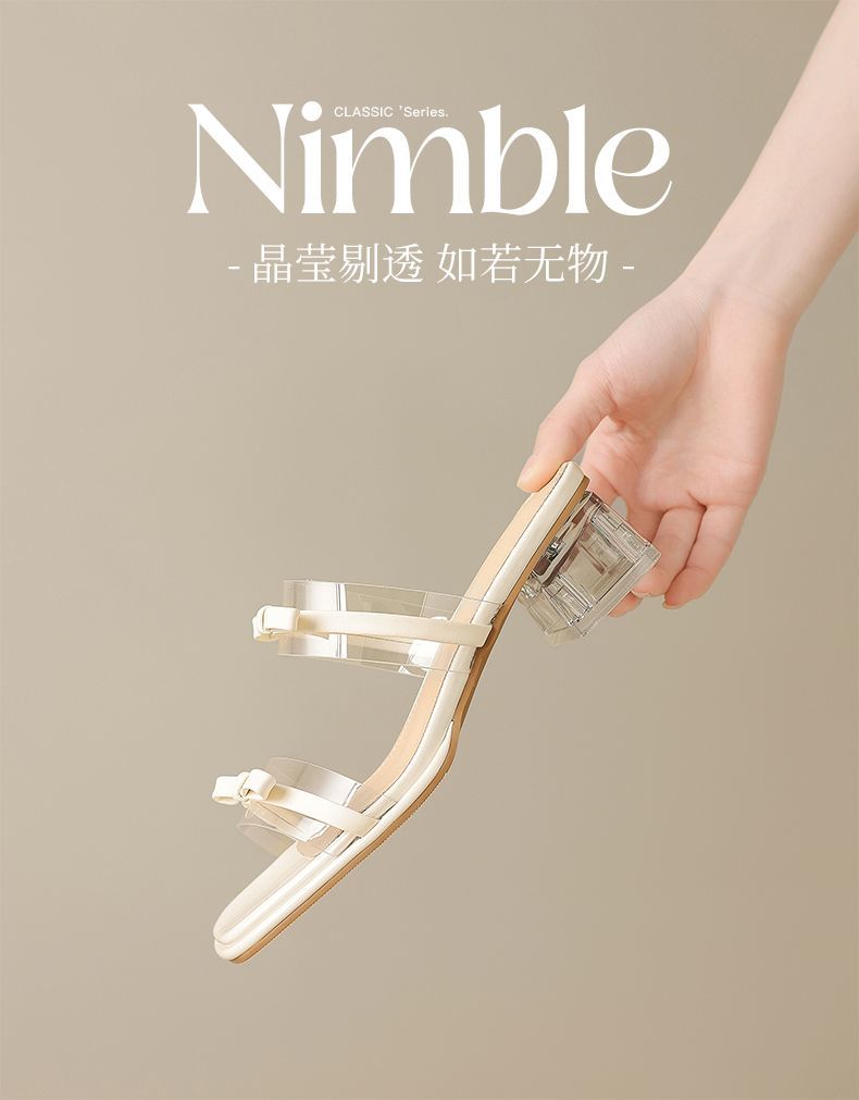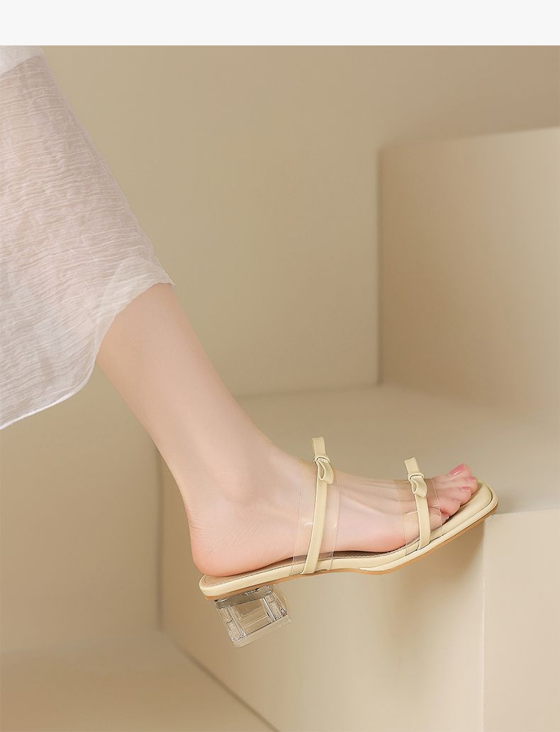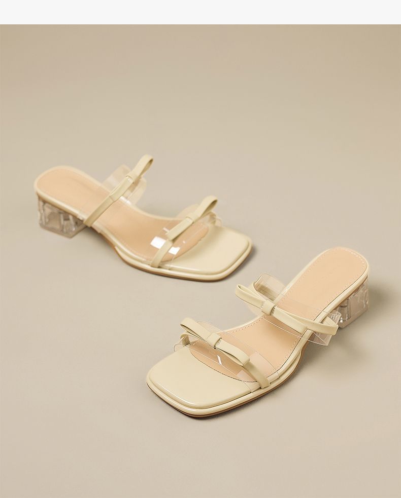 ZHR则则透气外出方根拖鞋透明女2025新款夏季蝴蝶结轻便凉鞋水晶