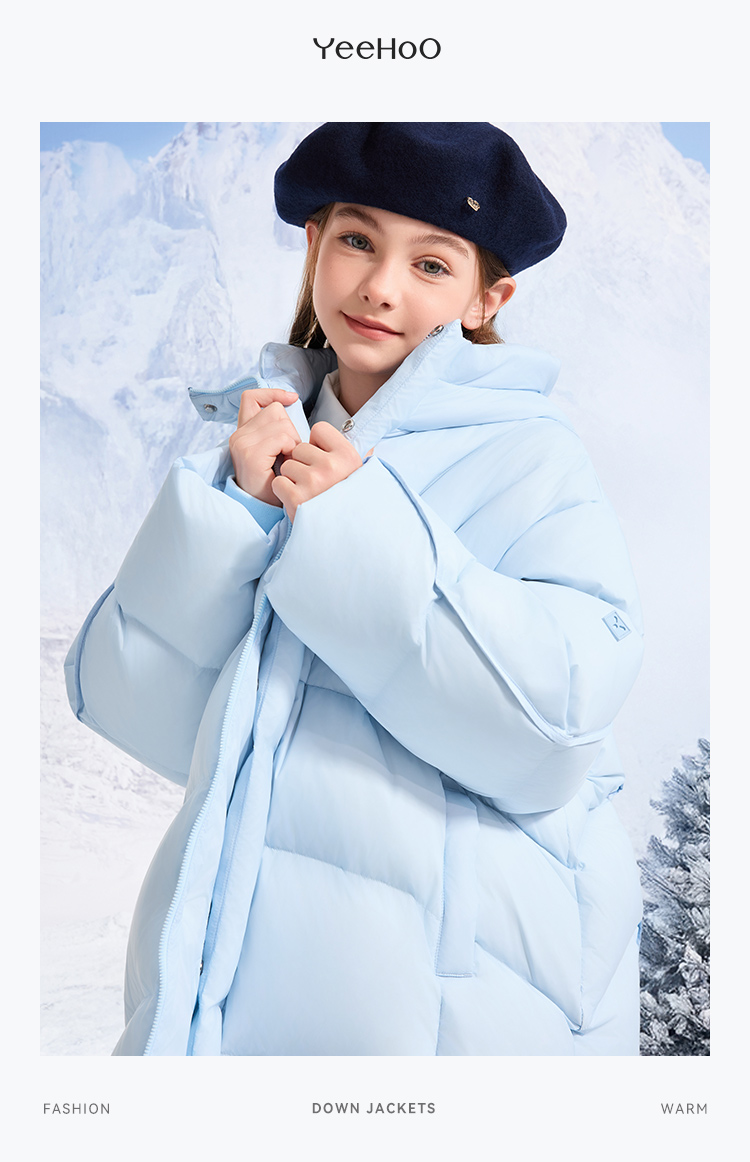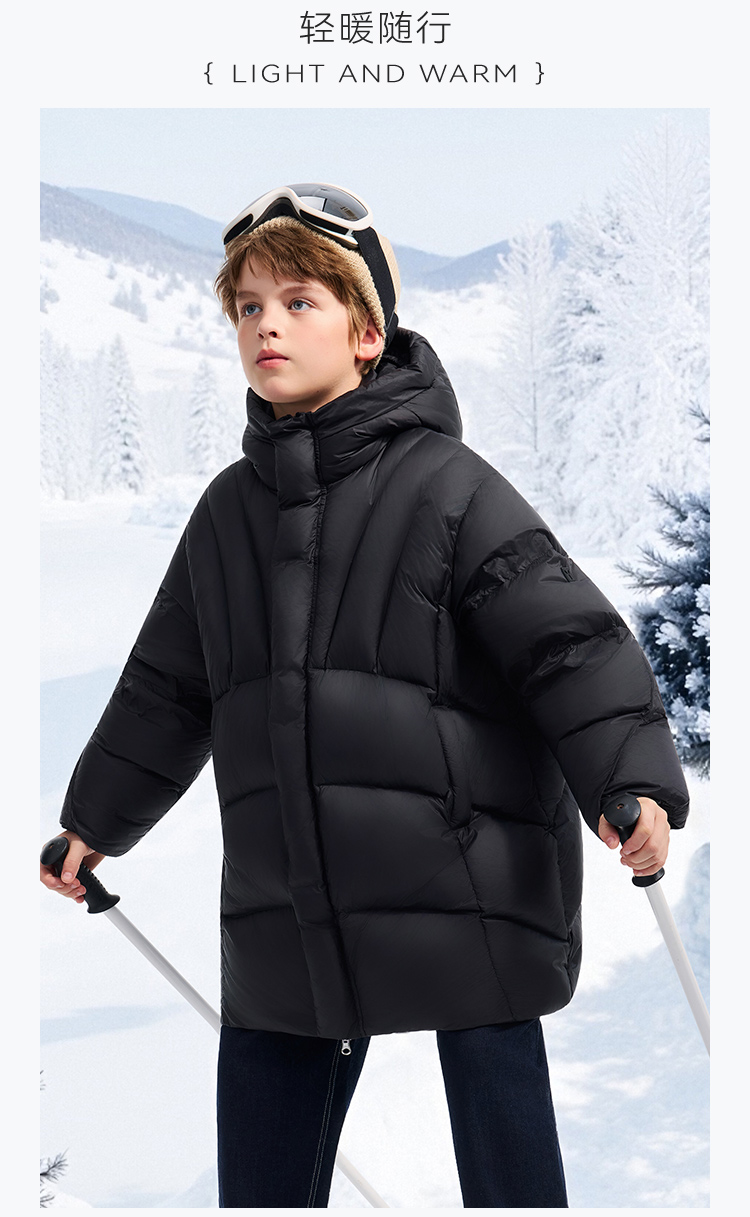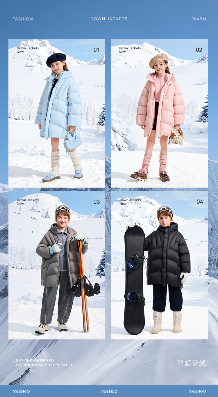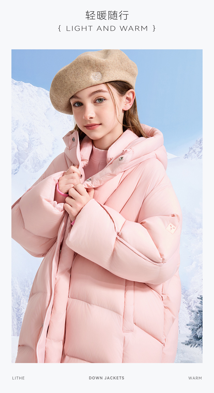 【英氏】【90鹅绒】【90-130】男女童中长款鹅绒服羽绒服