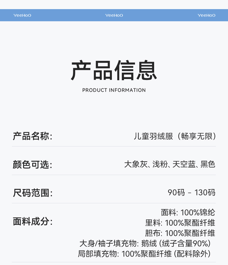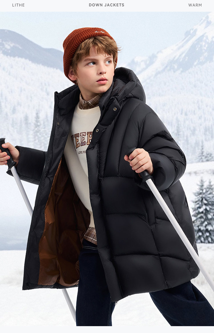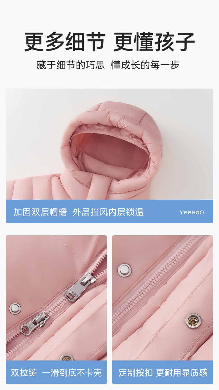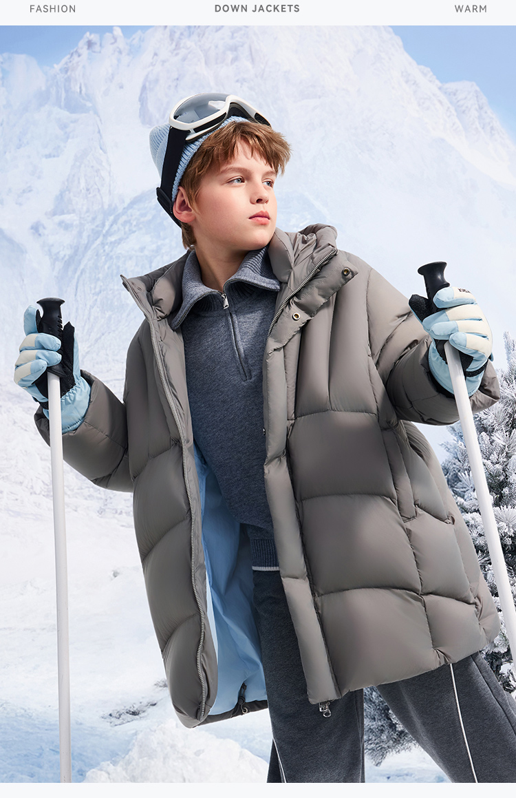 【英氏】【90鹅绒】【90-130】男女童中长款鹅绒服羽绒服