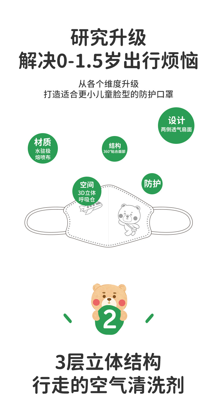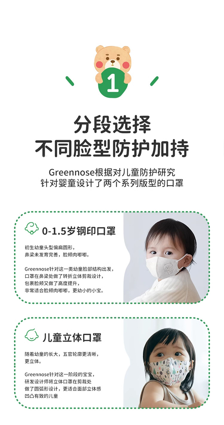 【Greennose绿鼻子】立体钢印口罩10枚装*2包( 0-1.5岁)