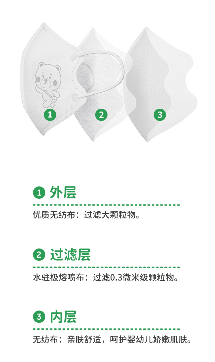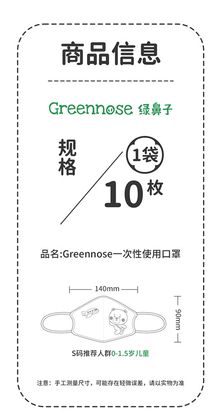 【10枚*2包】Greennose绿鼻子立体钢印口罩10枚装*2包( 0-1.5岁)