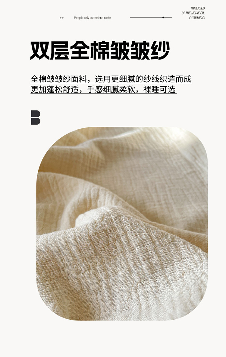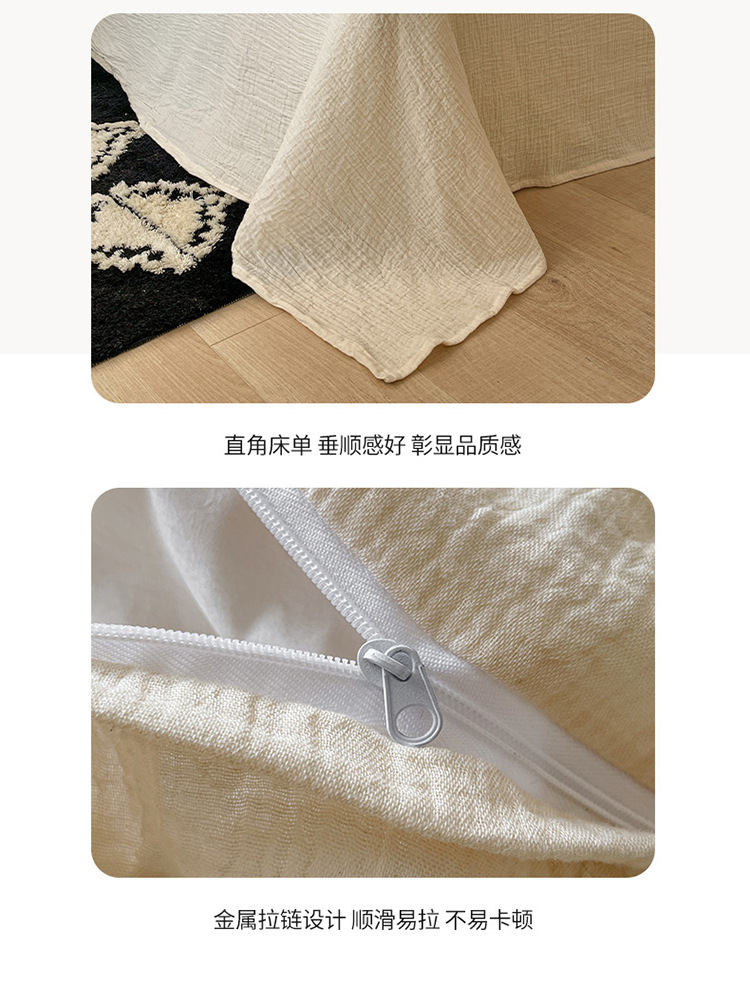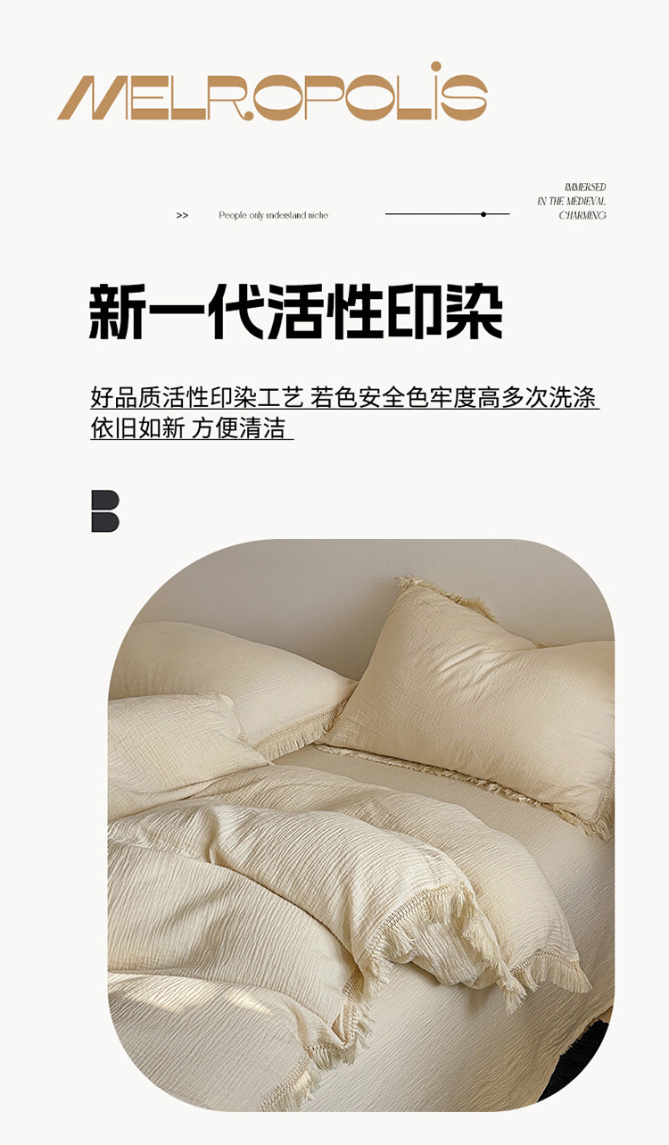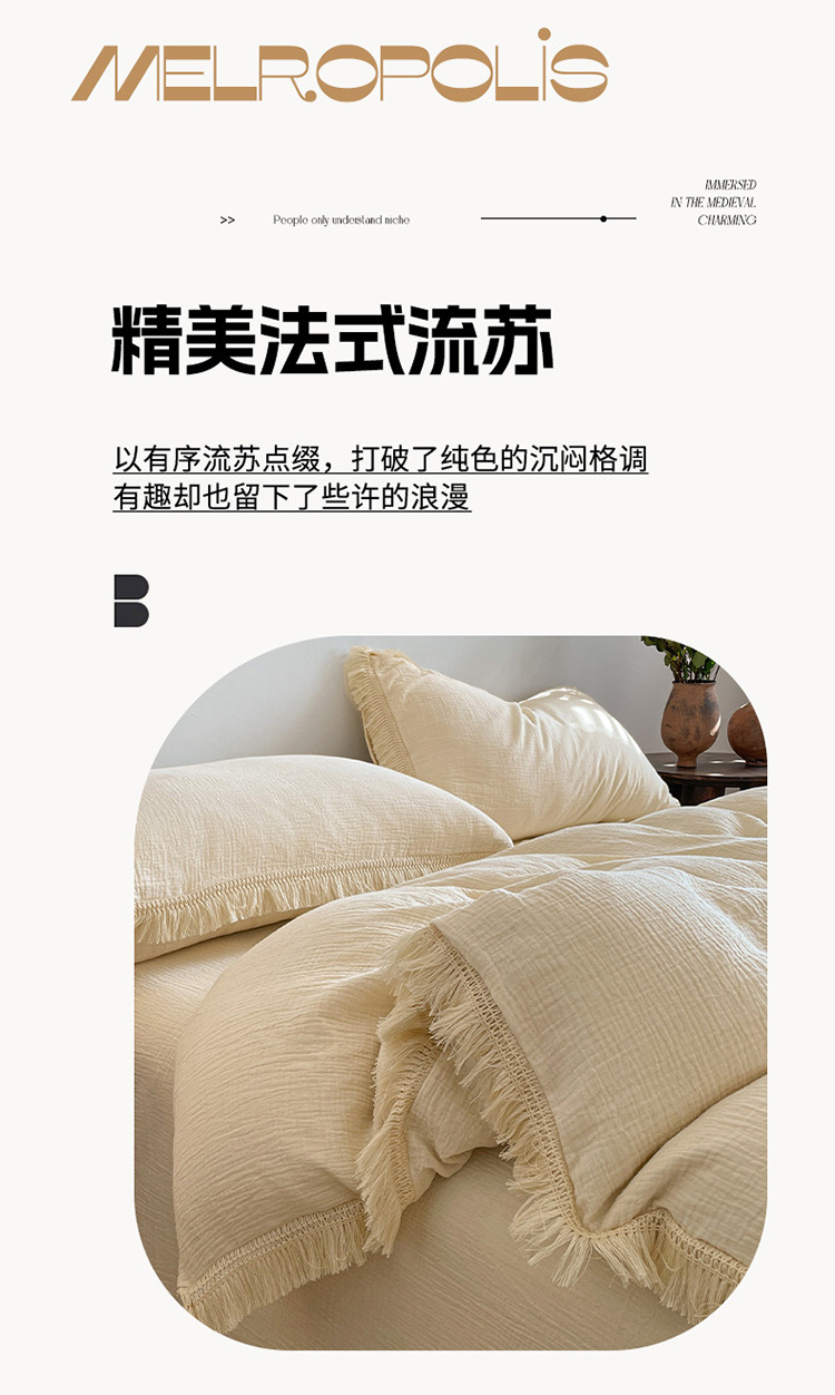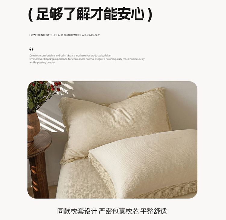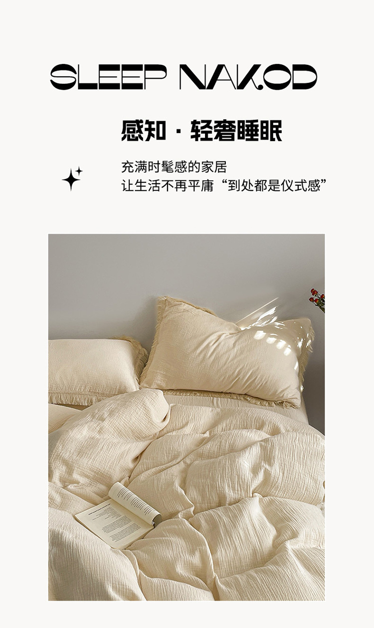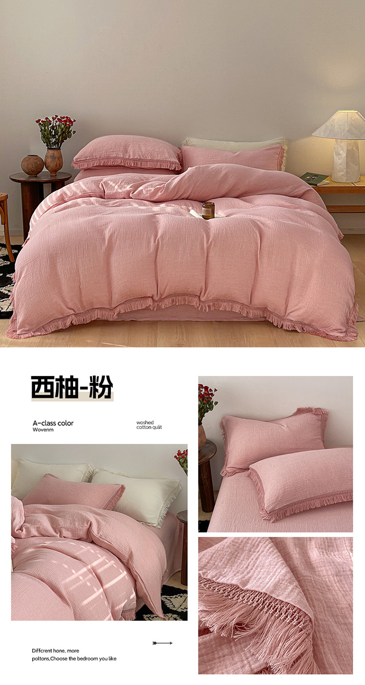 【A类纯棉皱皱纱流苏四件套】全棉双层纱皱皱纱流苏款四件套床品被套纯色A类件套