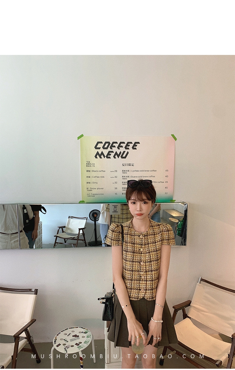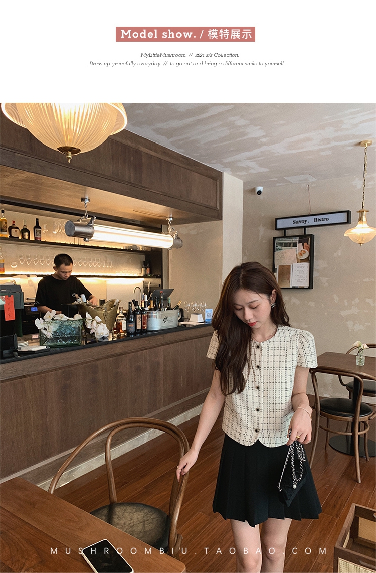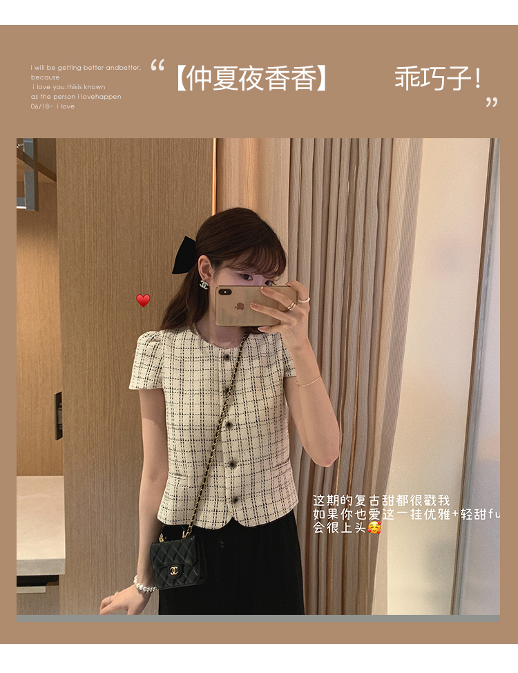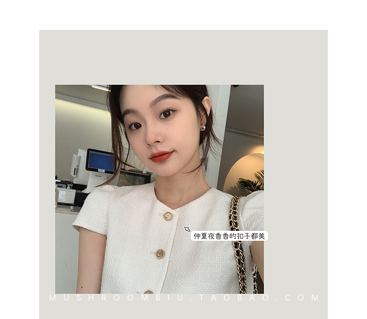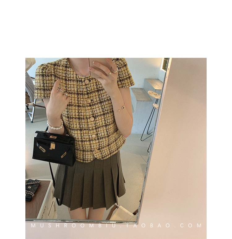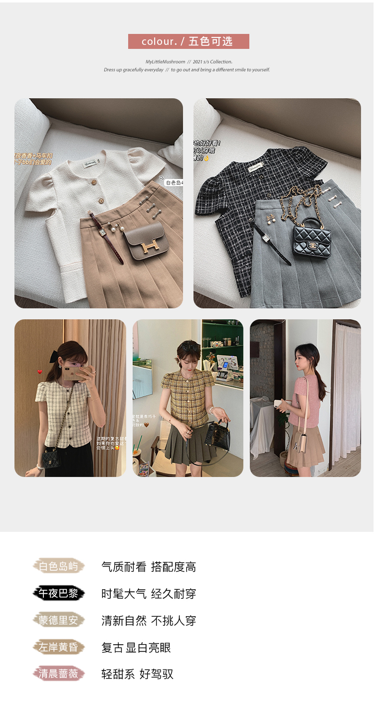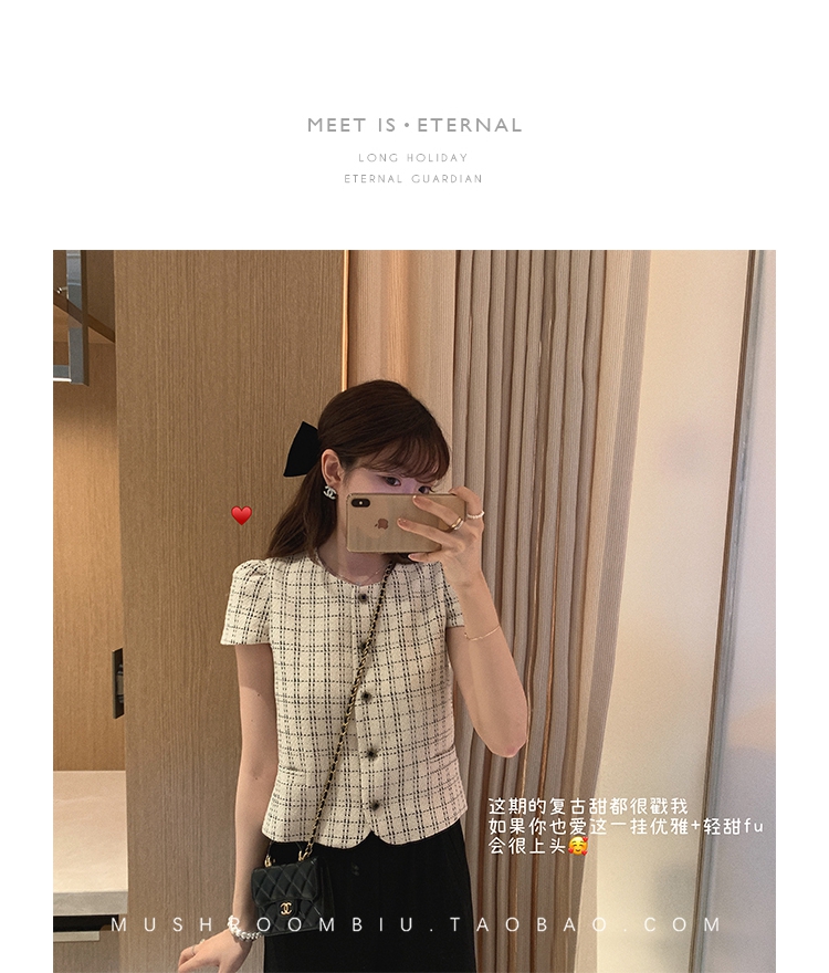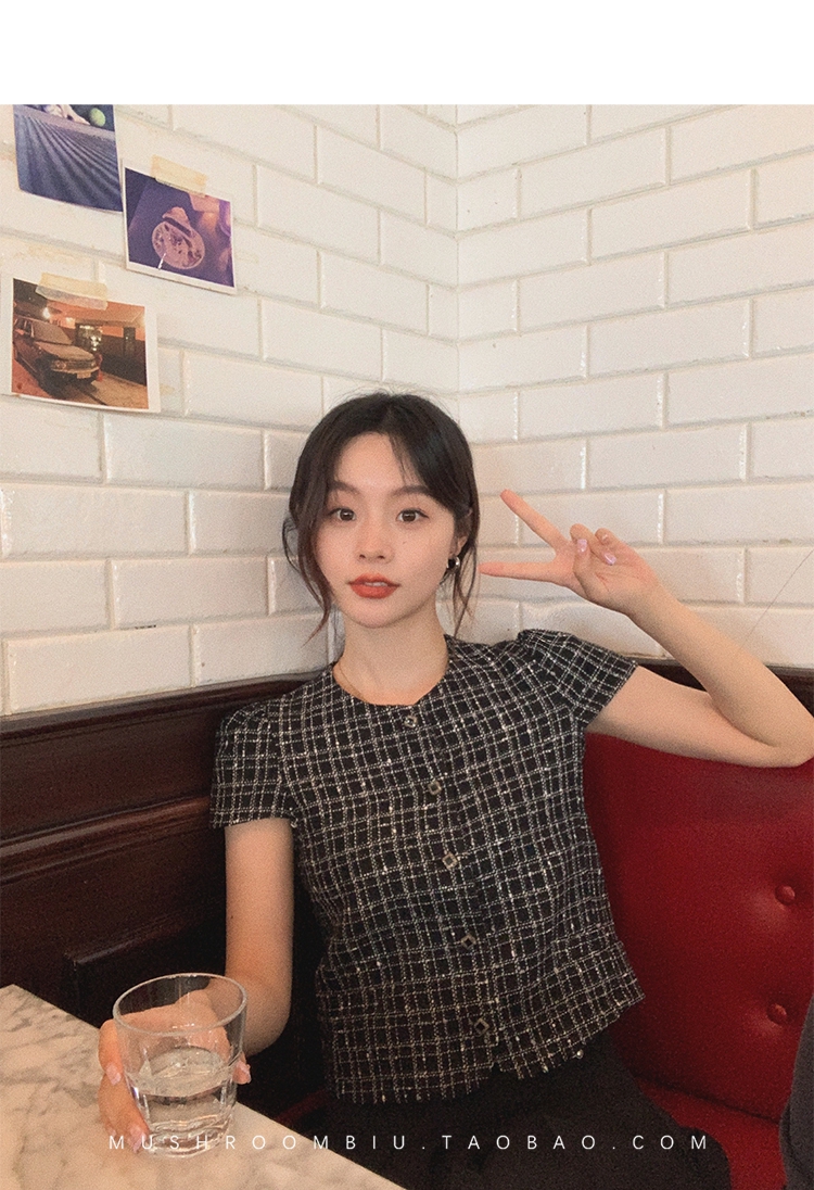 【金蘑菇菇 仲夏夜香香】精致少女风花呢小个子时尚短上衣