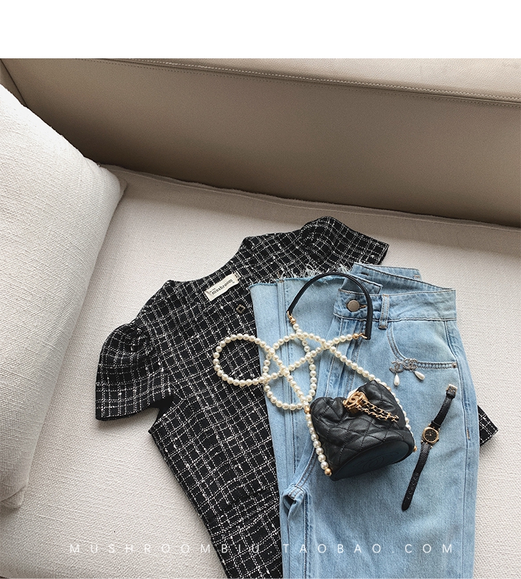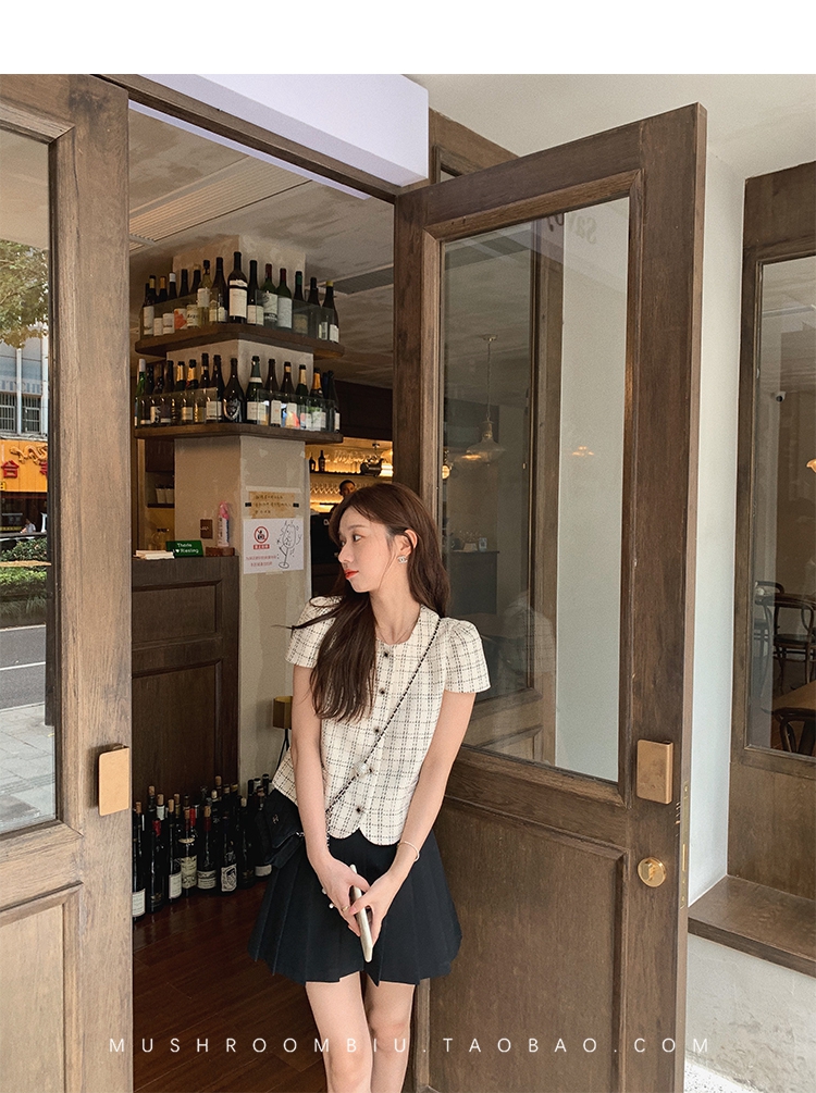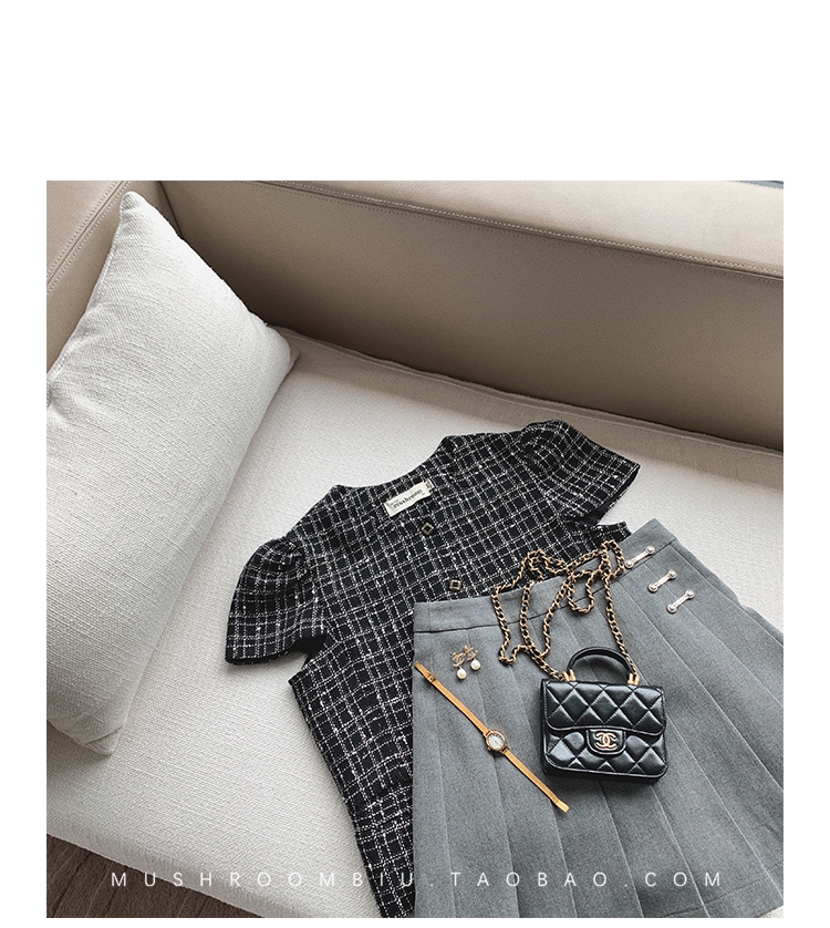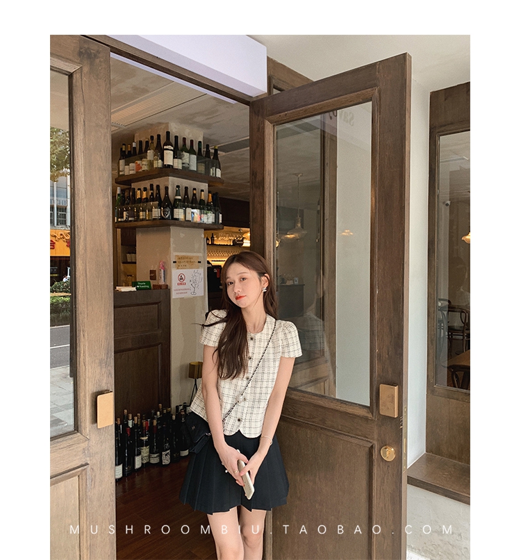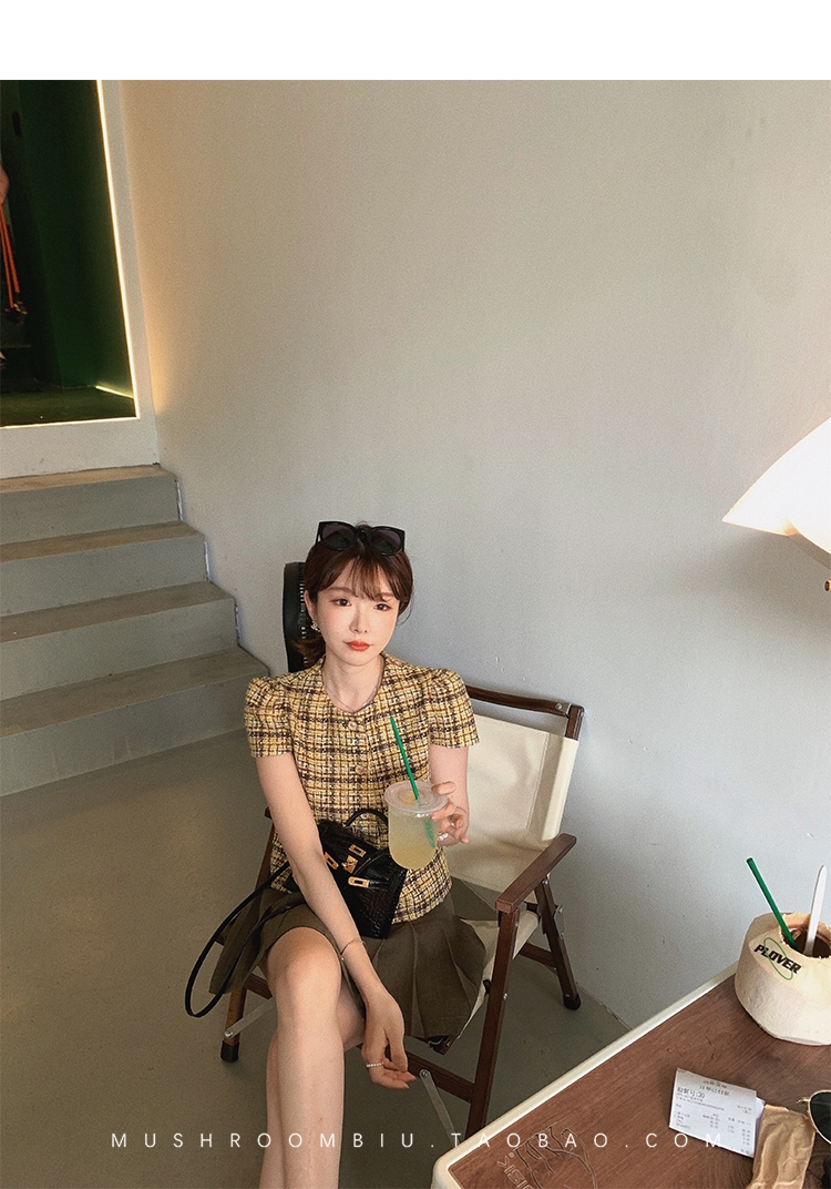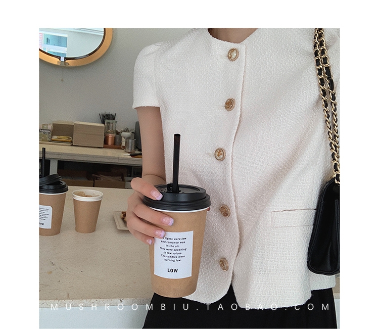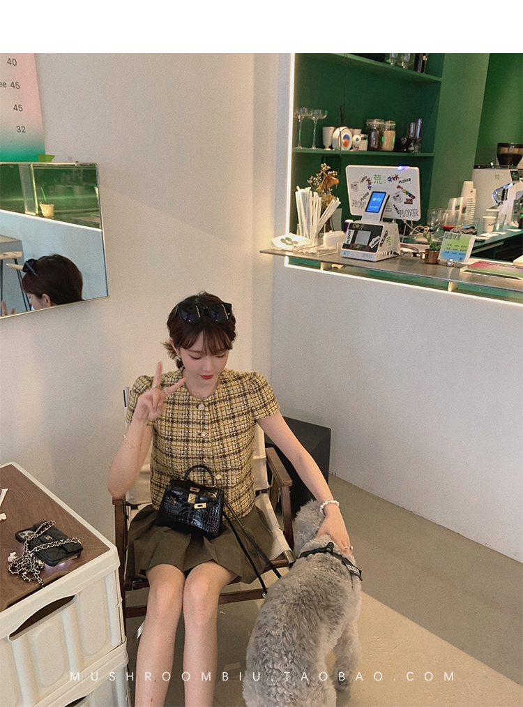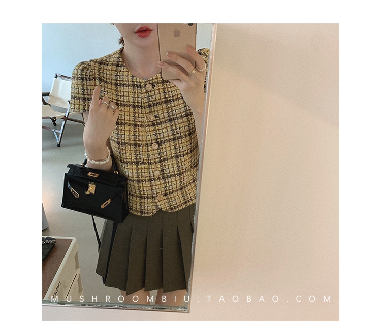 【金蘑菇菇 仲夏夜香香】精致少女风花呢小个子时尚短上衣