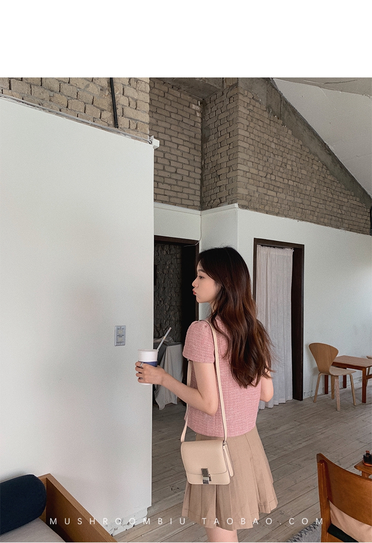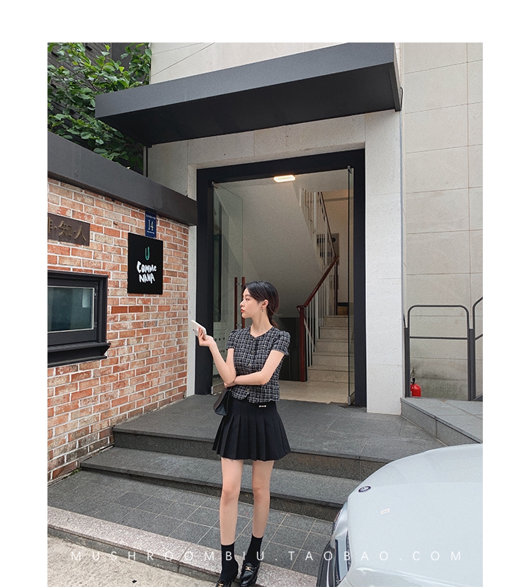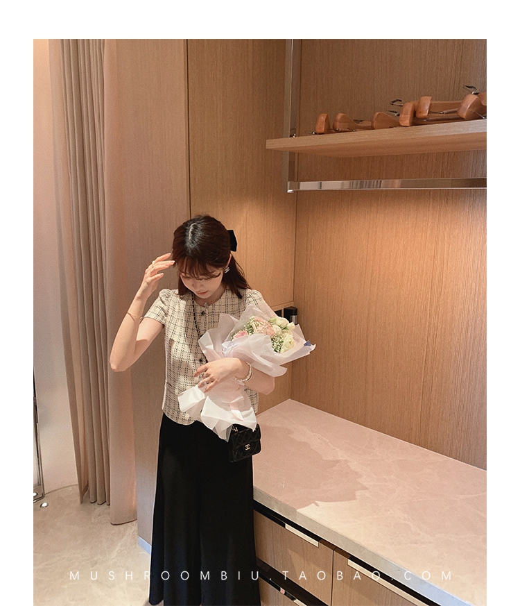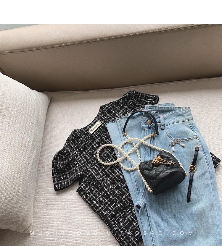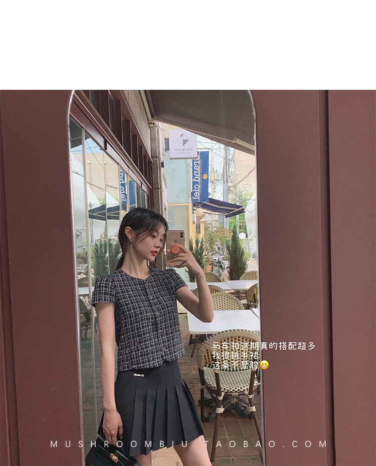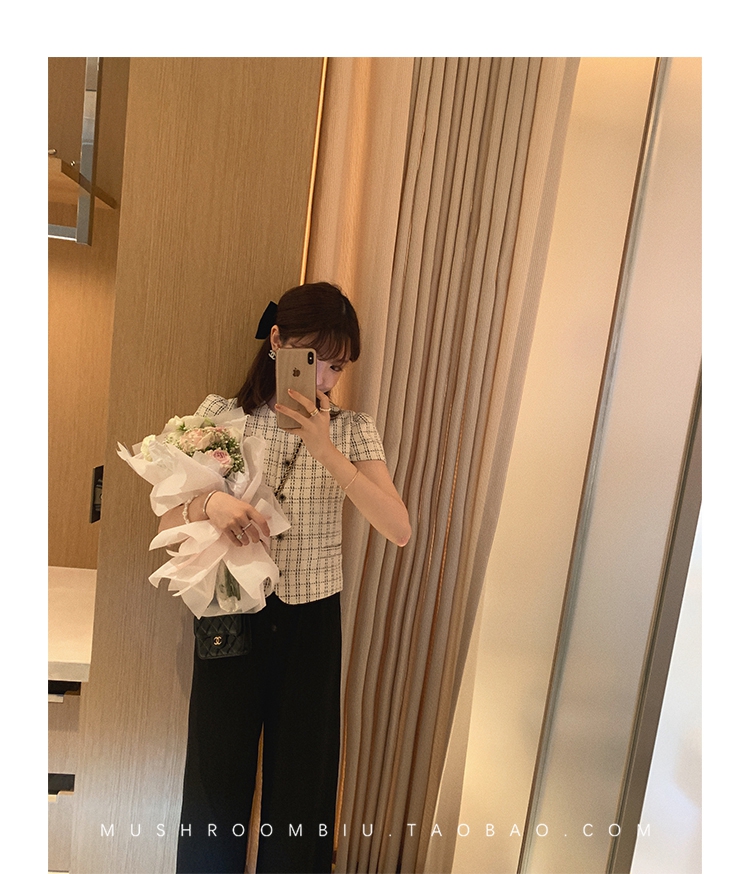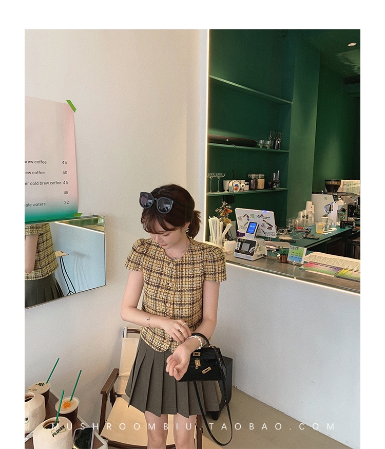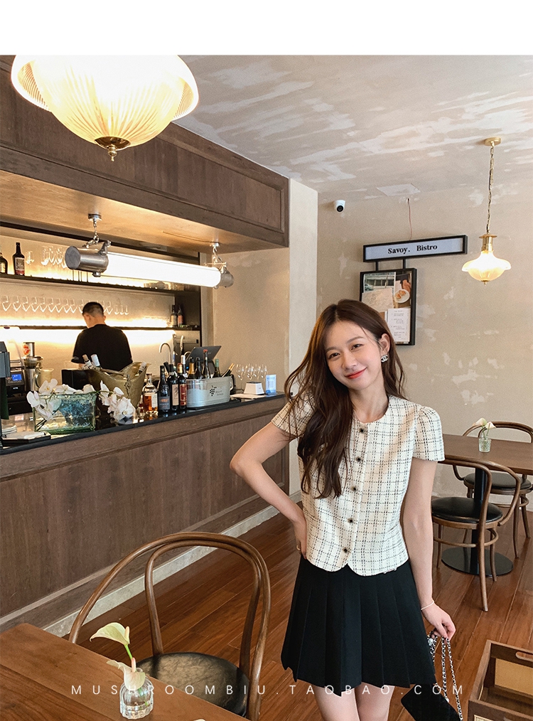 【金蘑菇菇 仲夏夜香香】精致少女风花呢小个子时尚短上衣