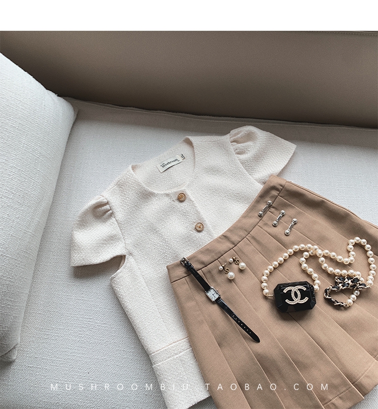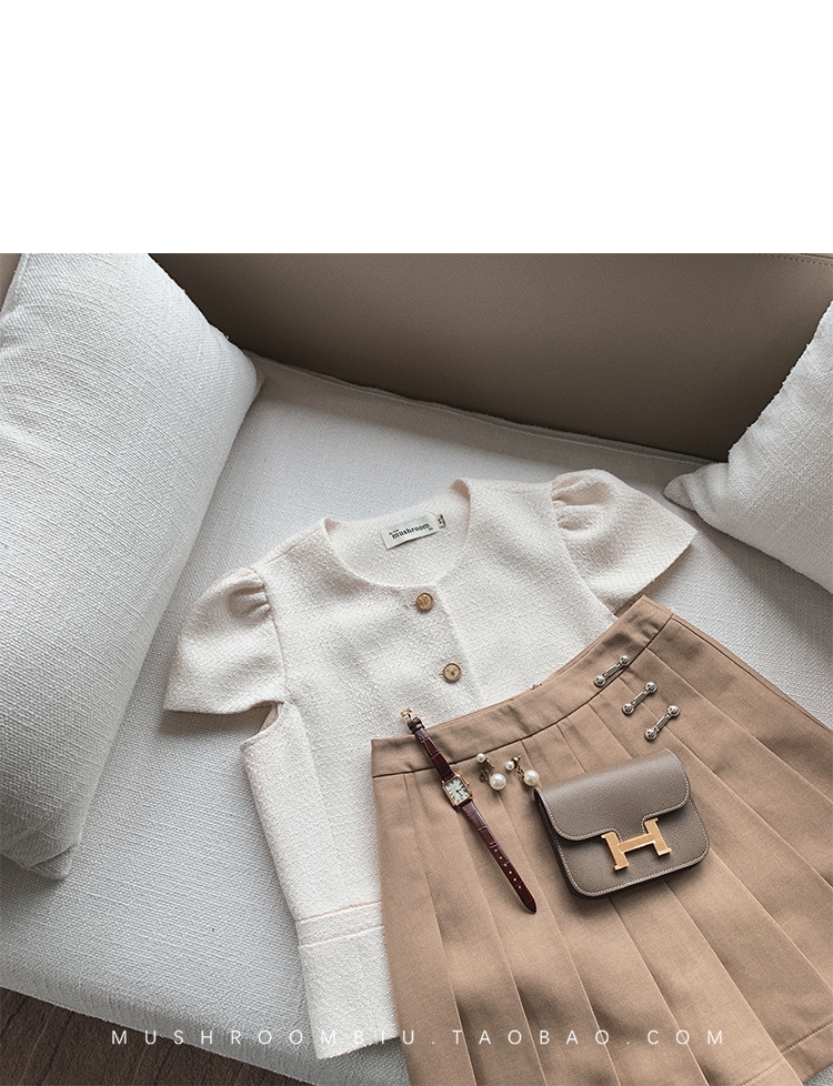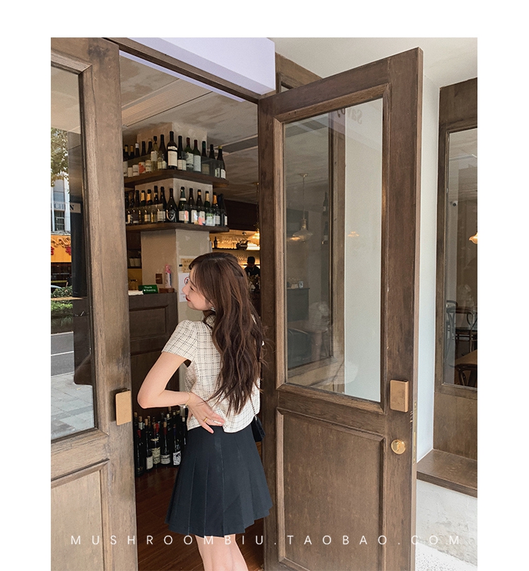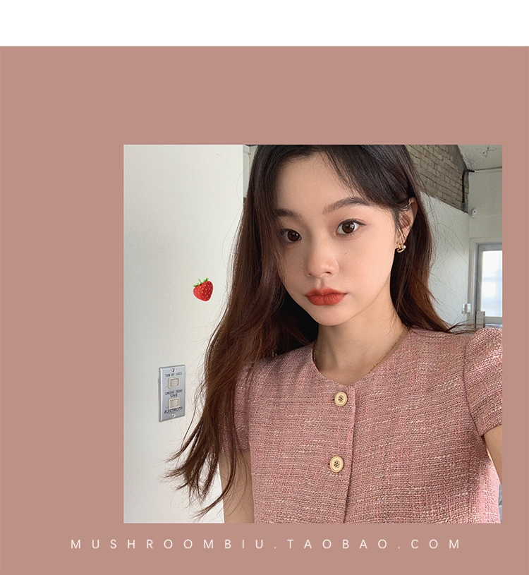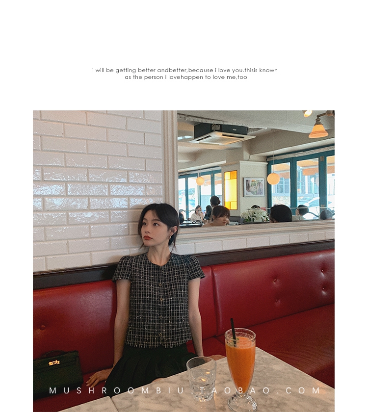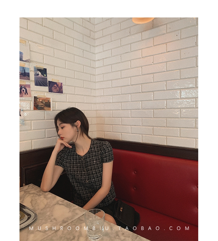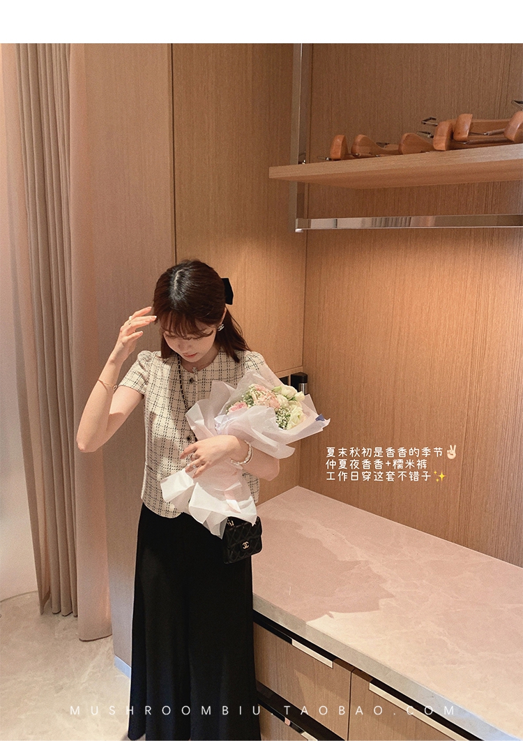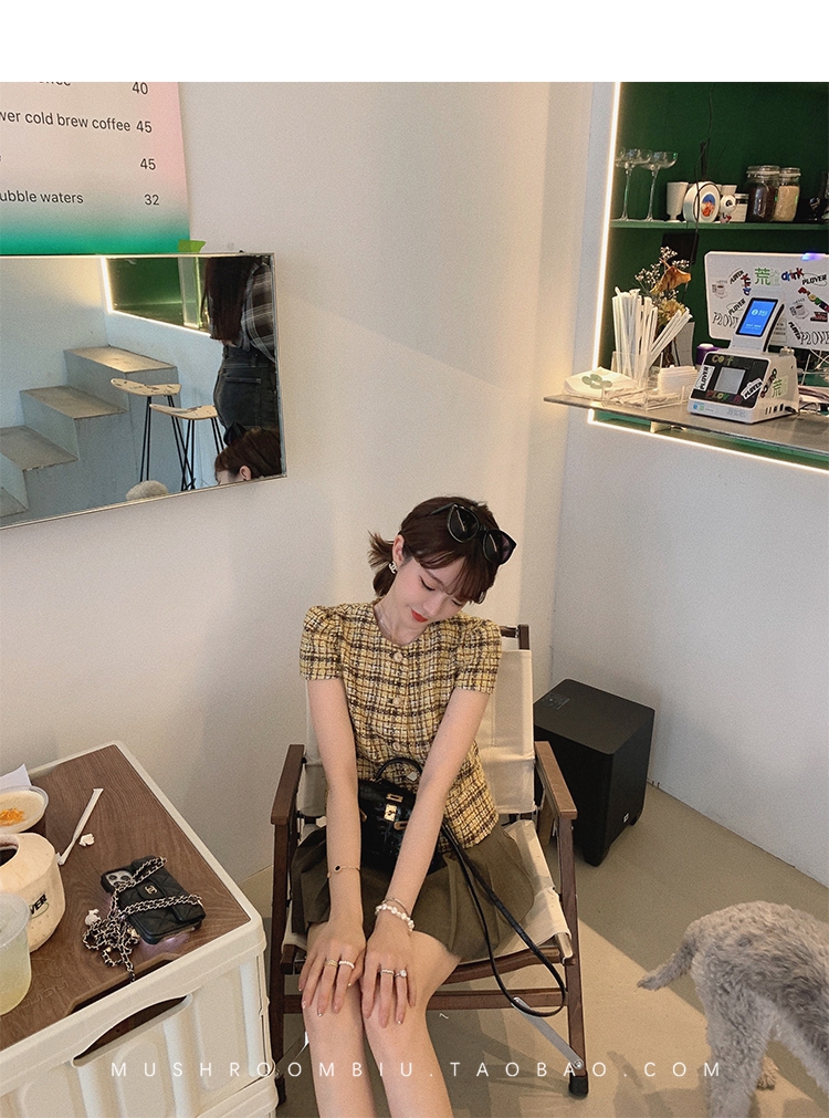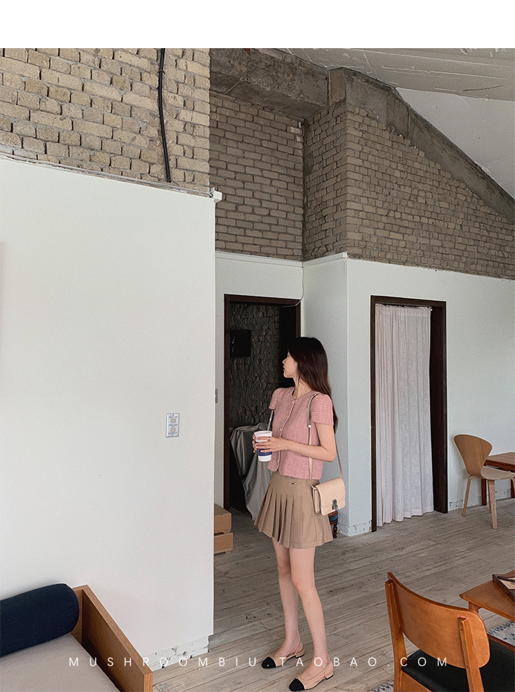 【金蘑菇菇 仲夏夜香香】精致少女风花呢小个子时尚短上衣