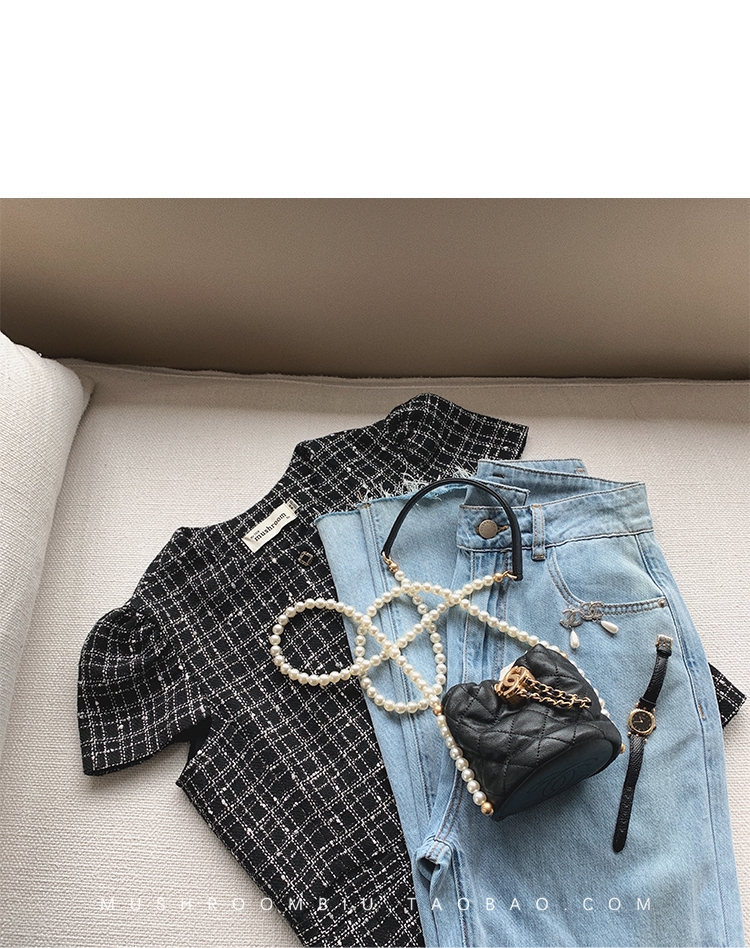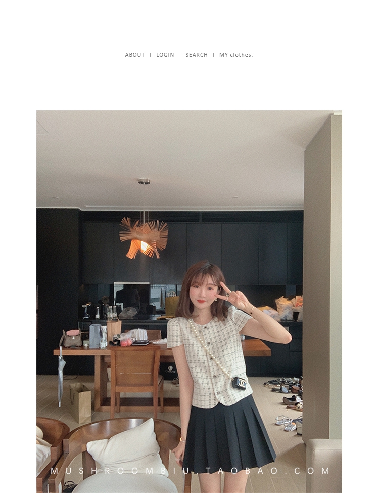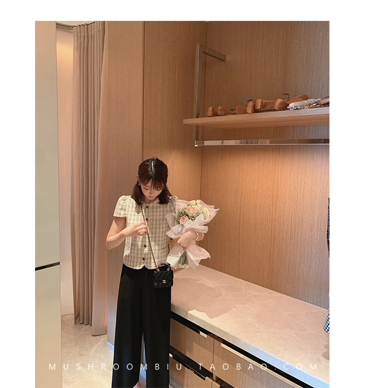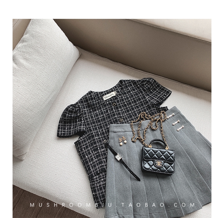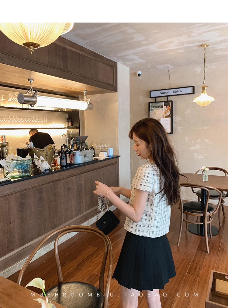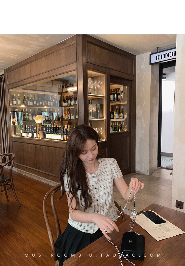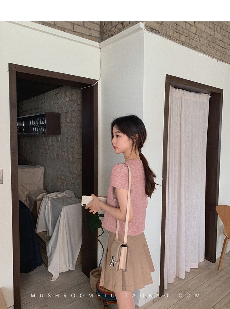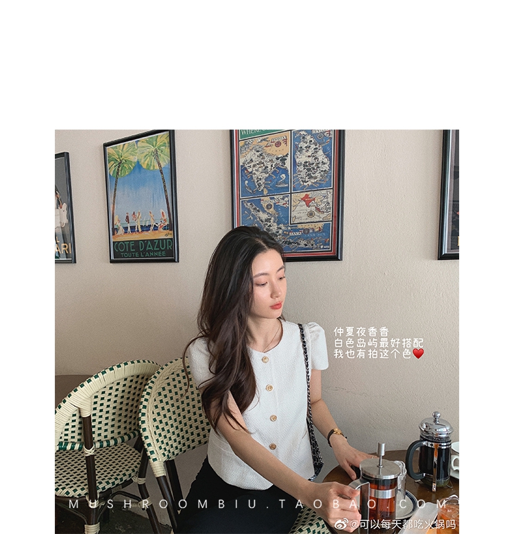 【金蘑菇菇 仲夏夜香香】精致少女风花呢小个子时尚短上衣
