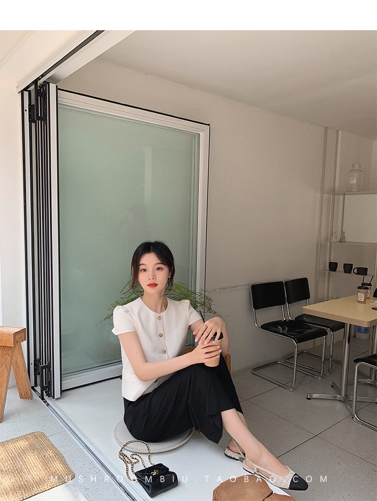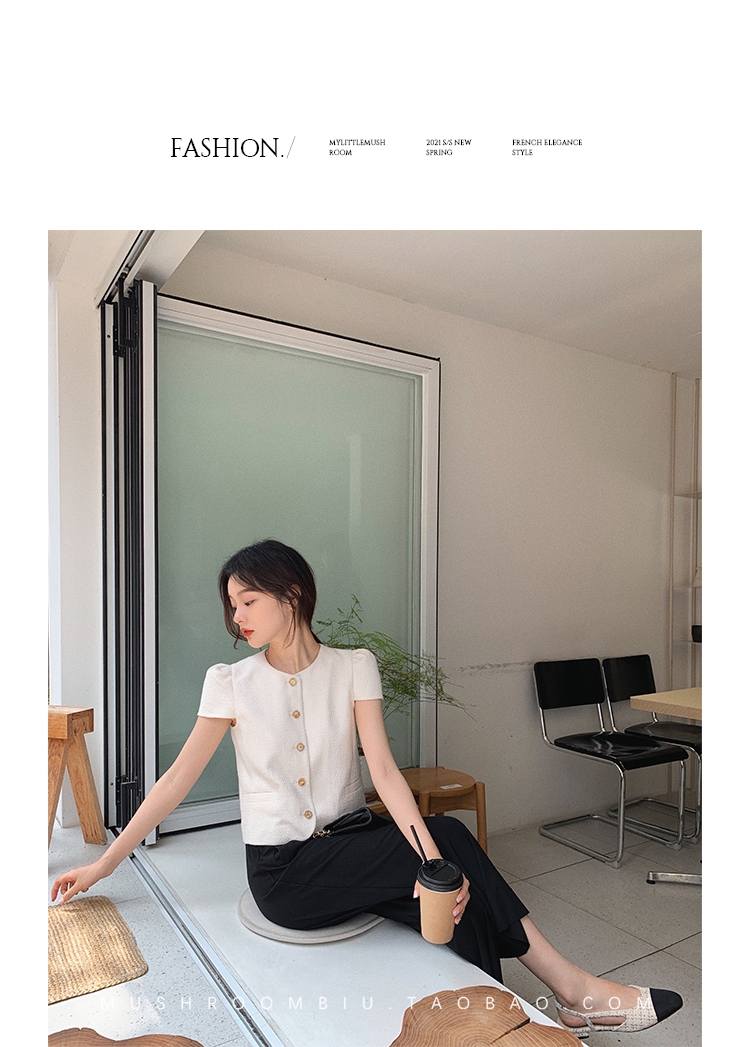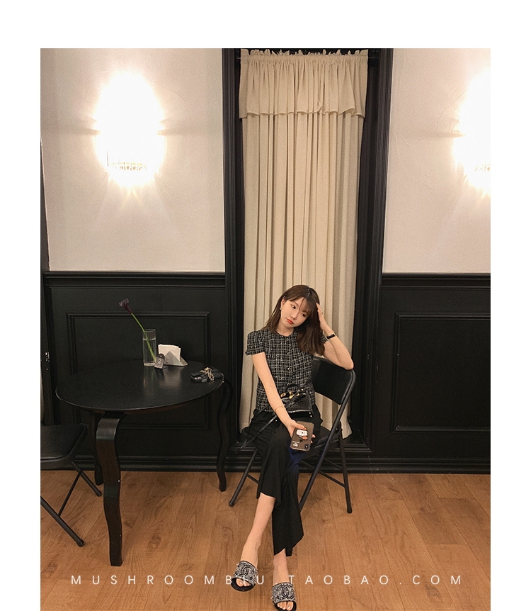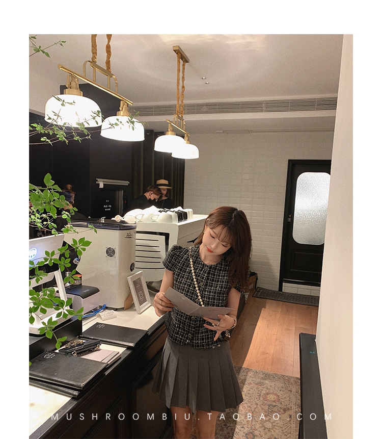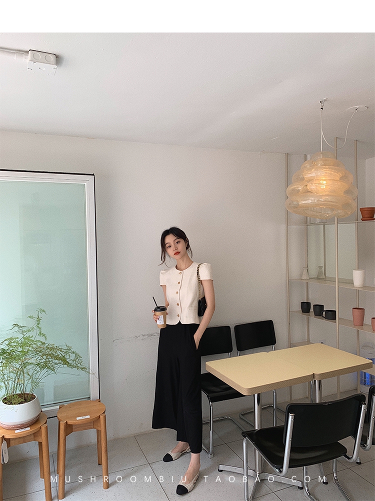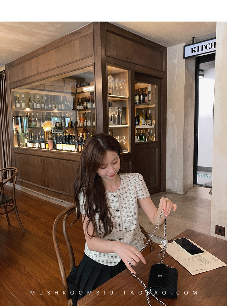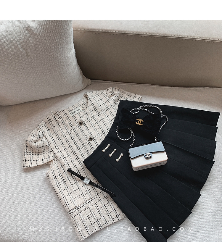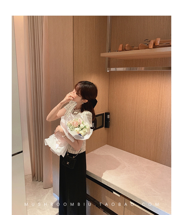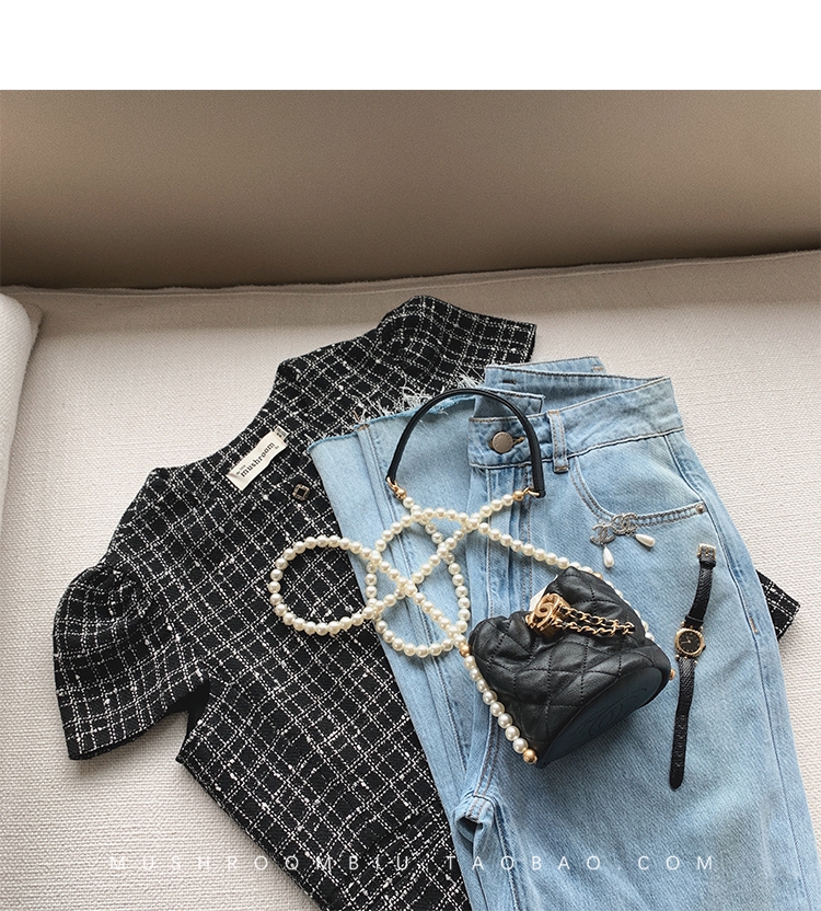 【金蘑菇菇 仲夏夜香香】精致少女风花呢小个子时尚短上衣