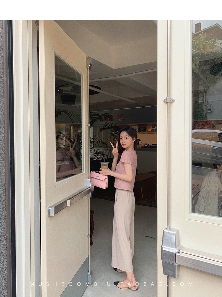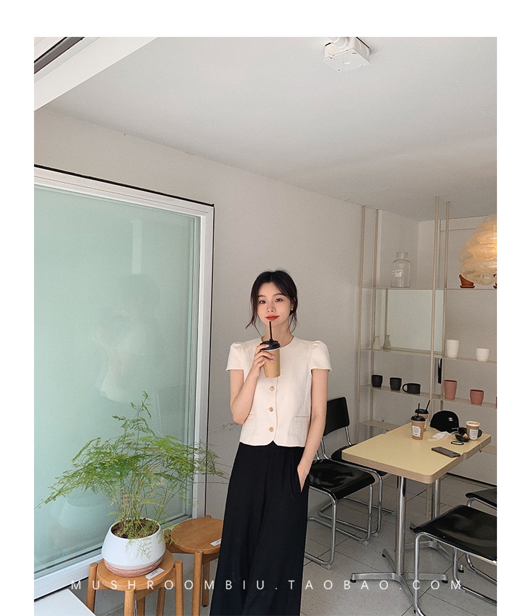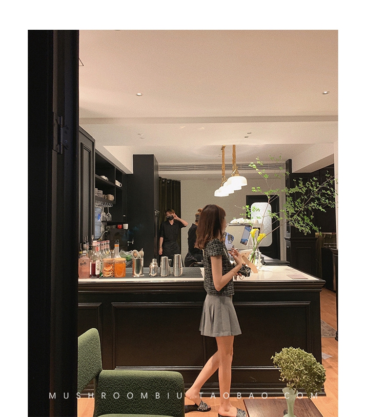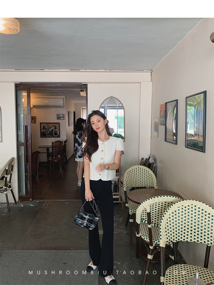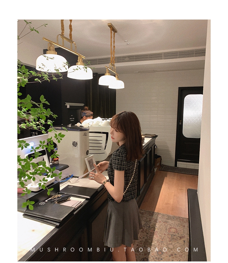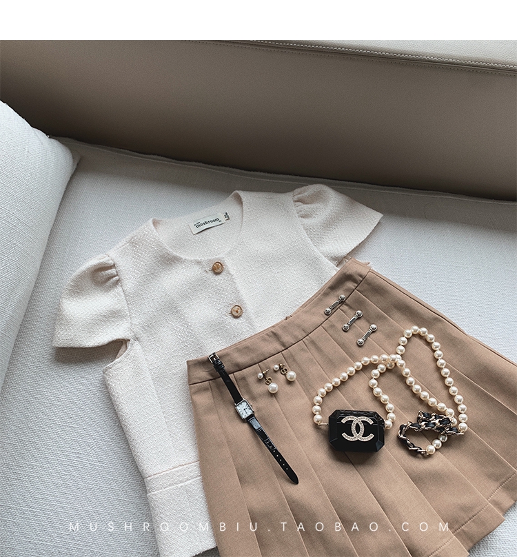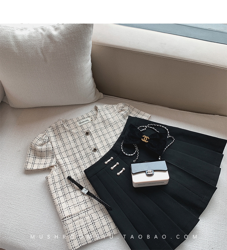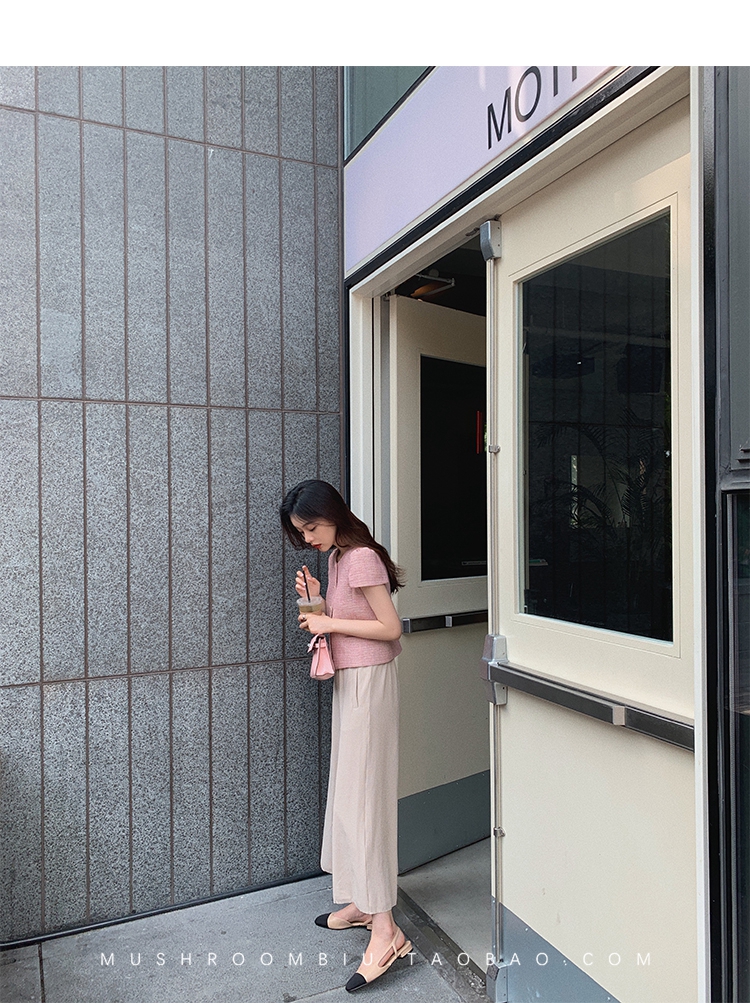 【金蘑菇菇 仲夏夜香香】精致少女风花呢小个子时尚短上衣