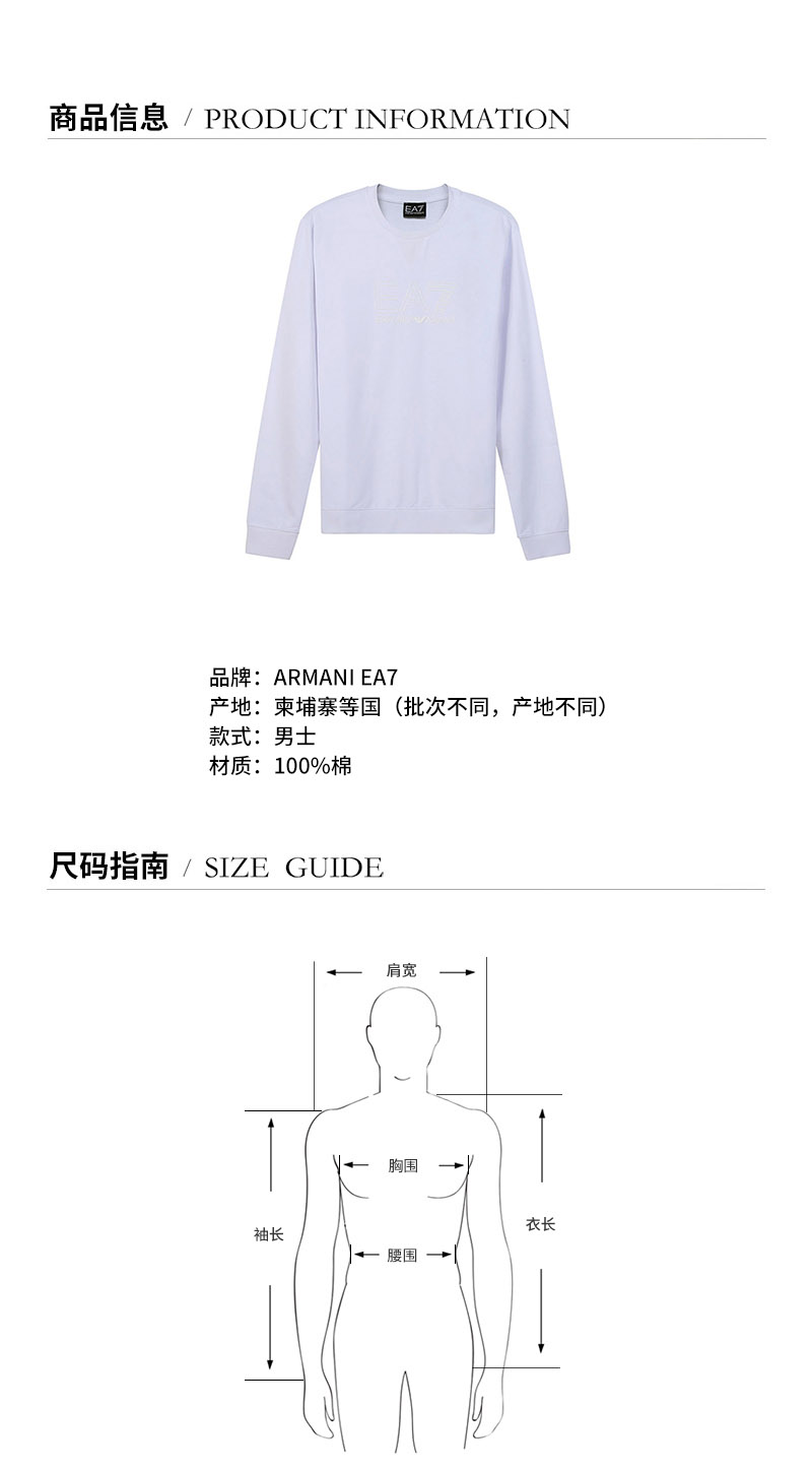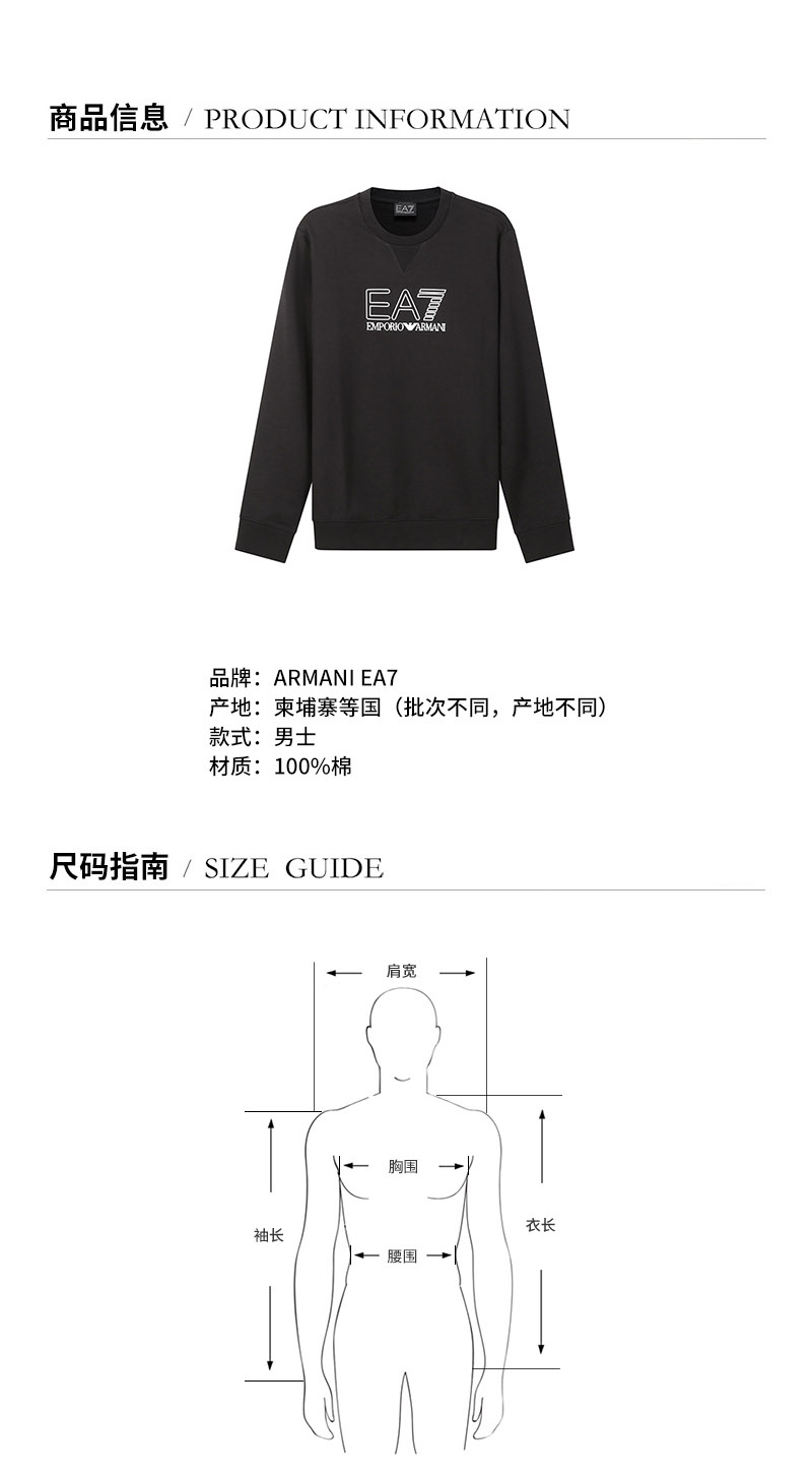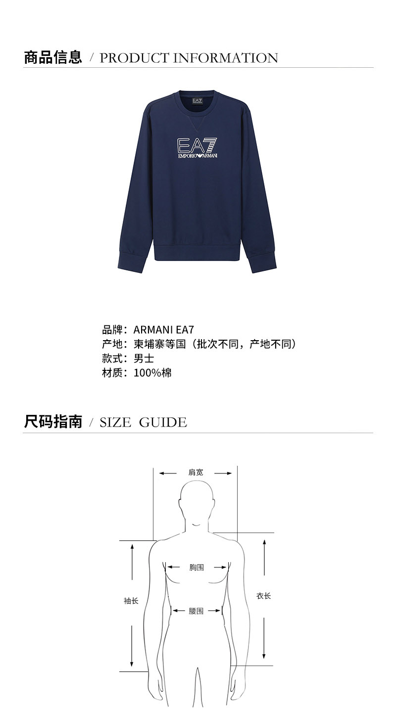 EA7阿玛尼【22春夏新款】男士棉质圆领长袖卫衣运动衫 3LPM60 PJ05Z
