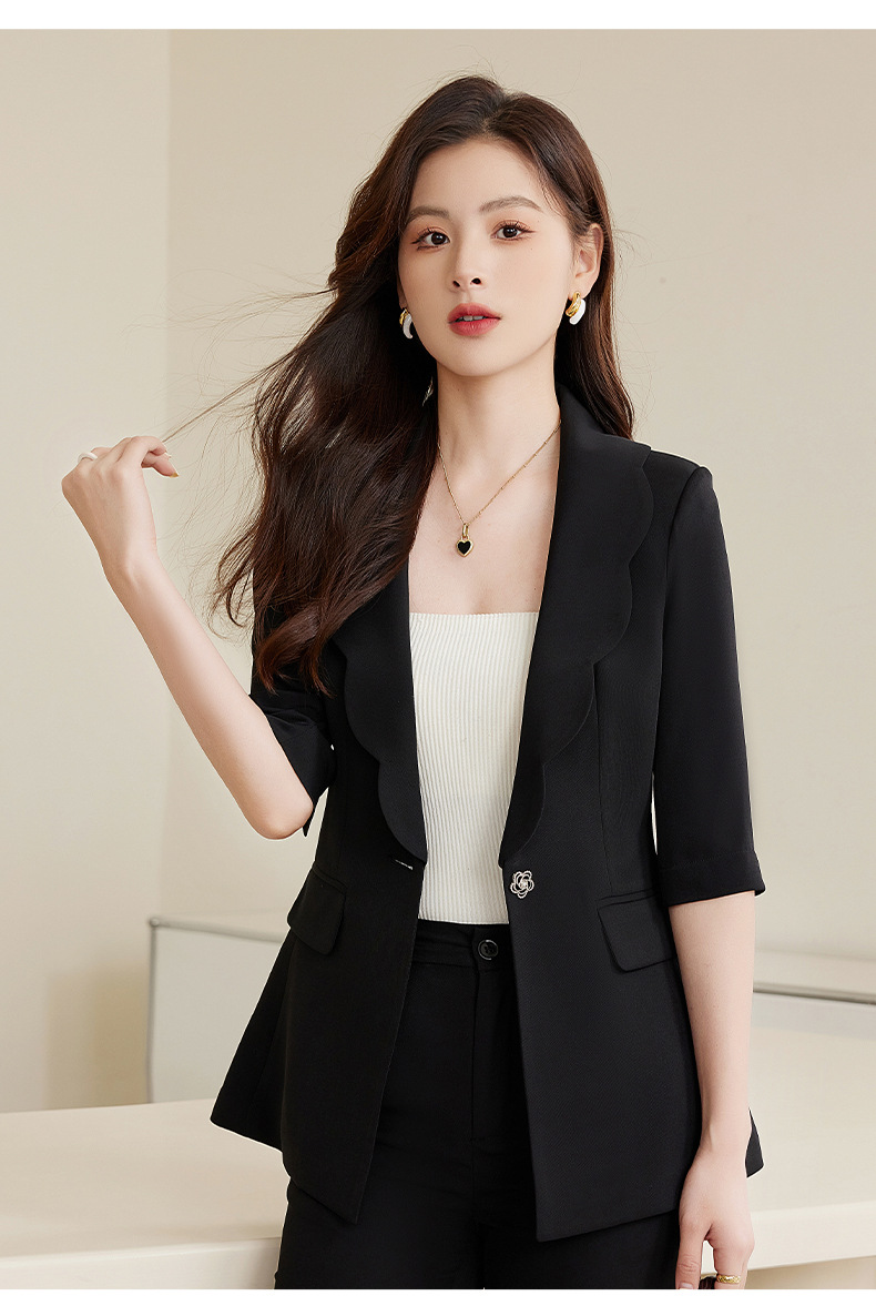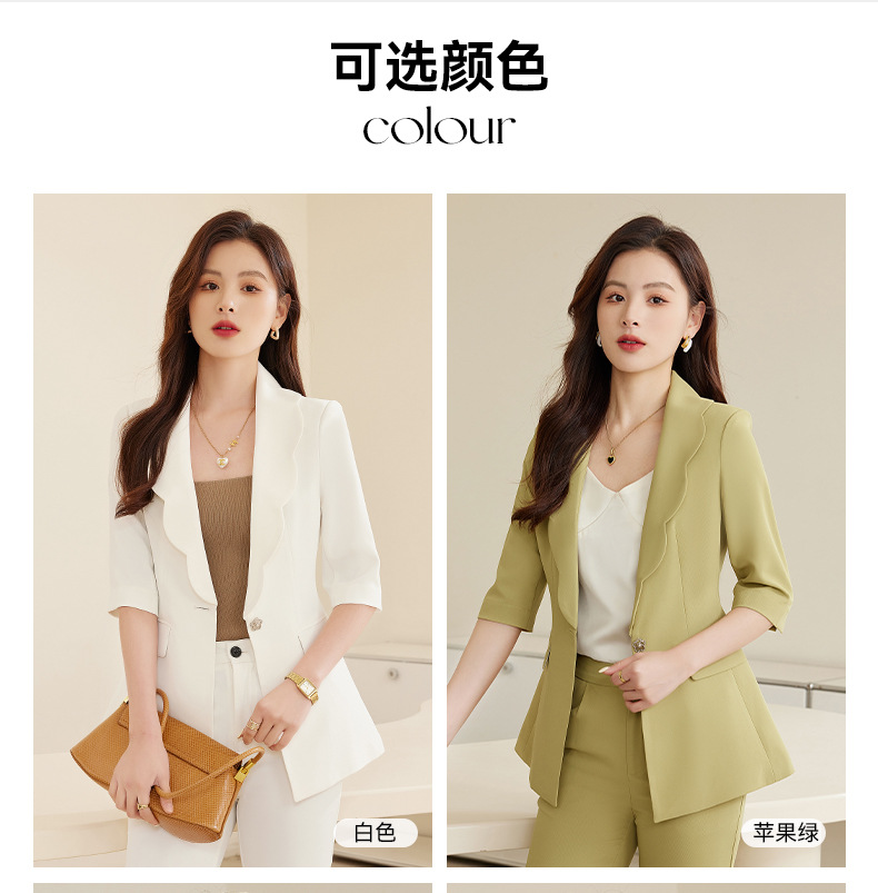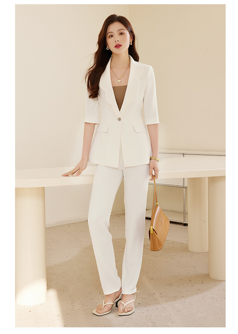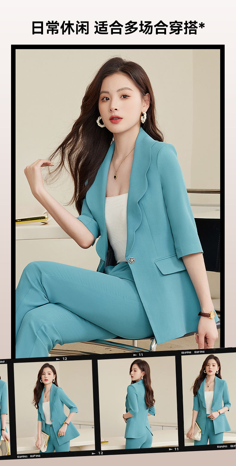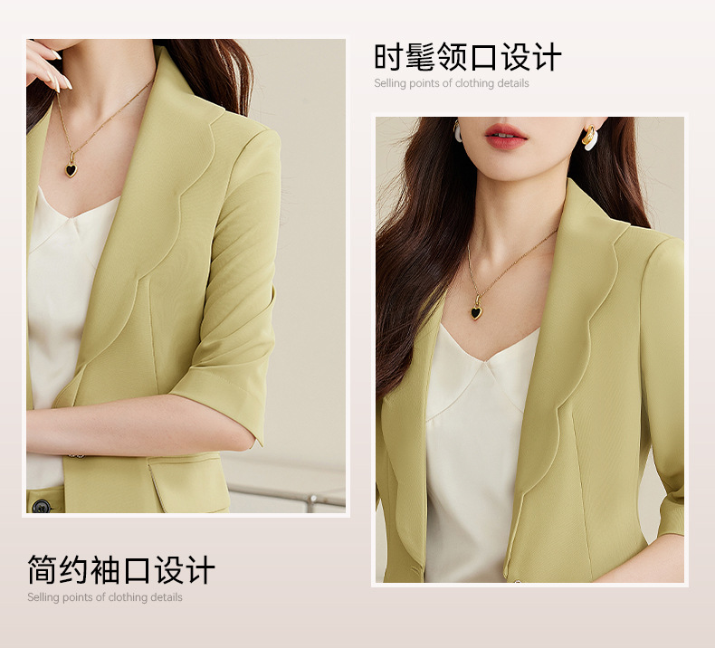 夏季设计感后开叉五分袖薄款小西服套装XZ-qy876