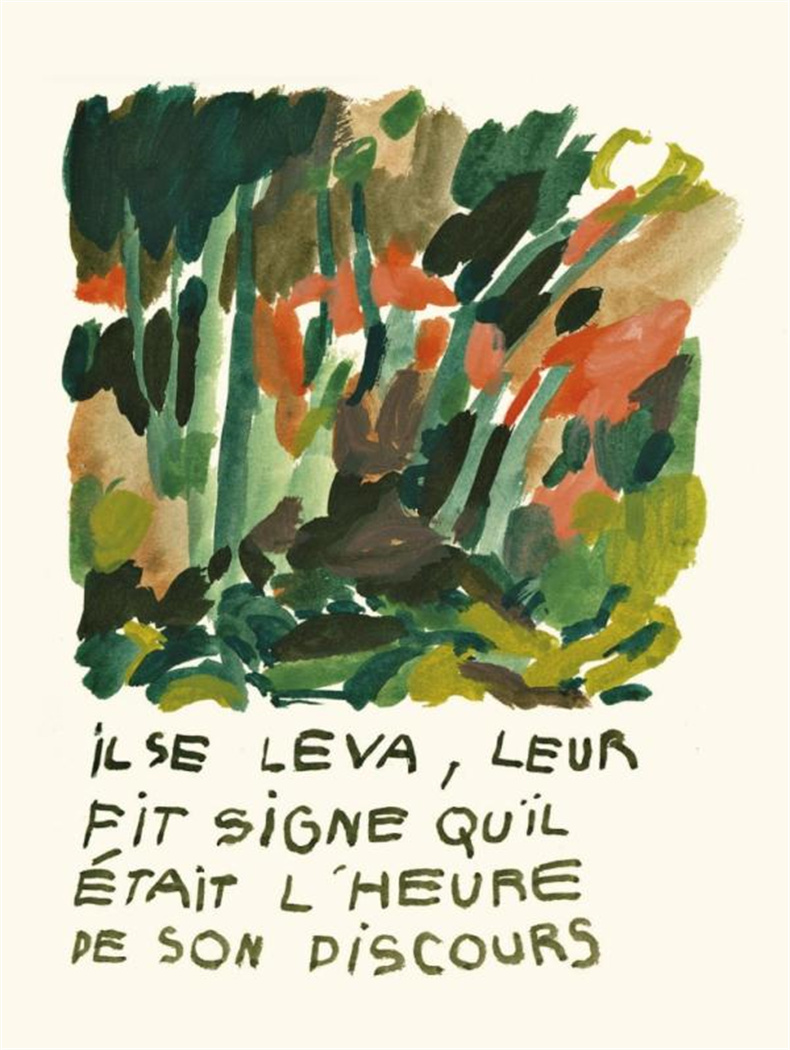 谁在说话? 这些句子之间有什么联系? 在这句话和这风景之间? 这些形状是什么:树木、山丘、动物、屁股?