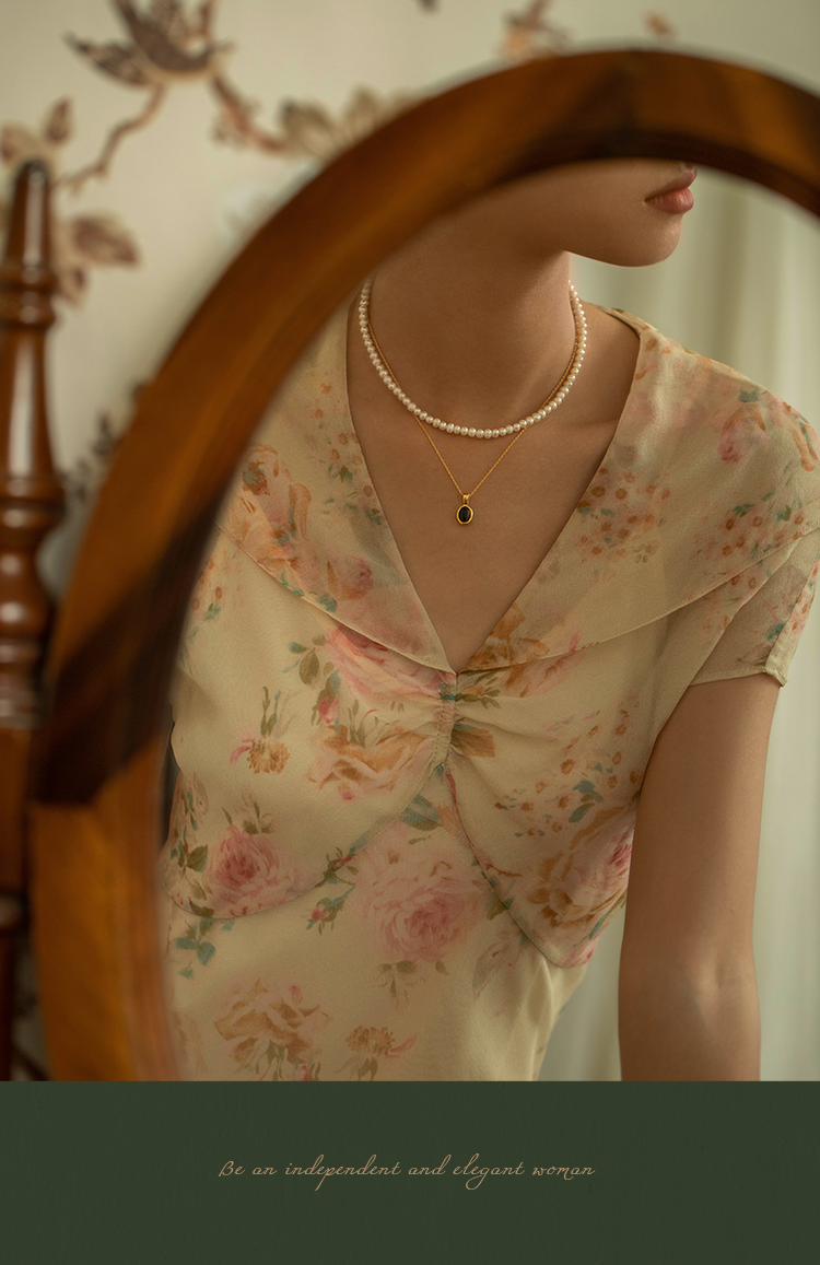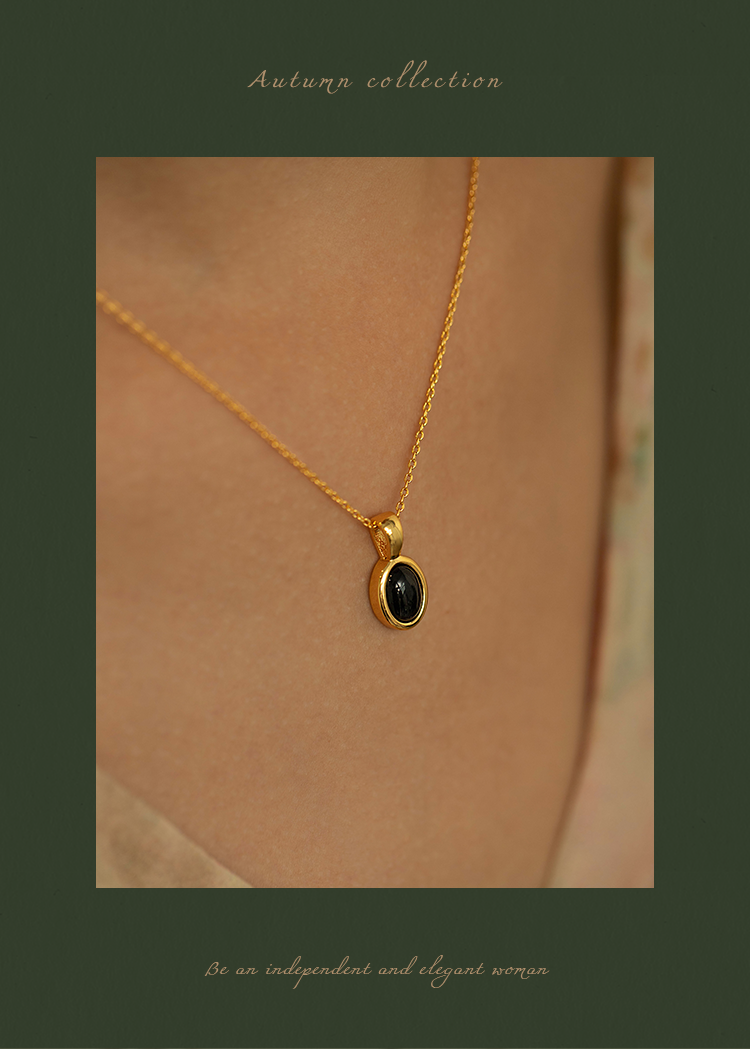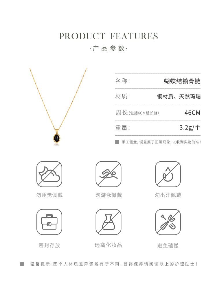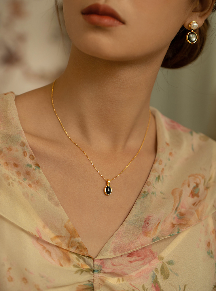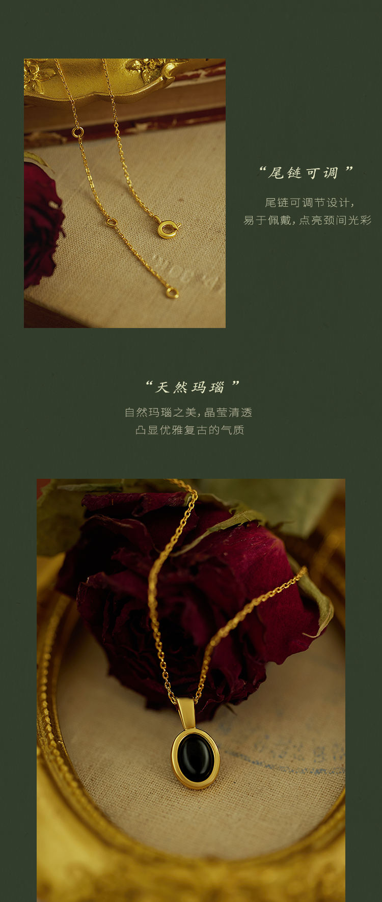 Oflye潮流饰品 黑玛瑙复古项链女新款轻奢风金属锁骨链女