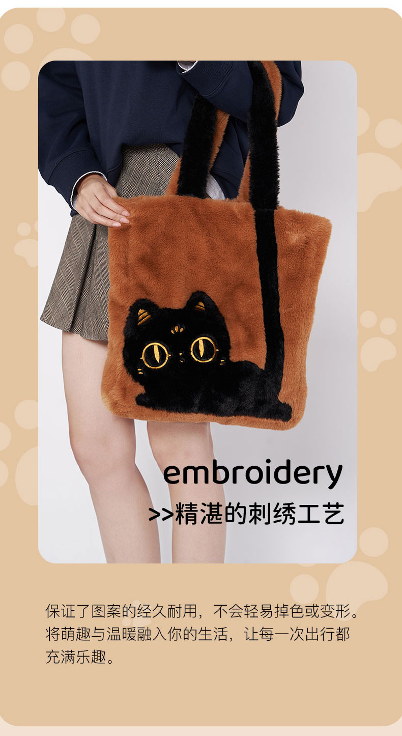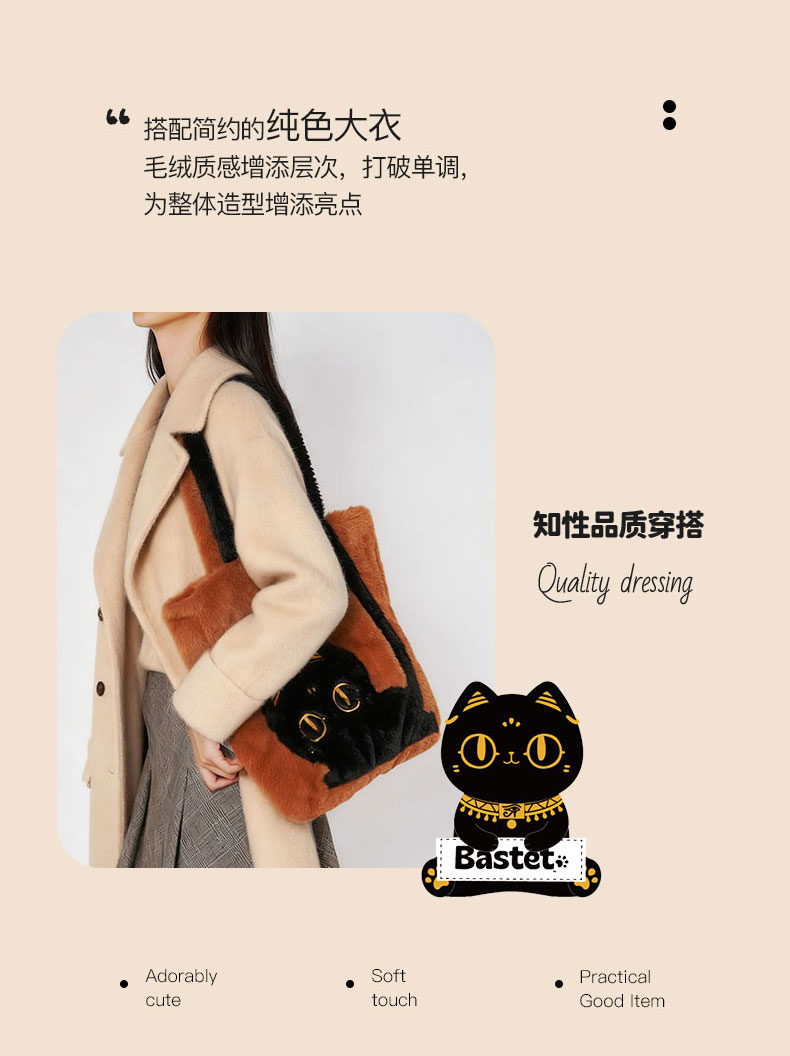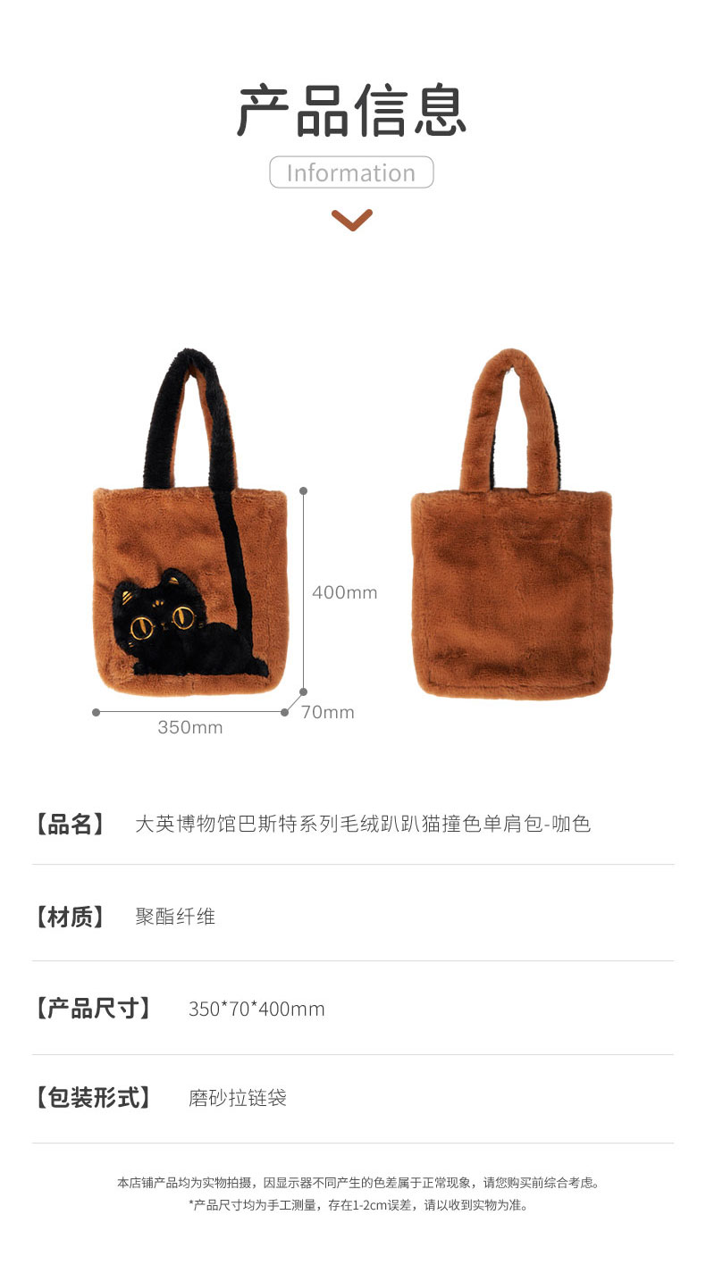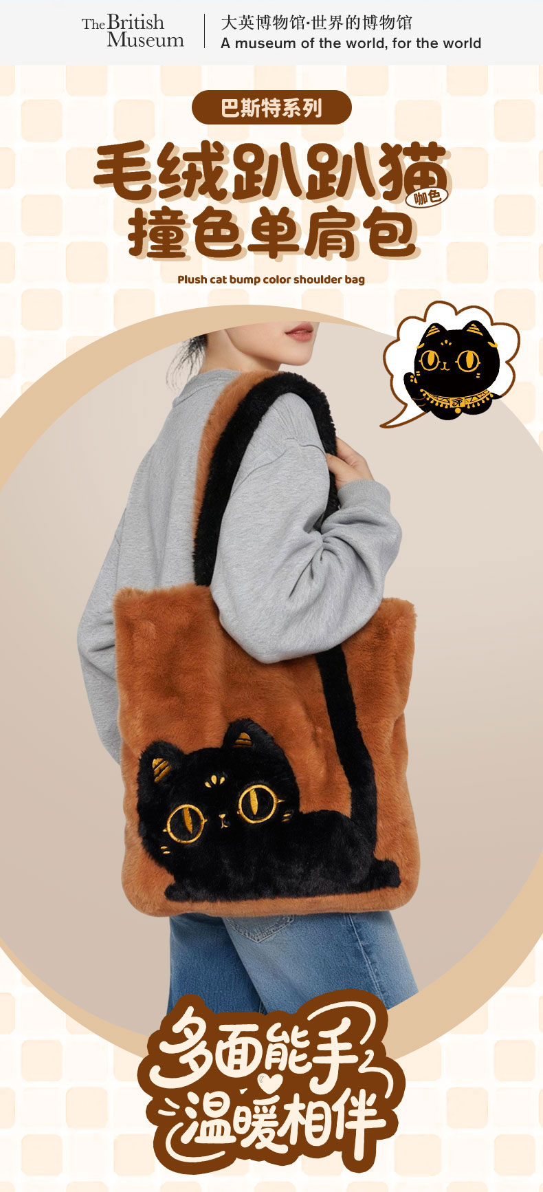 大英博物馆 盖亚·巴斯特系列 毛绒趴趴猫 撞色单肩包-咖色