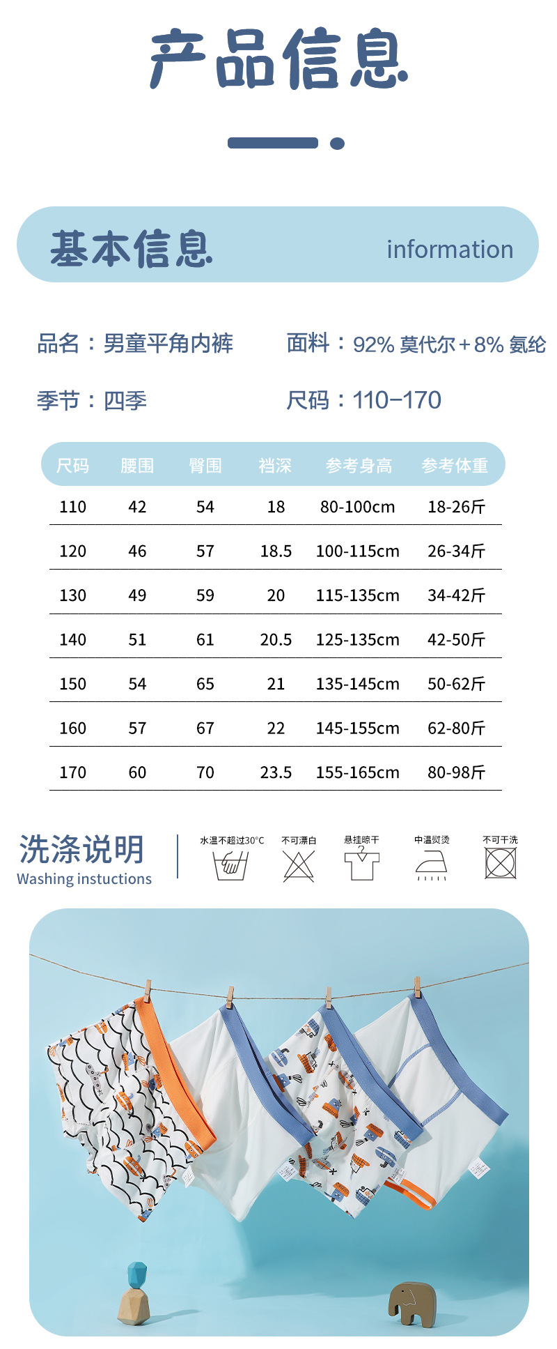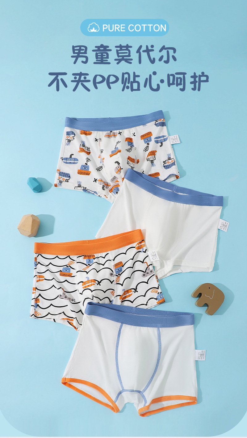 男童莫代尔内裤A类抑菌少年平角裤中大童小童男孩四角儿童内裤男