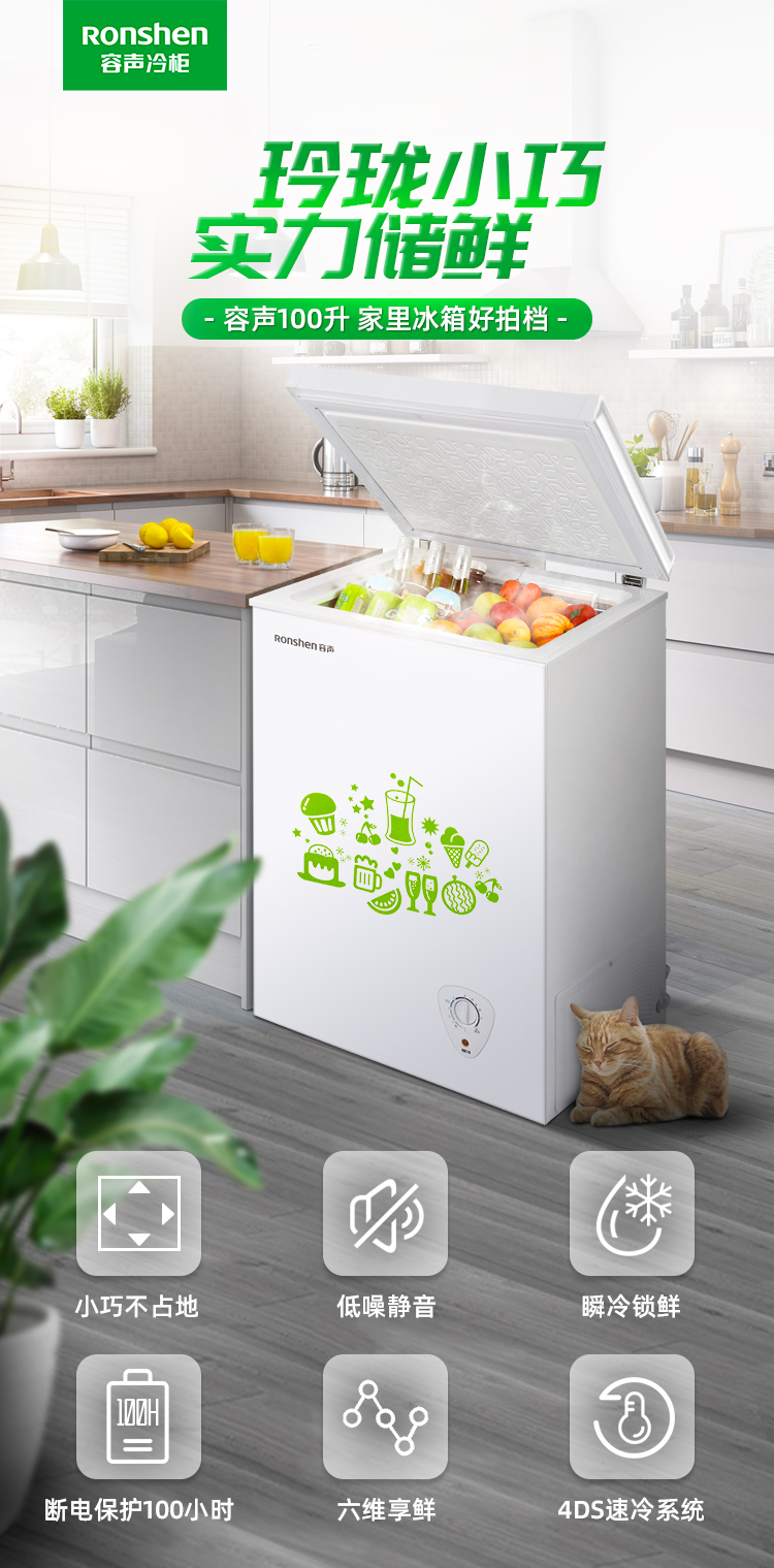 容声(Ronshen)100升 家用小型冰柜 冷藏冷冻转换 迷你冷柜 节能单温冰箱 BD/BC-100MB