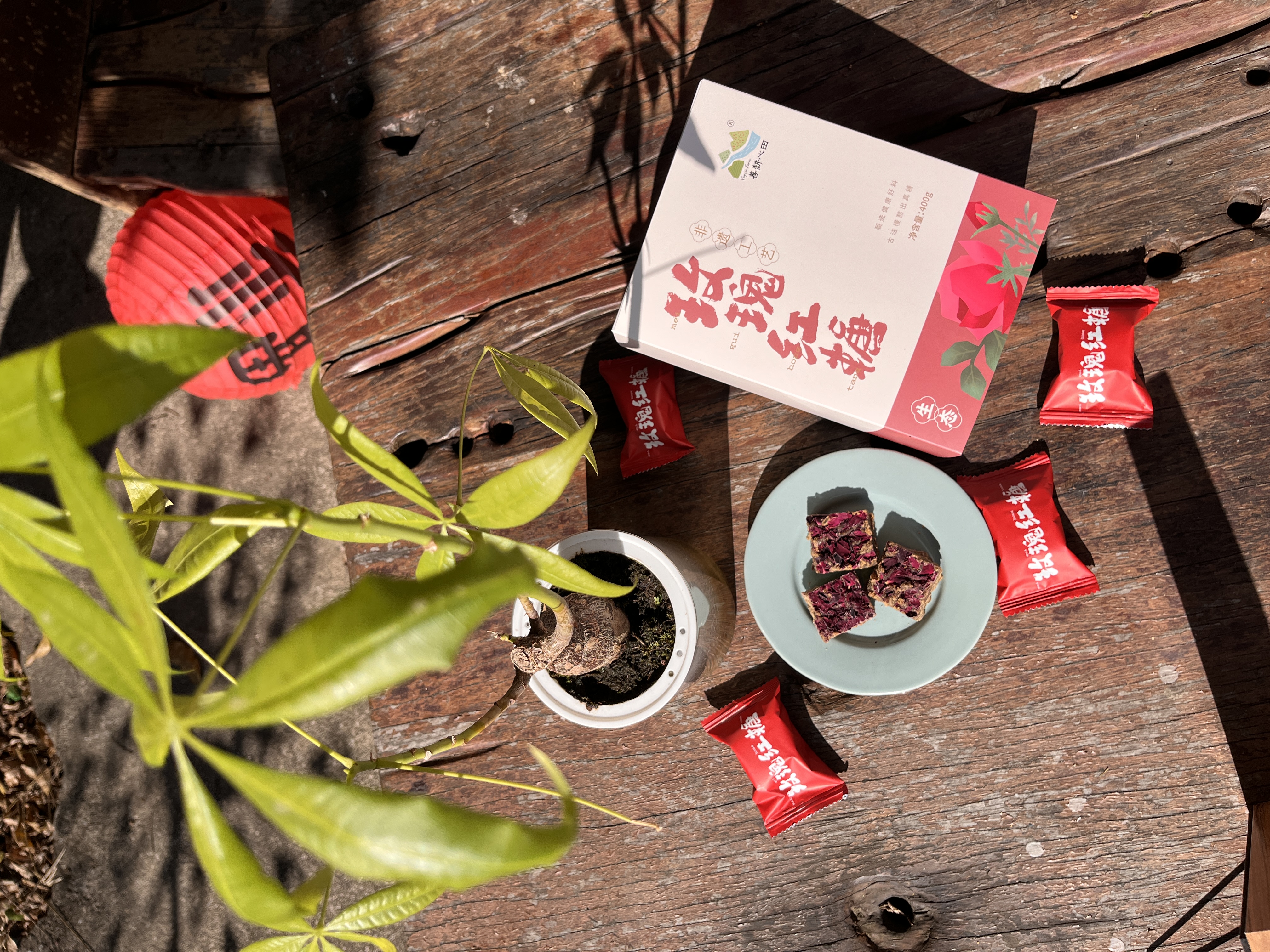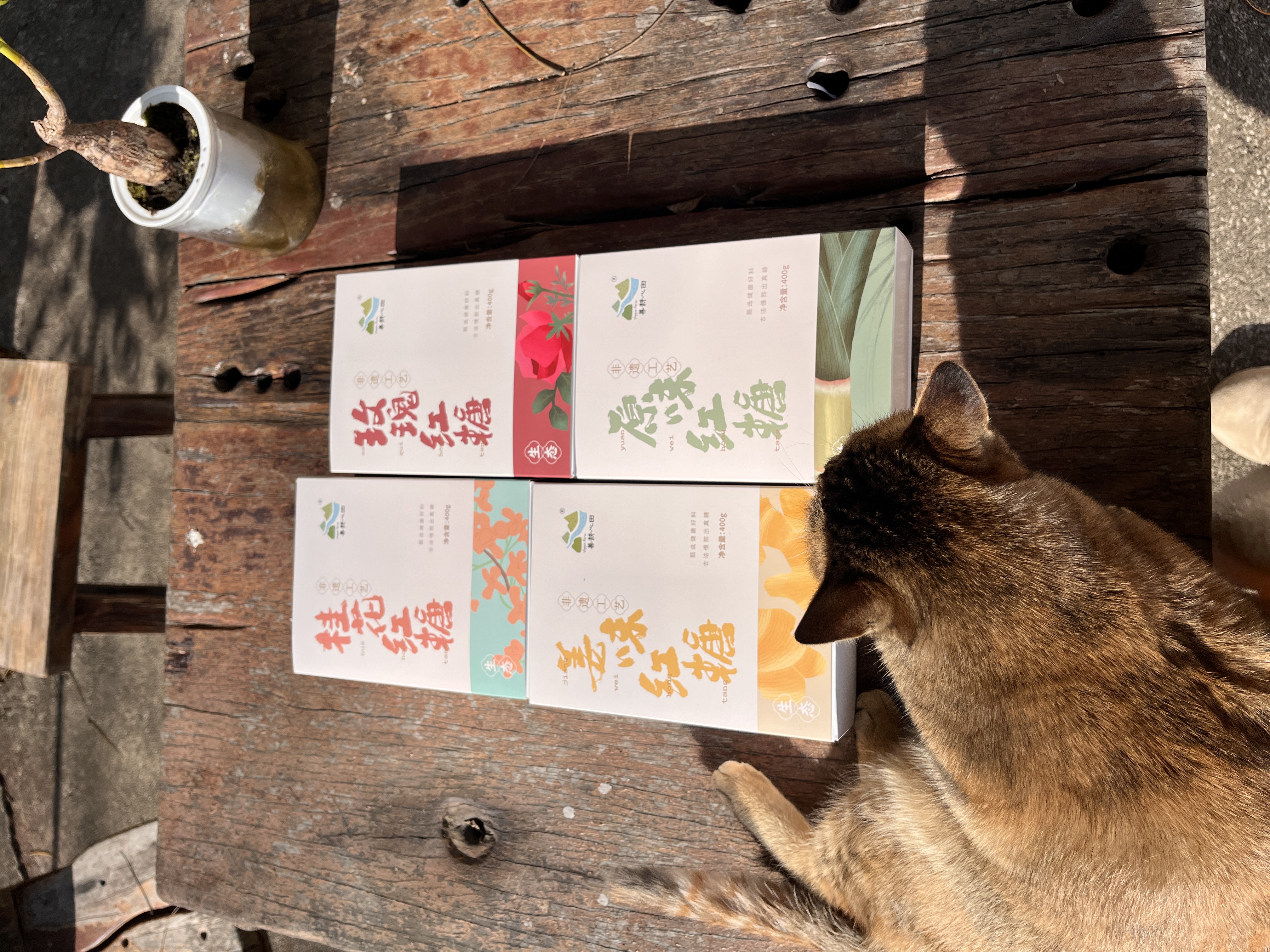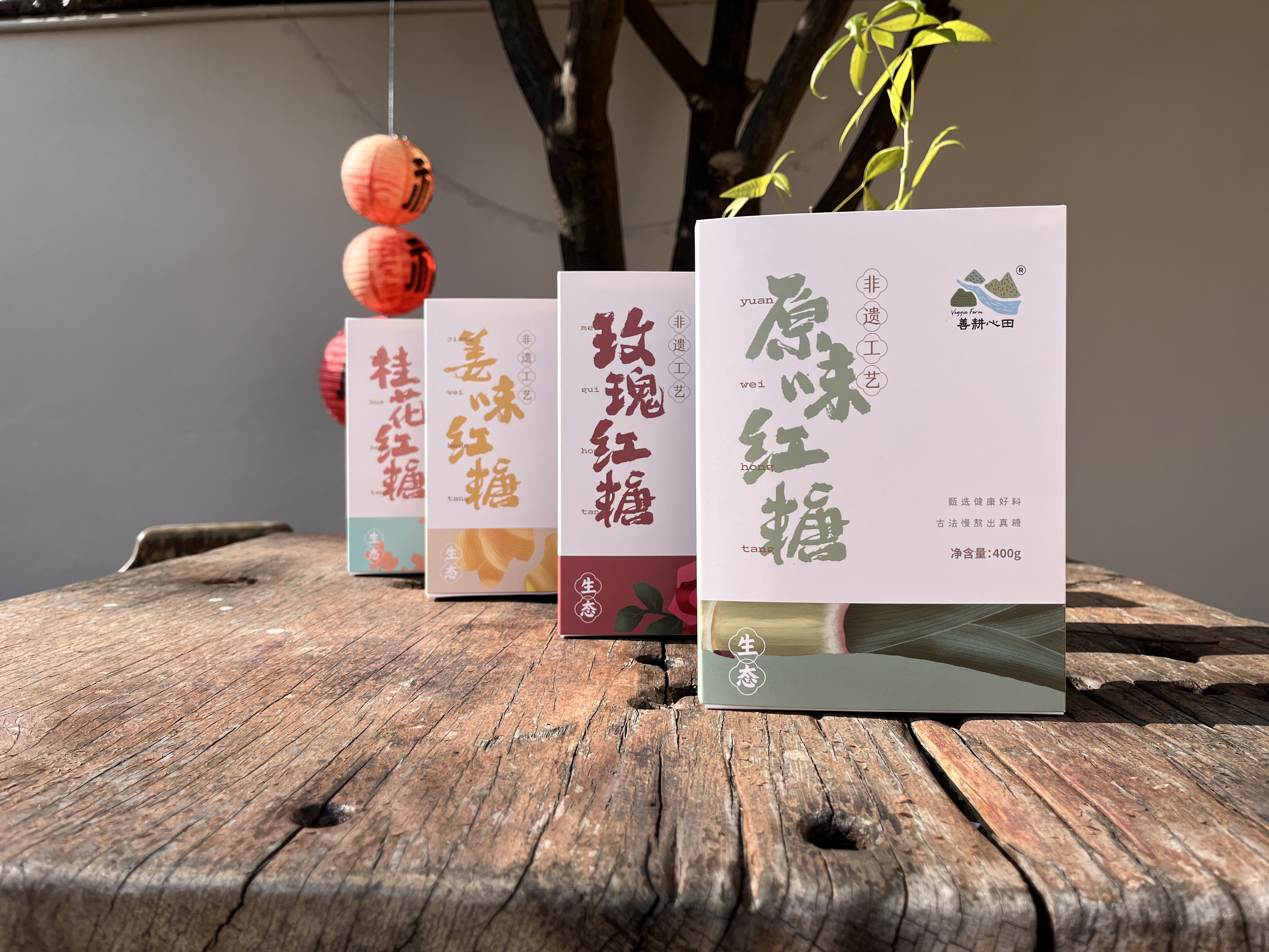 这次我们做的生态红糖尝试了几款口味给大家分享生态原味红糖(粉糖)、生态姜红糖、生态桂花红糖、生态玫瑰红糖。