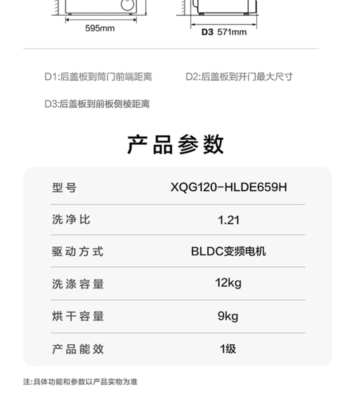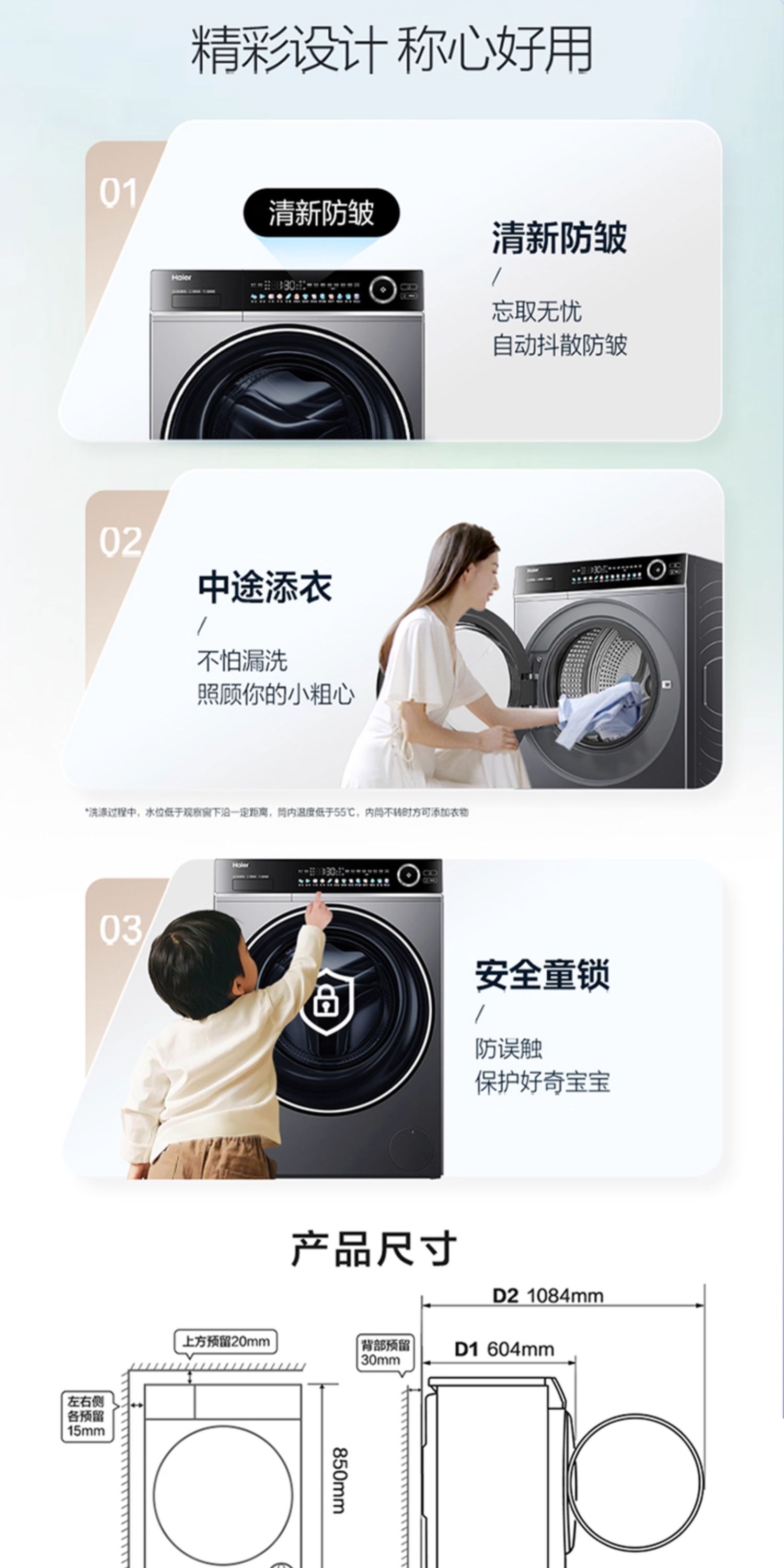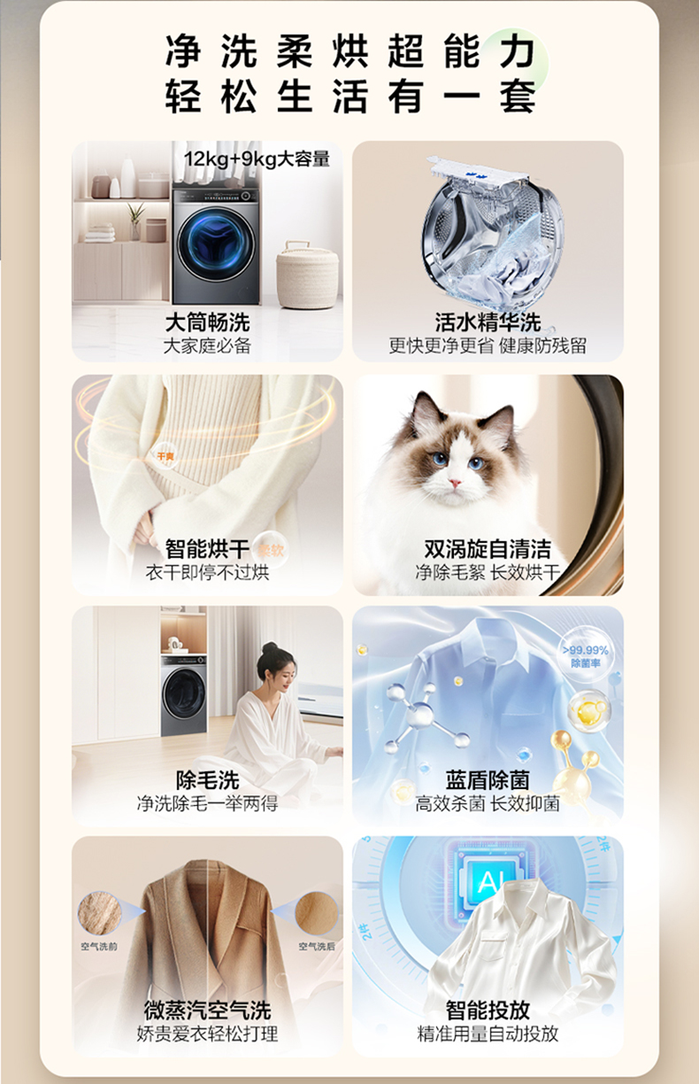 海尔滚筒洗衣机12公斤家用全自动大容量除菌洗烘659