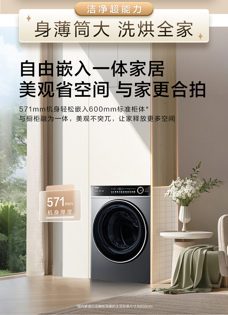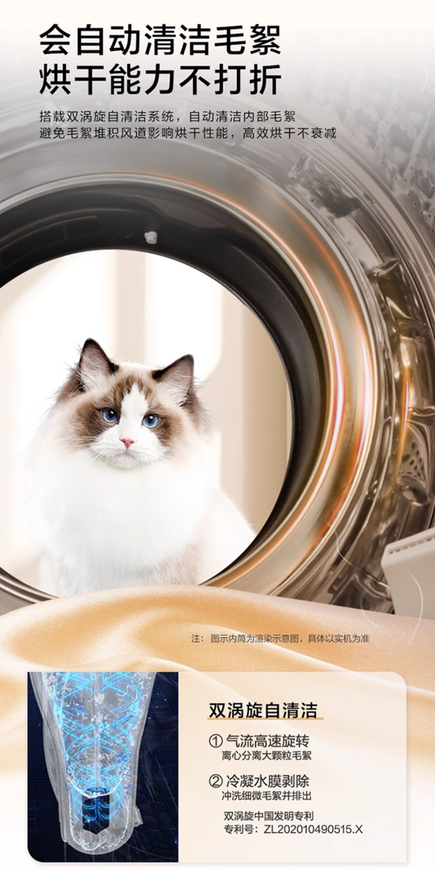 海尔(Haier)云溪386W 10KG变频双擎热泵式烘干机家用烘衣机干衣机 超薄嵌入 HGY100-F386WU1