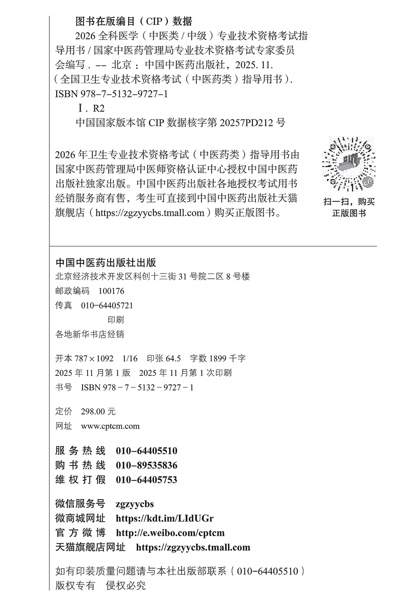 【出版社直发】2026全科医学(中医类 中级)专业技术资格考试指导用书 专业代码302附赠考试大纲 中国中医药出版社9787513297271