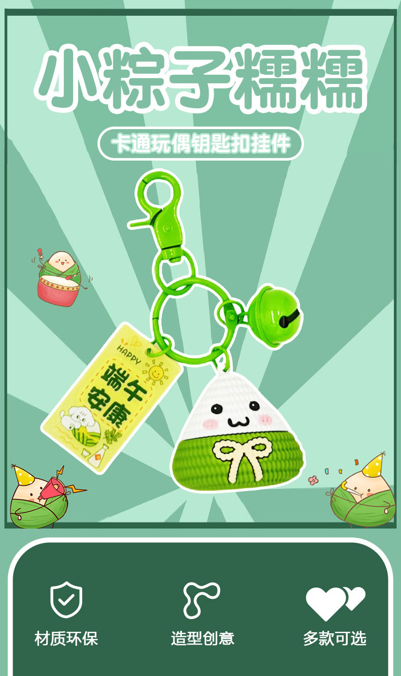 【小粽子糯糯!卡通玩偶钥匙扣挂件】端午节卡通粽子车钥匙扣女生一举高粽可爱书包挂件小礼品。ry