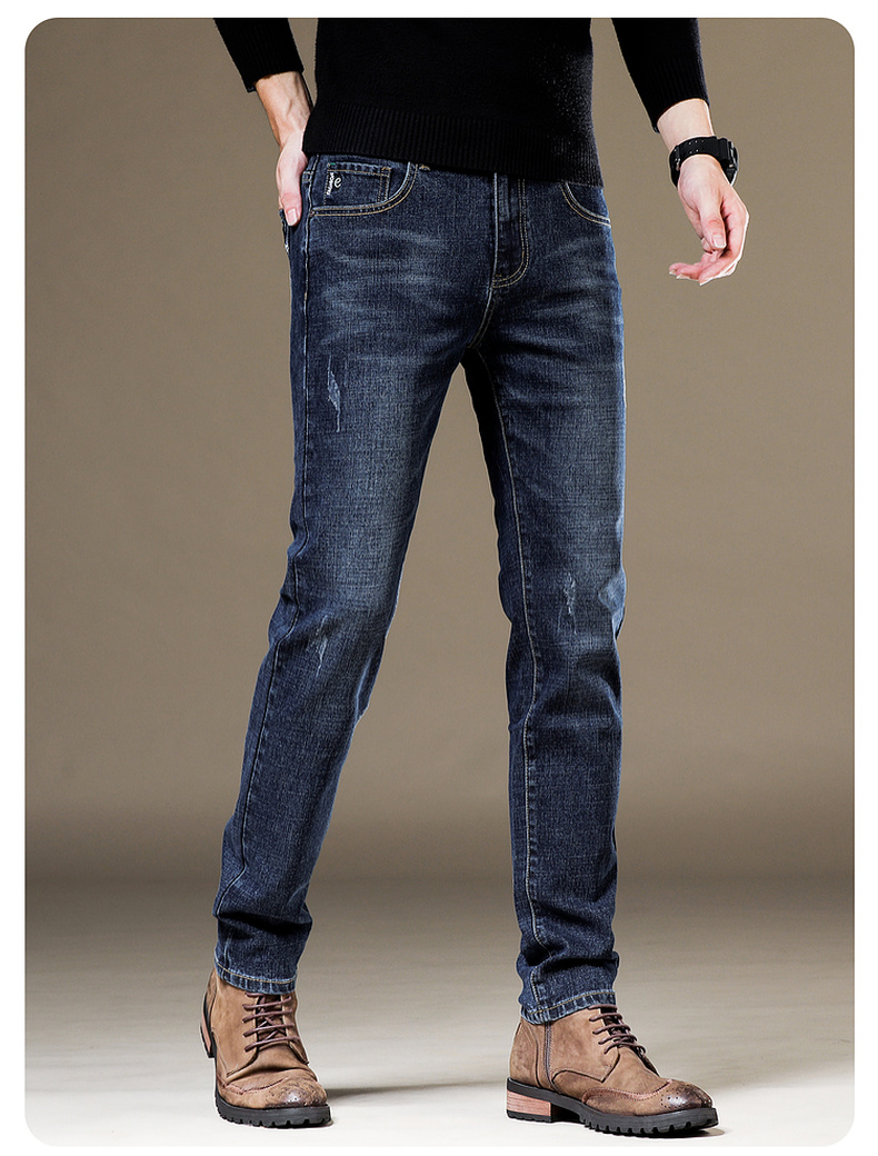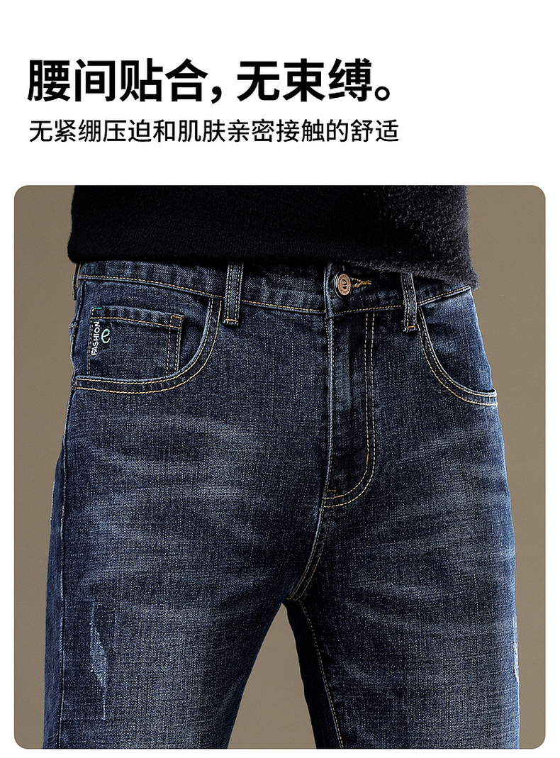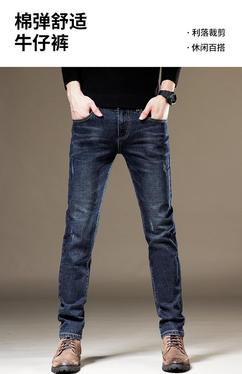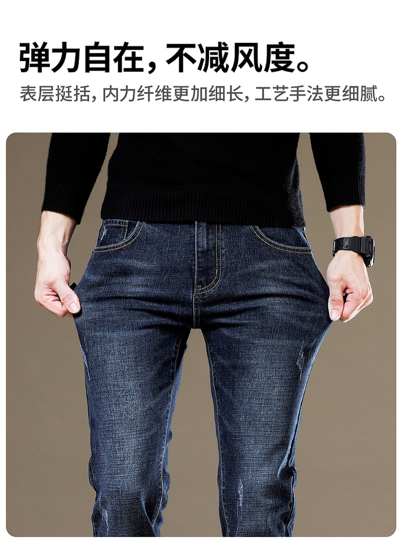 圣得西男士灰蓝色弹力牛仔裤2025年春季新款商务休闲百搭长裤潮