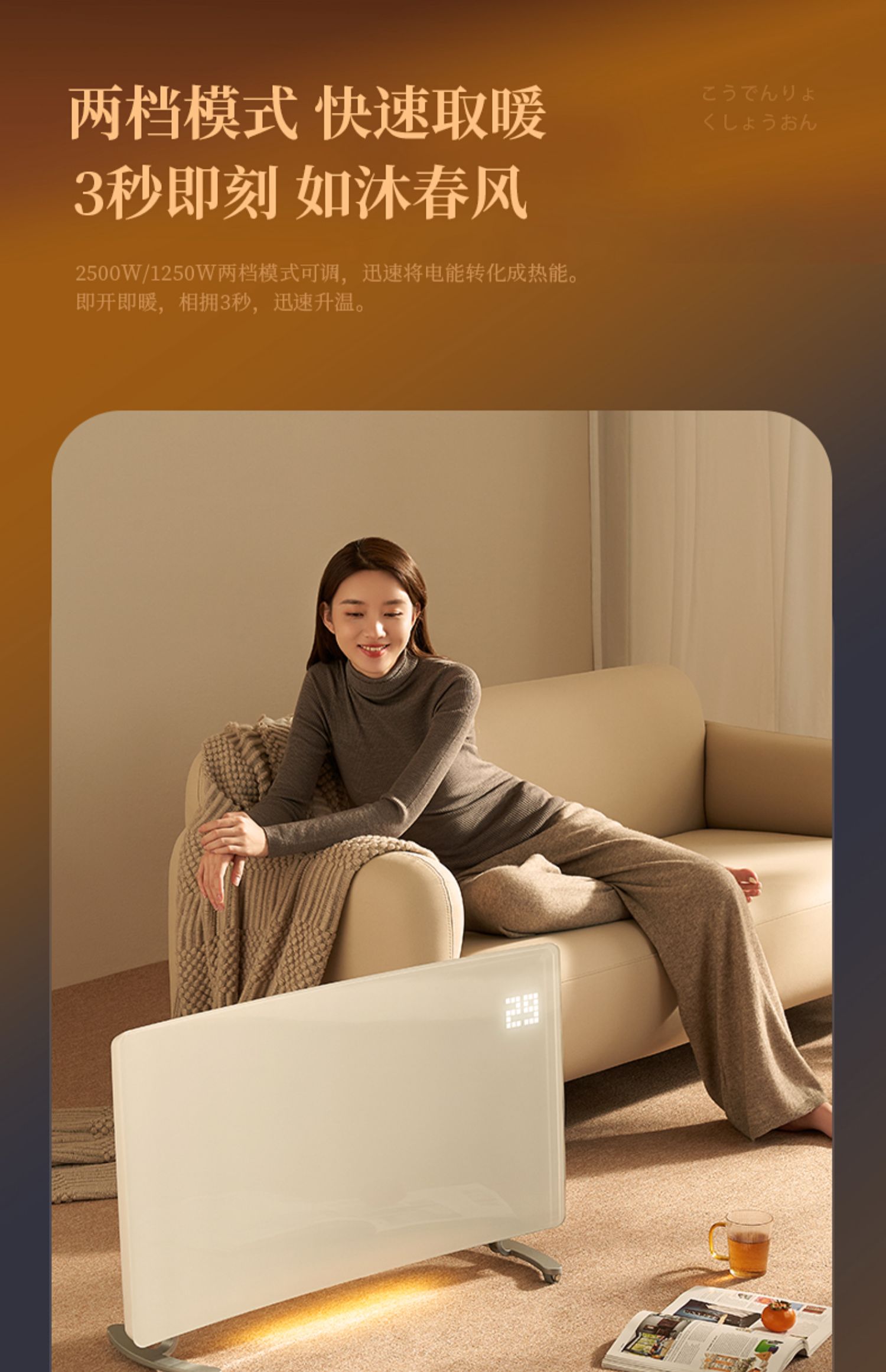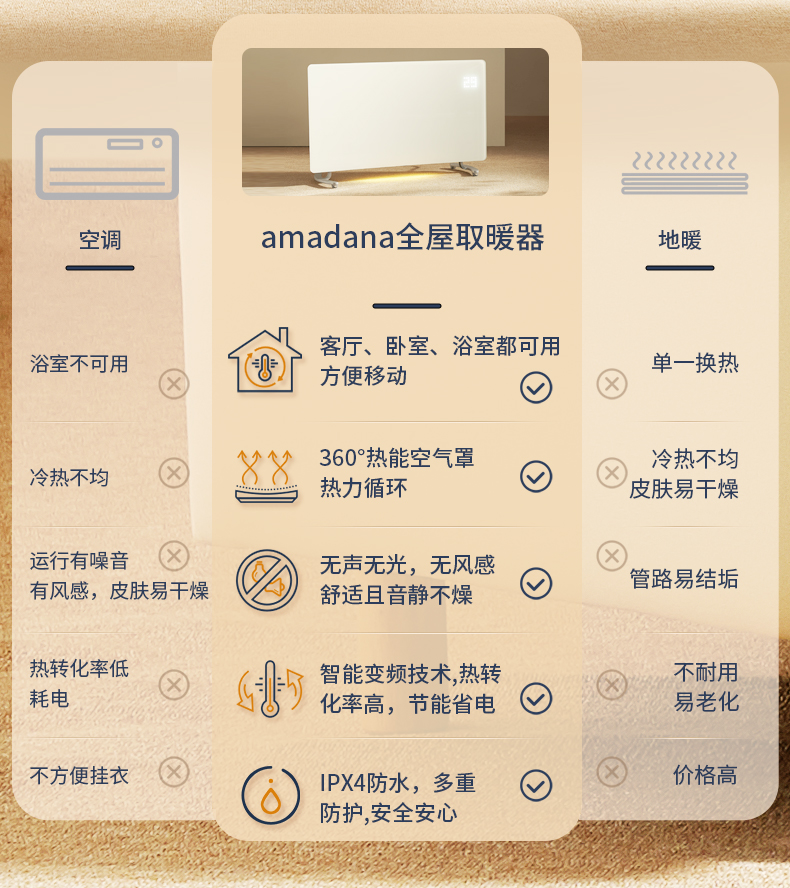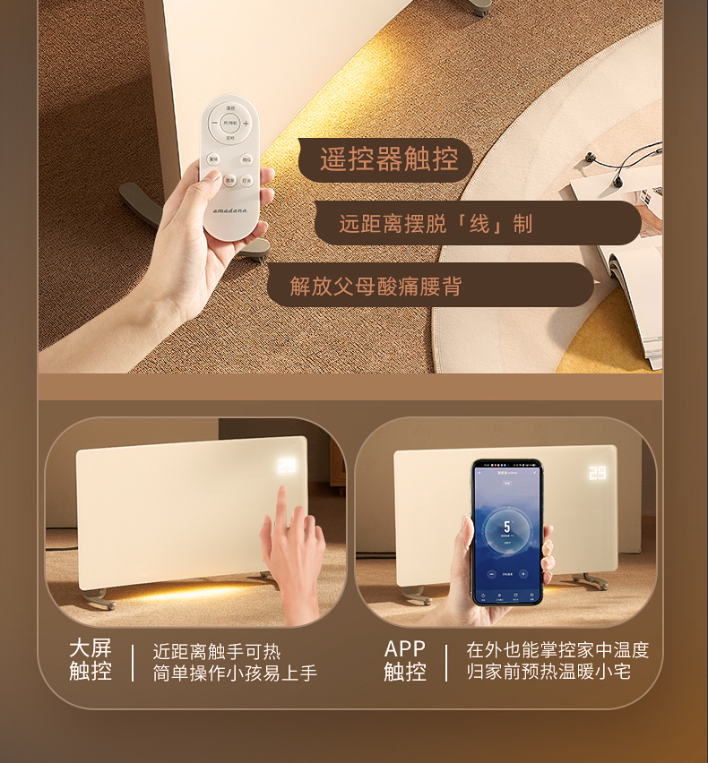 【曲面对流 整屋升温】amadana曲面对流取暖器HC07 极速升级3S速暖 暖面不噪 35㎡适用 2500W大功率 两档模式 IPX4防水居浴两用 APP控制+遥控+大屏触控 无光无噪