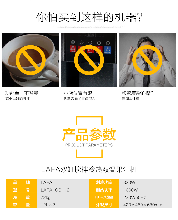 lafa咖啡饮料搅拌机商用冷热全自动双缸搅冷热拌机冷热饮机