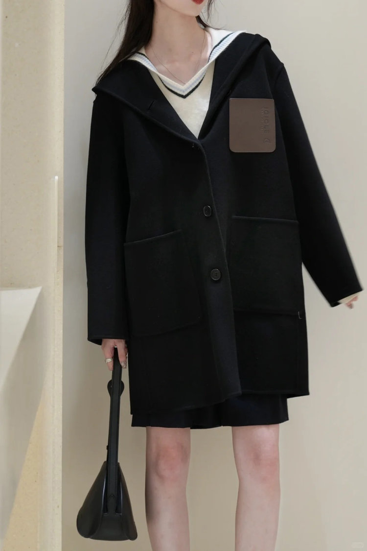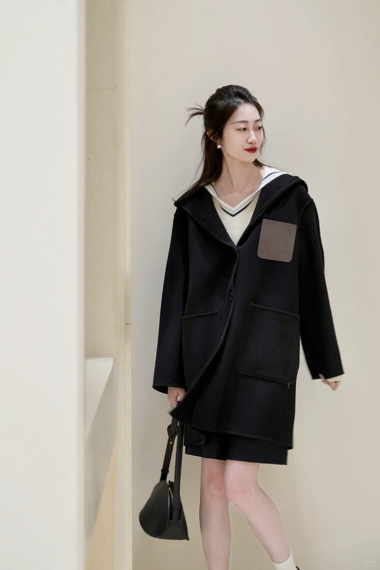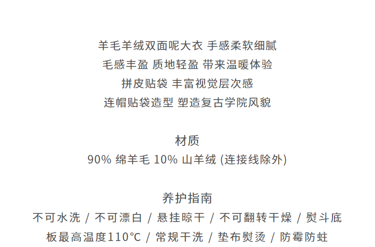 小禾同款羊毛羊绒双面呢大衣实用主义< 连帽双面呢大衣 >