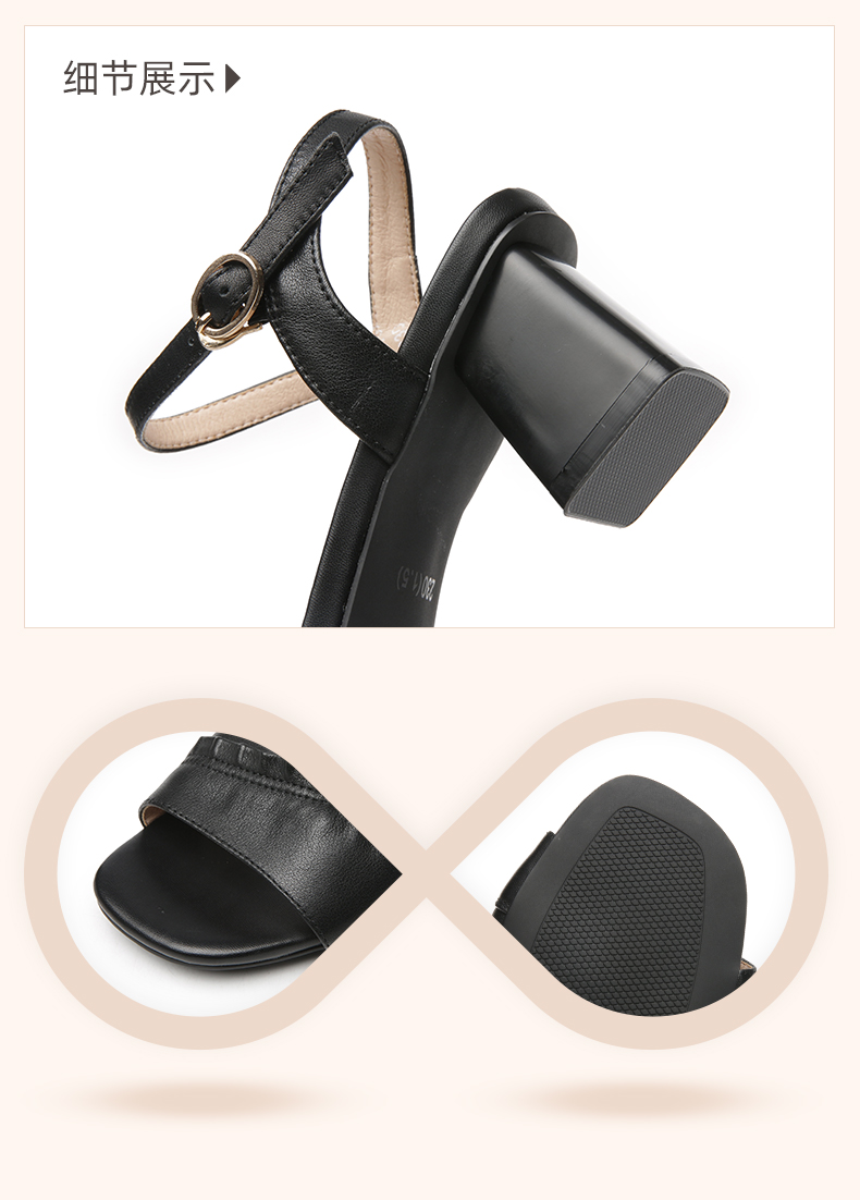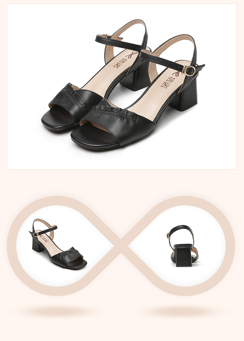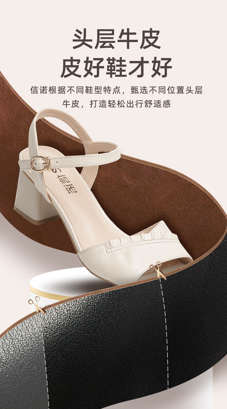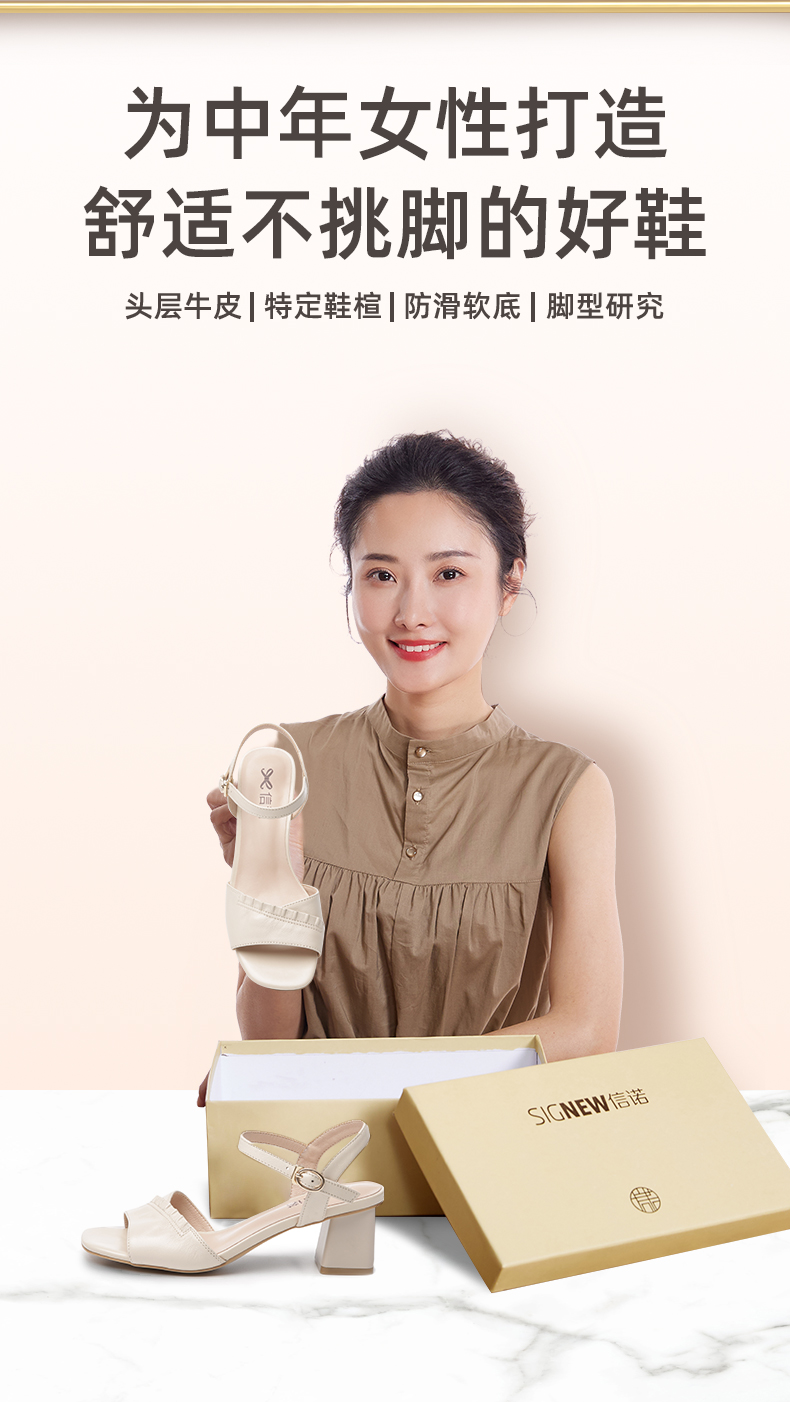 信诺高跟鞋女凉鞋2021年新款夏季粗跟休闲百搭软底一字扣带妈妈鞋21L239-3