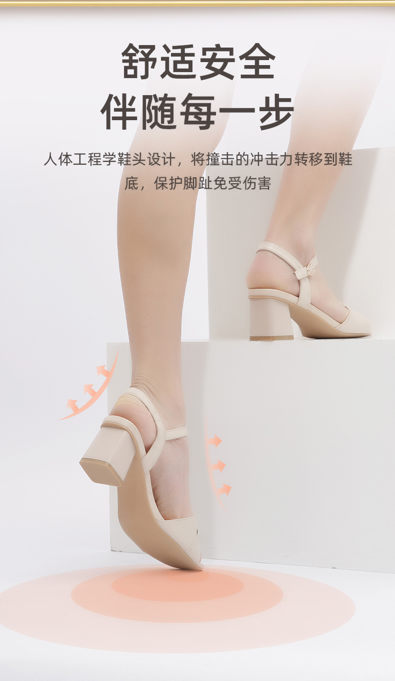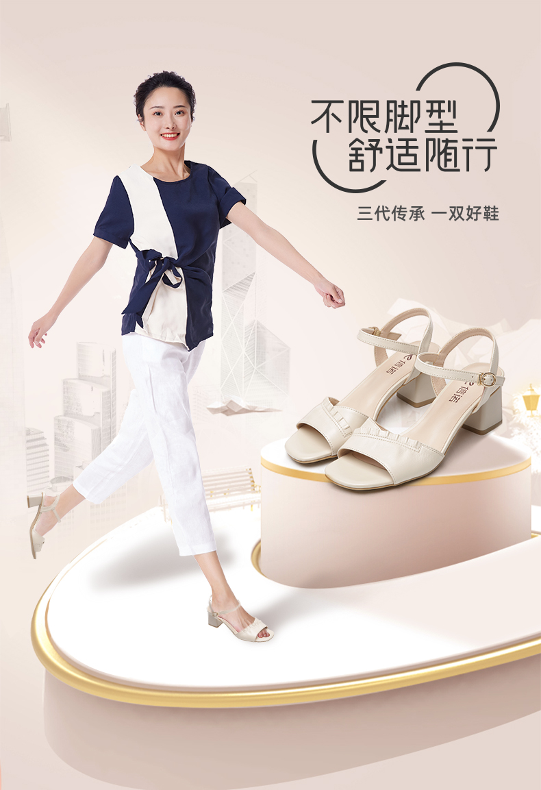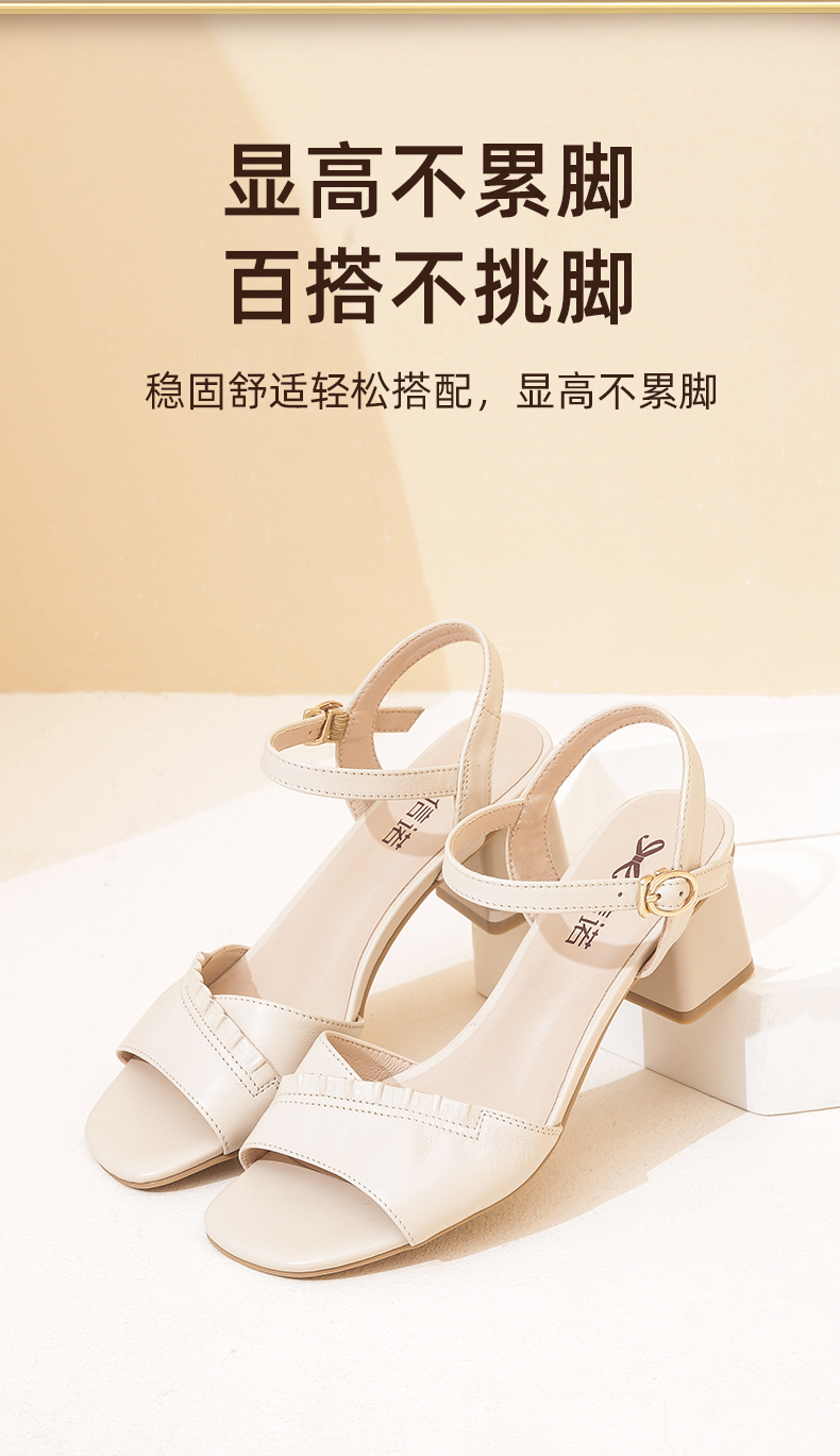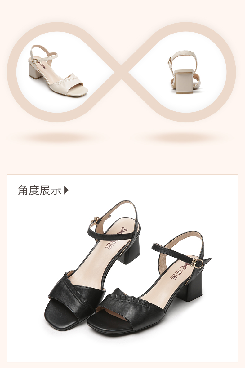 信诺高跟鞋女凉鞋2021年新款夏季粗跟休闲百搭软底一字扣带妈妈鞋21L239-3