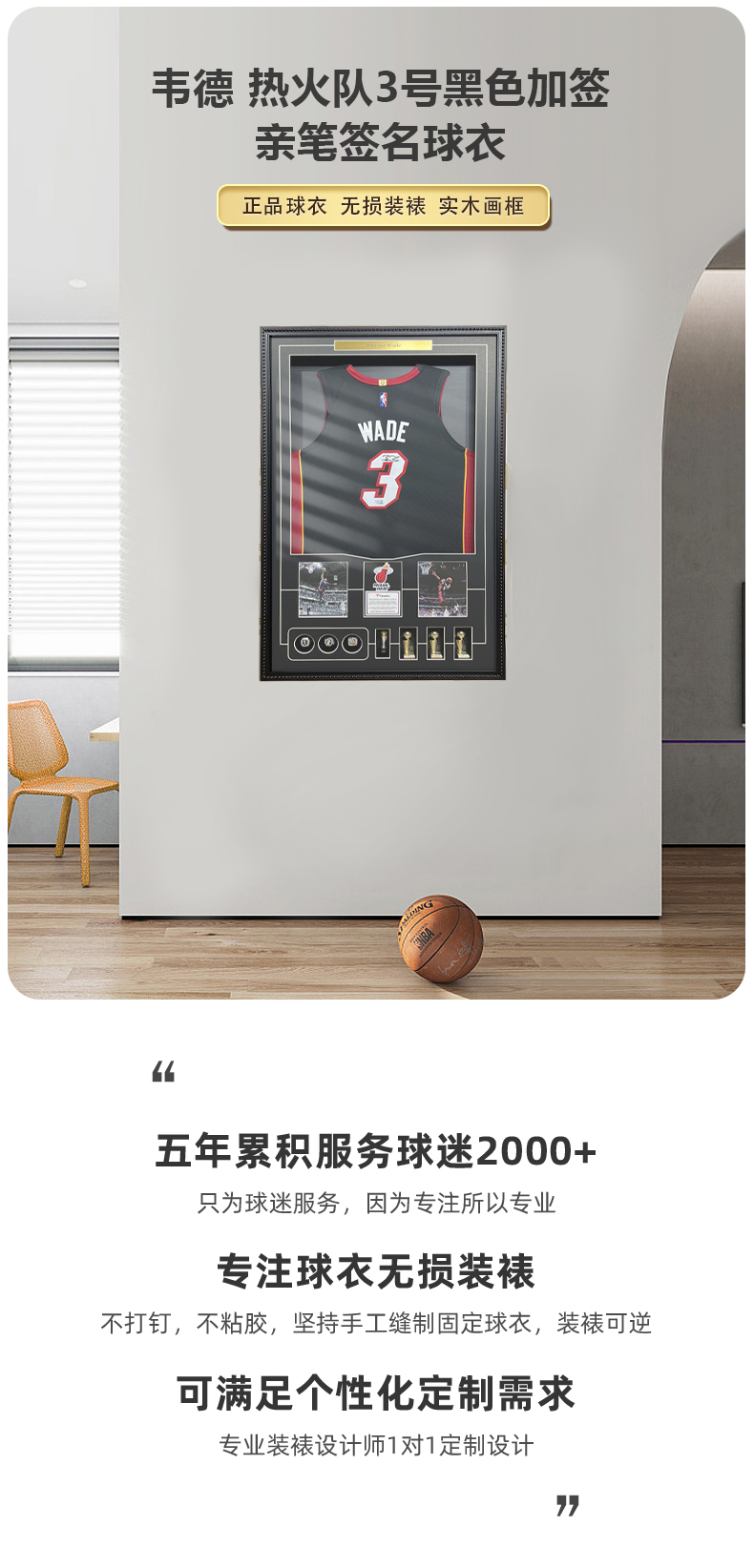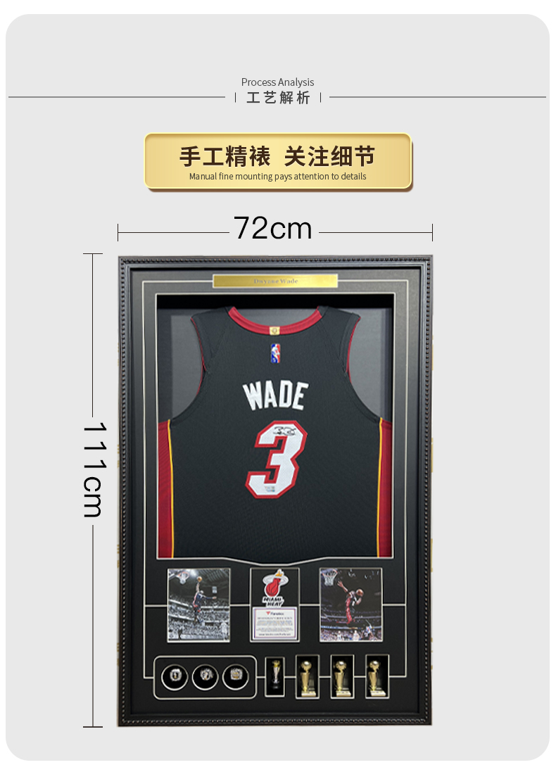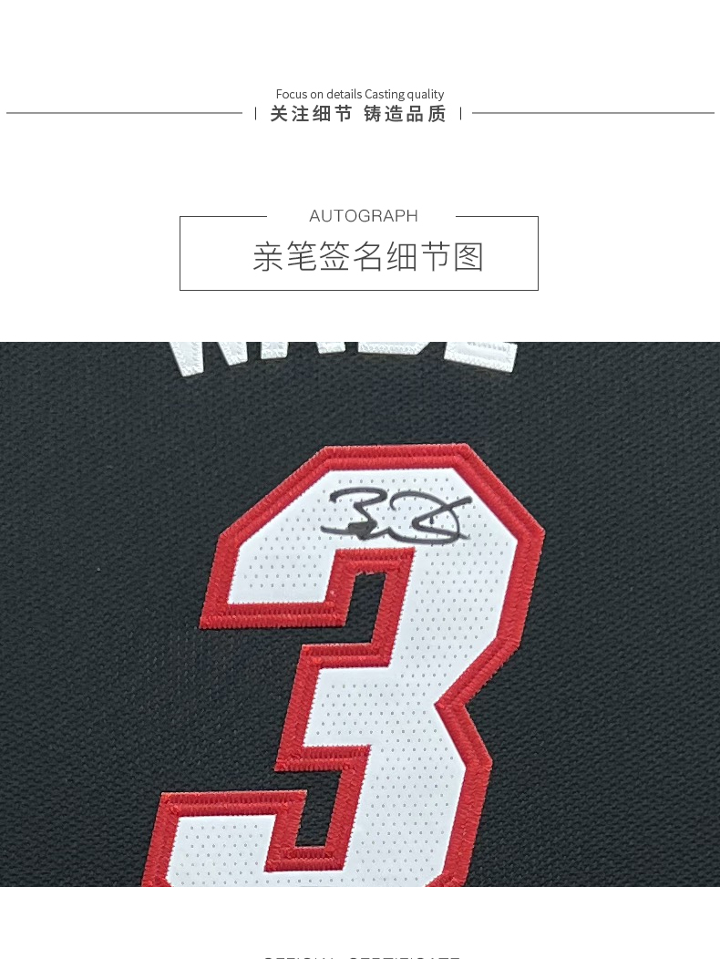 收藏系列 韦德 热火队3号黑色 亲笔签名球衣