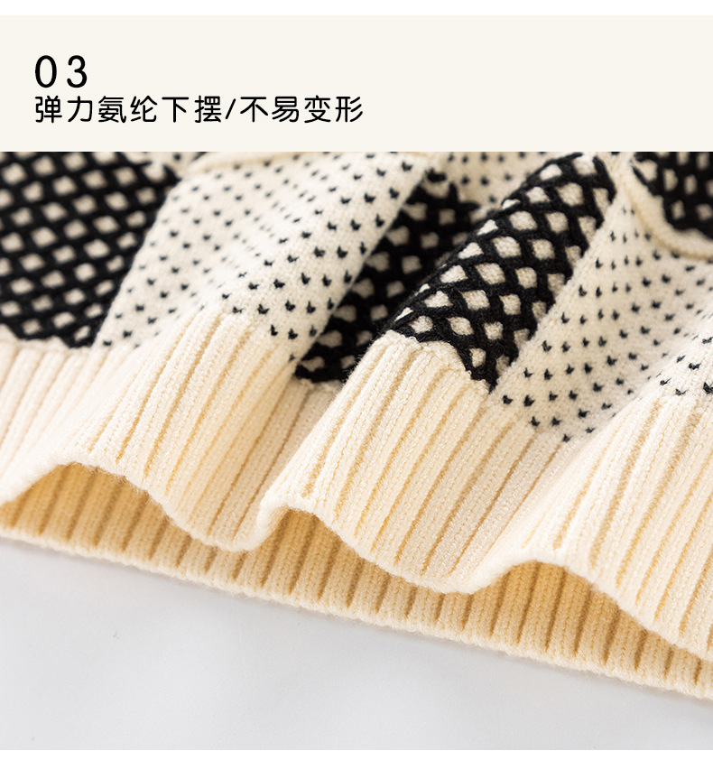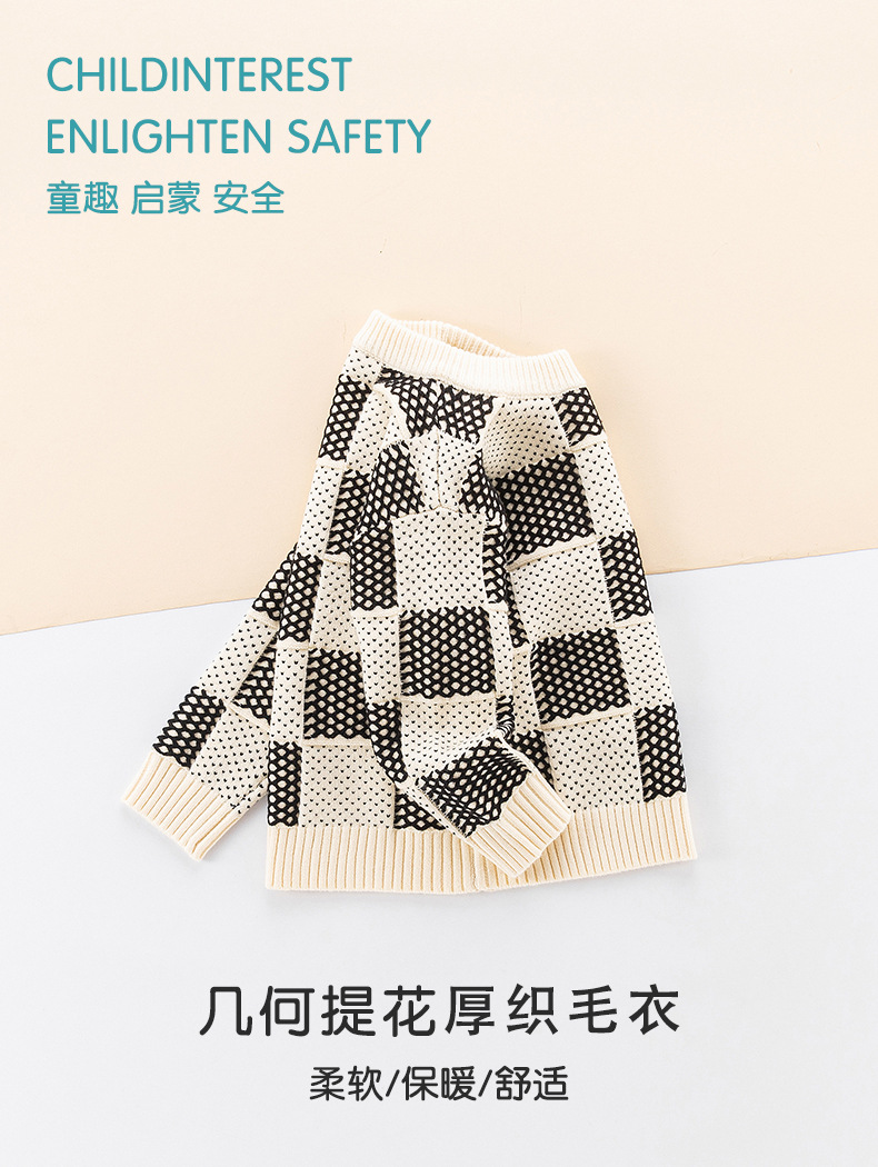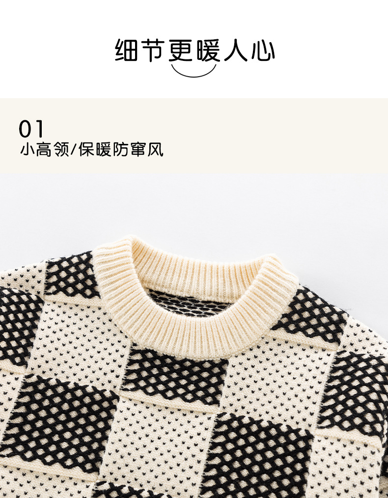 儿童毛衣冬季新款男童加厚格子毛衫女童保暖毛线衣冬装小童套头衫