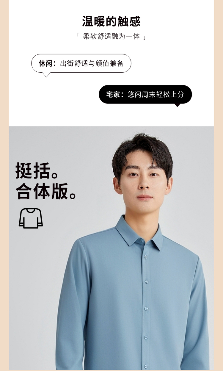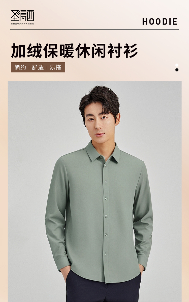 圣得西商务休闲纯色舒适不臃肿衬衣2025秋季新款加绒保暖长袖衬衫