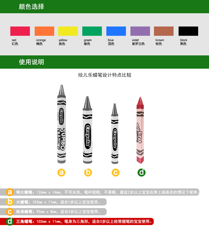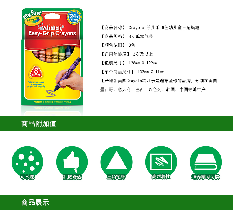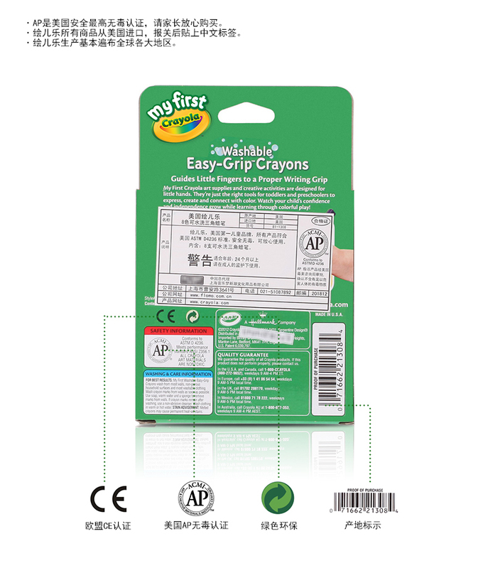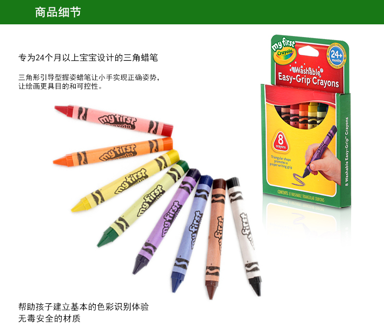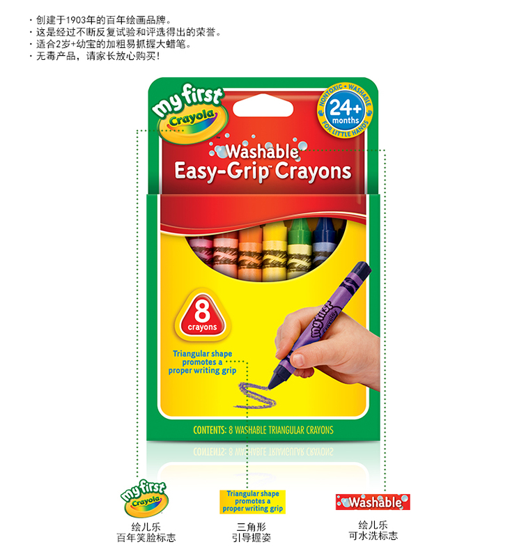 绘儿乐幼儿系列8色可水洗三角蜡笔81-1308