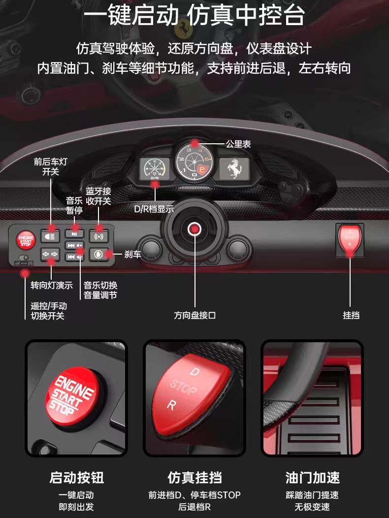 法拉利488童车,常规版,12V双电机,2.4G,新公司名