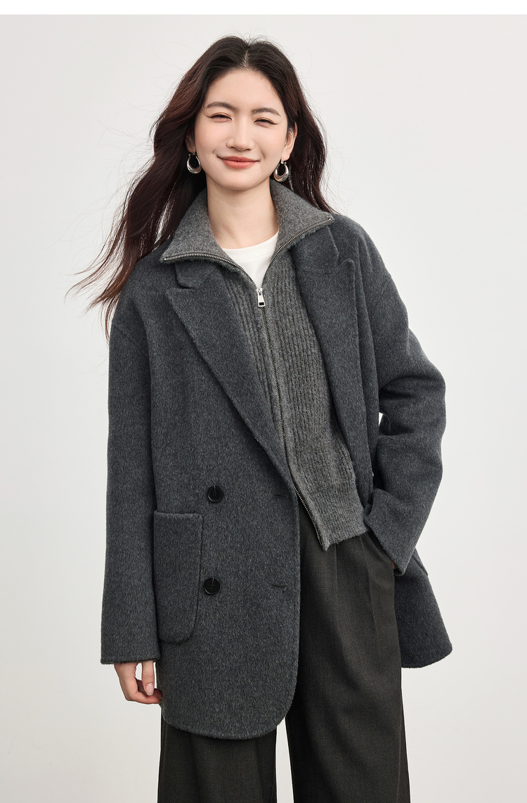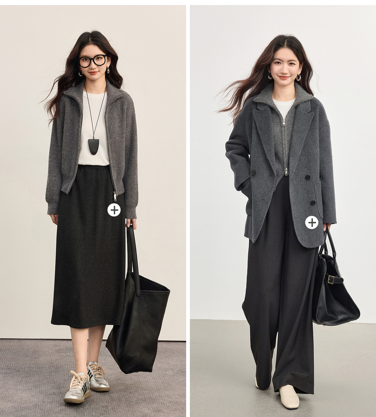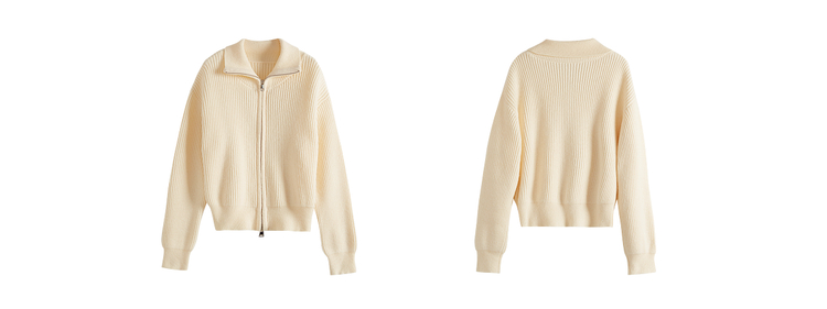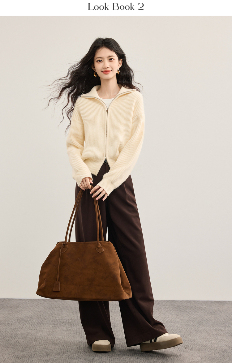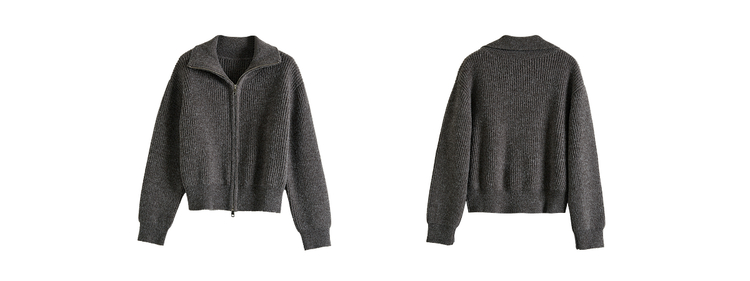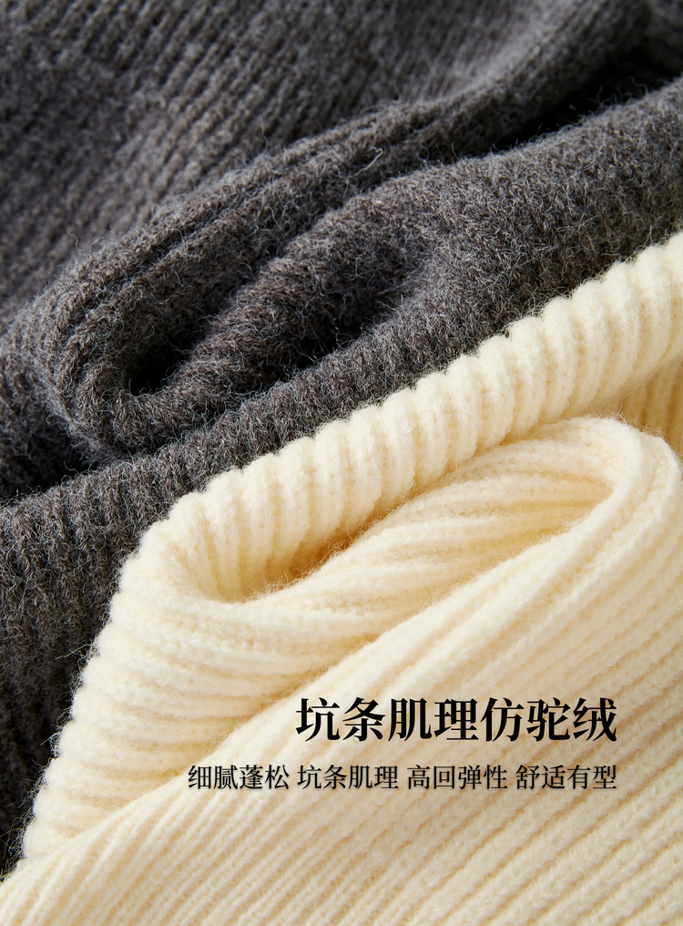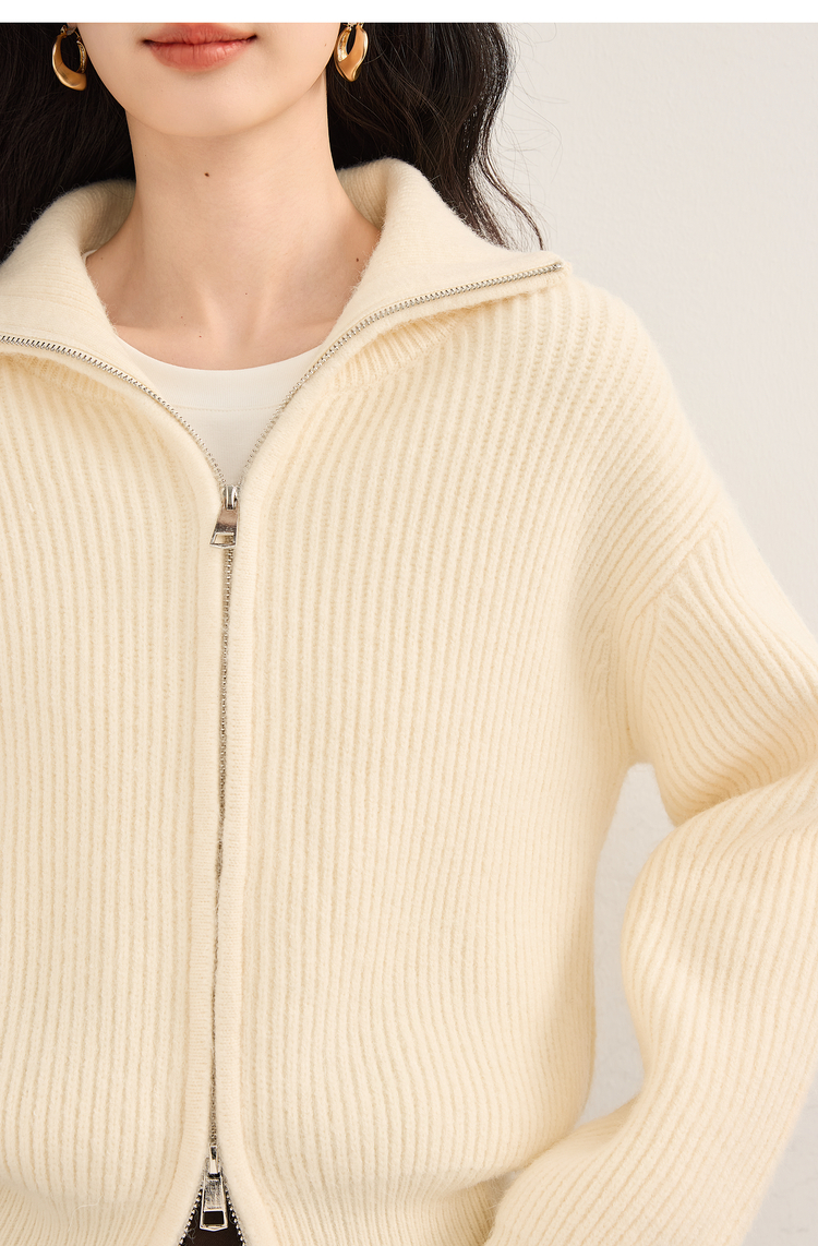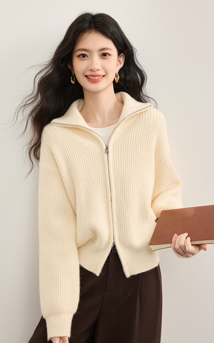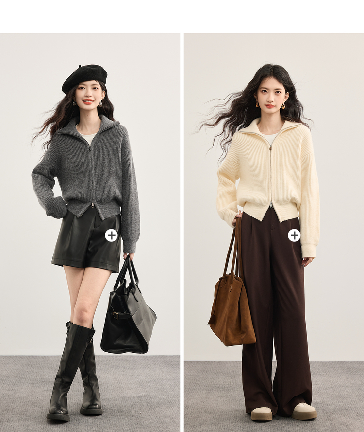 【10/1新品】熙世界仿驼绒坑条毛衣开衫女秋冬2025新款双头拉链翻领针织短外套