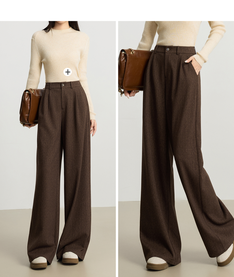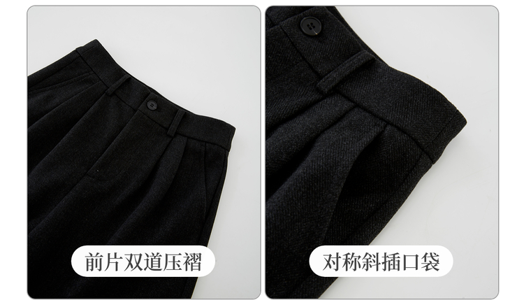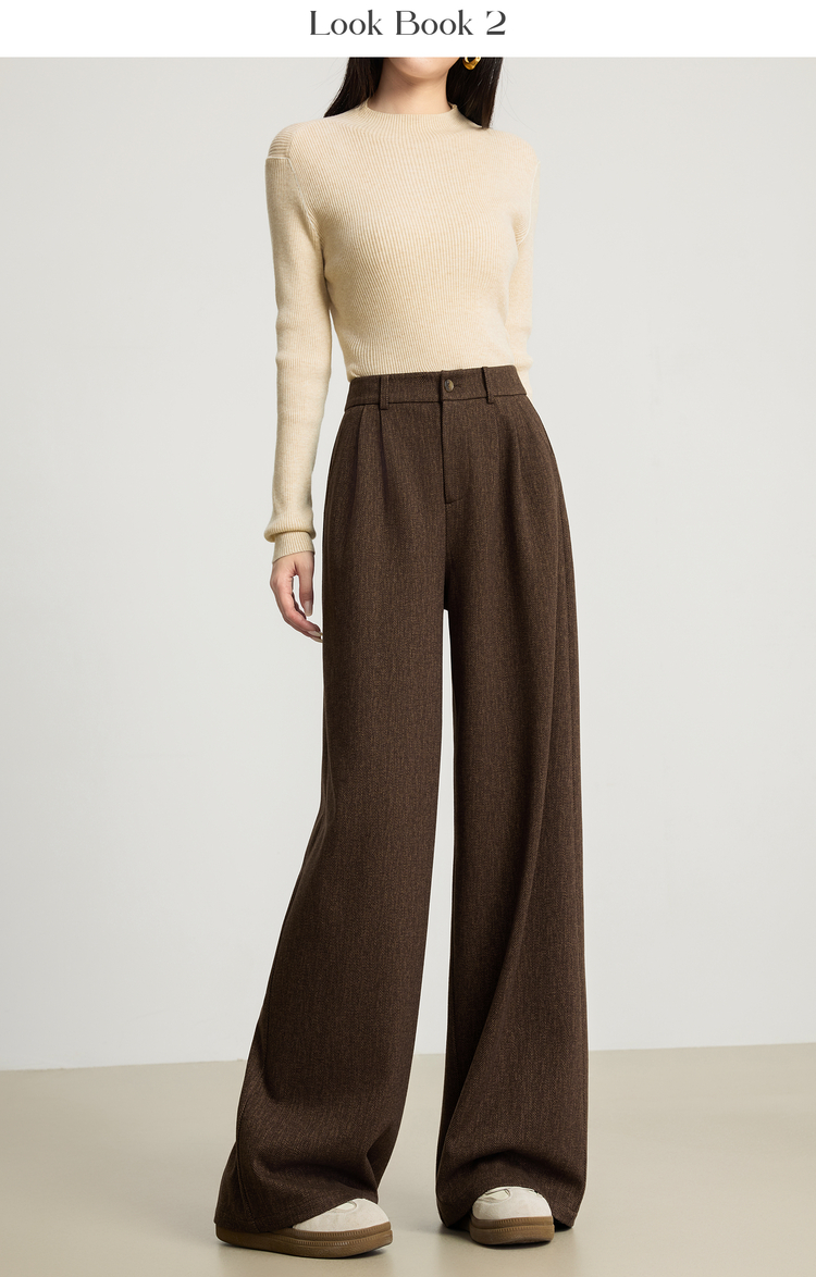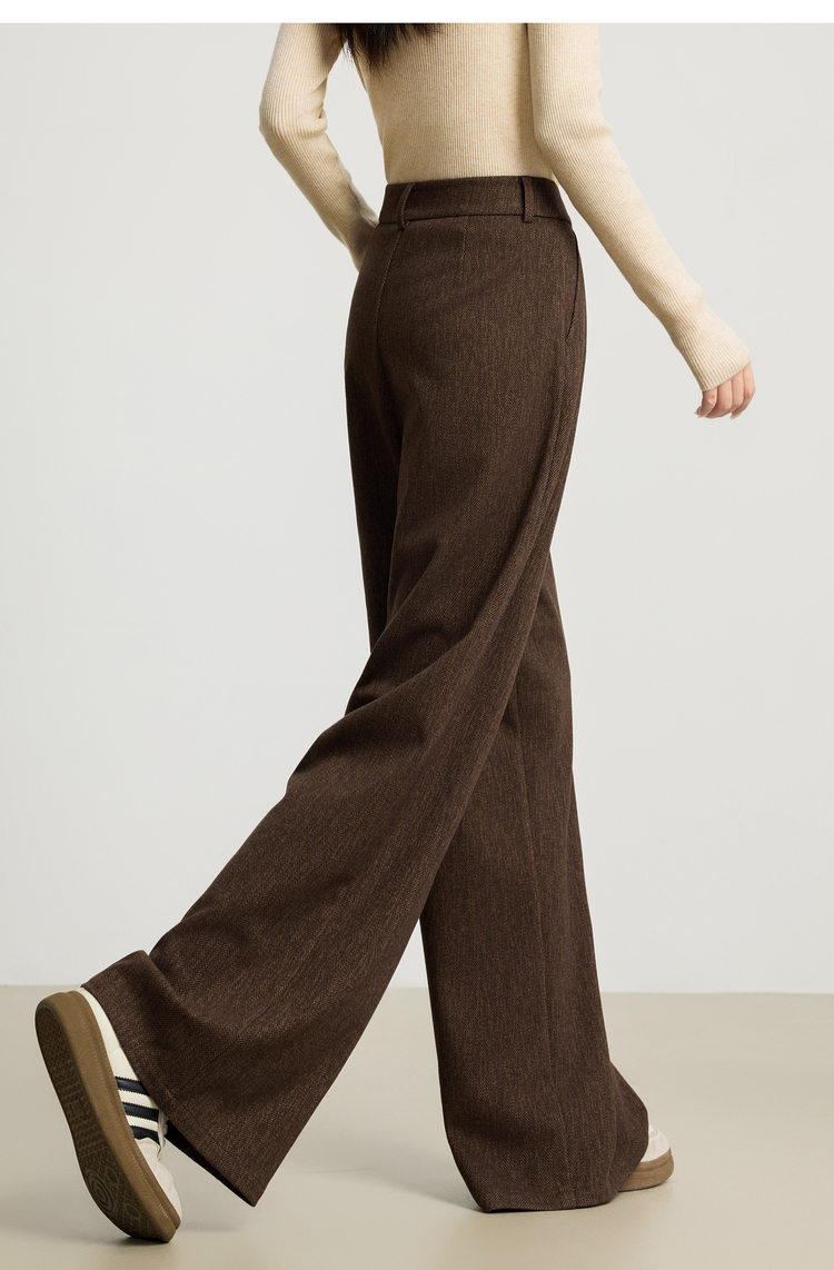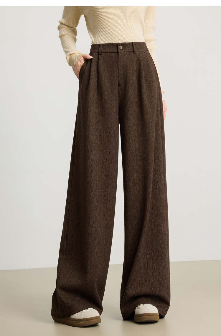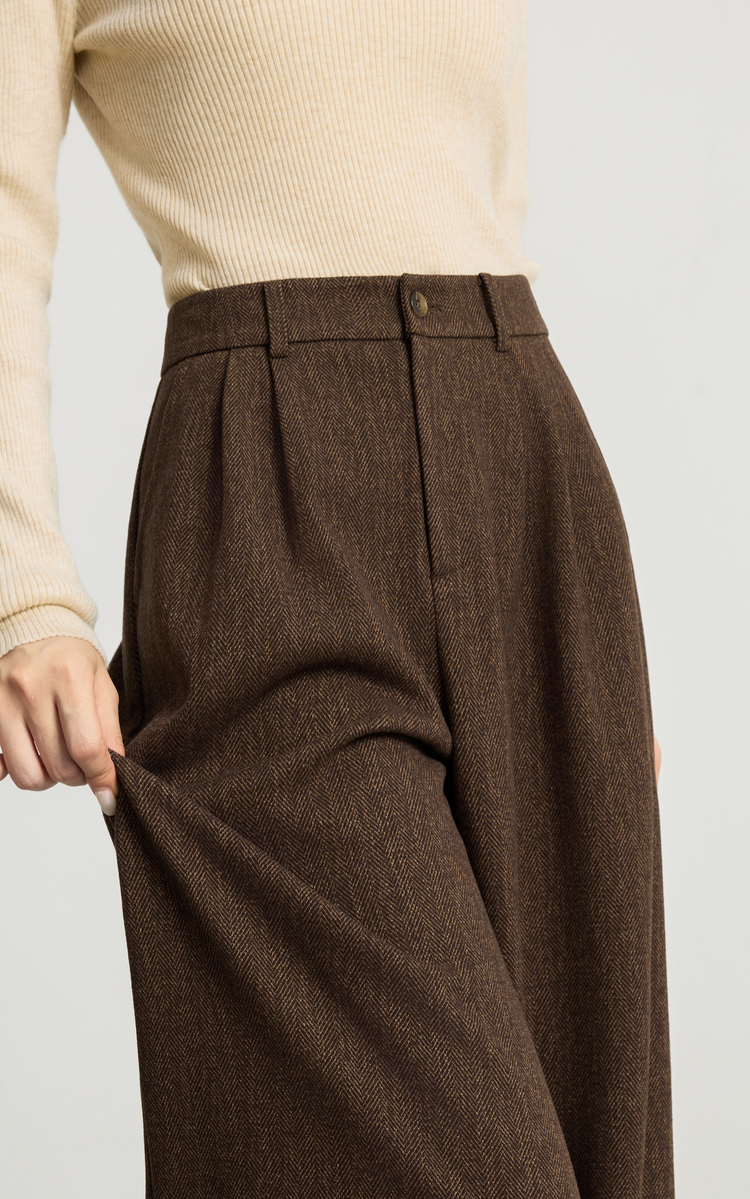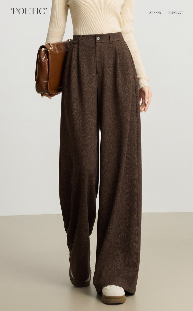 【10/23新品】熙世界人字纹毛呢阔腿裤女2025秋冬季窄版直筒针织西装裤休闲裤子