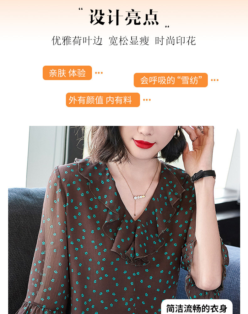 七分袖雪纺衫女春秋季2026女士衬衫中年妈妈波点中袖上衣时尚洋气