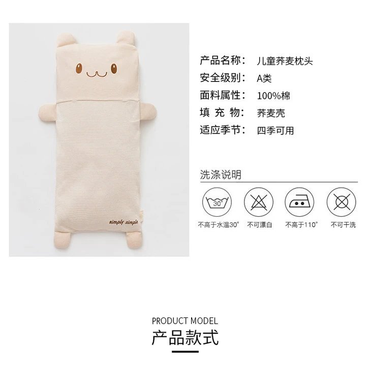 丨有机丨素道有机彩棉 婴童荞麦壳枕头25*50cm 儿童幼儿园午休枕一只装护颈小枕头
