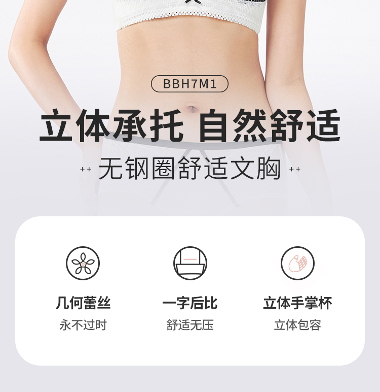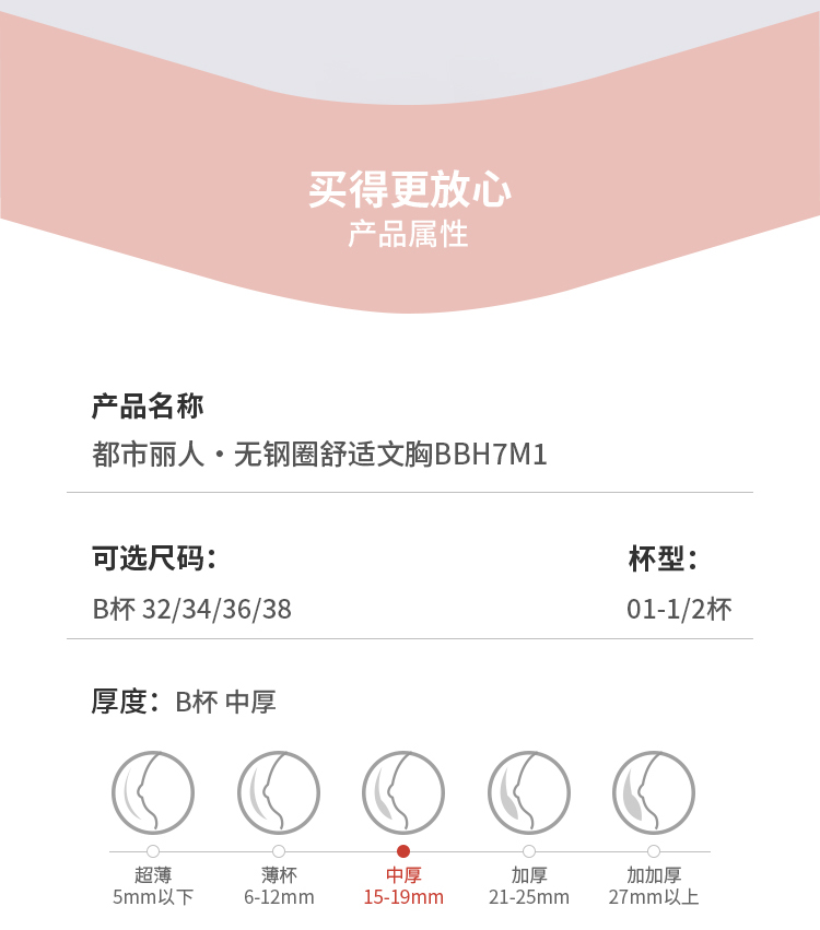 都市丽人自然舒适B杯常规内衣中厚蕾丝无钢圈常规文胸BBH7M1