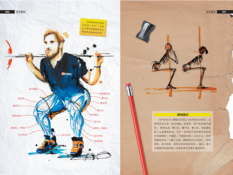 近500幅手绘人体运动解剖图彩图和动作示范照片