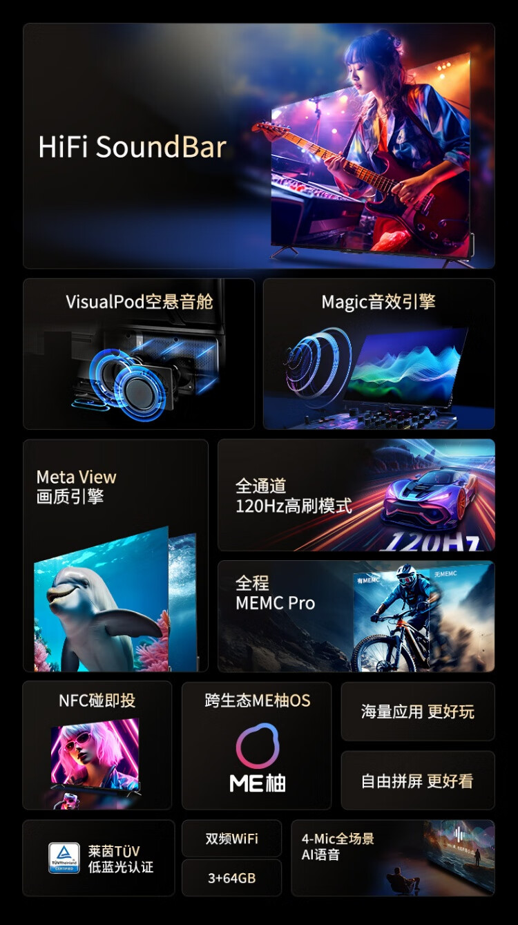 康佳康佳(KONKA)65英寸 65M5 感官超新星 VisualPod 空悬音舱 3+64G