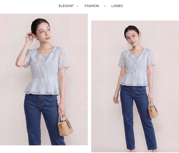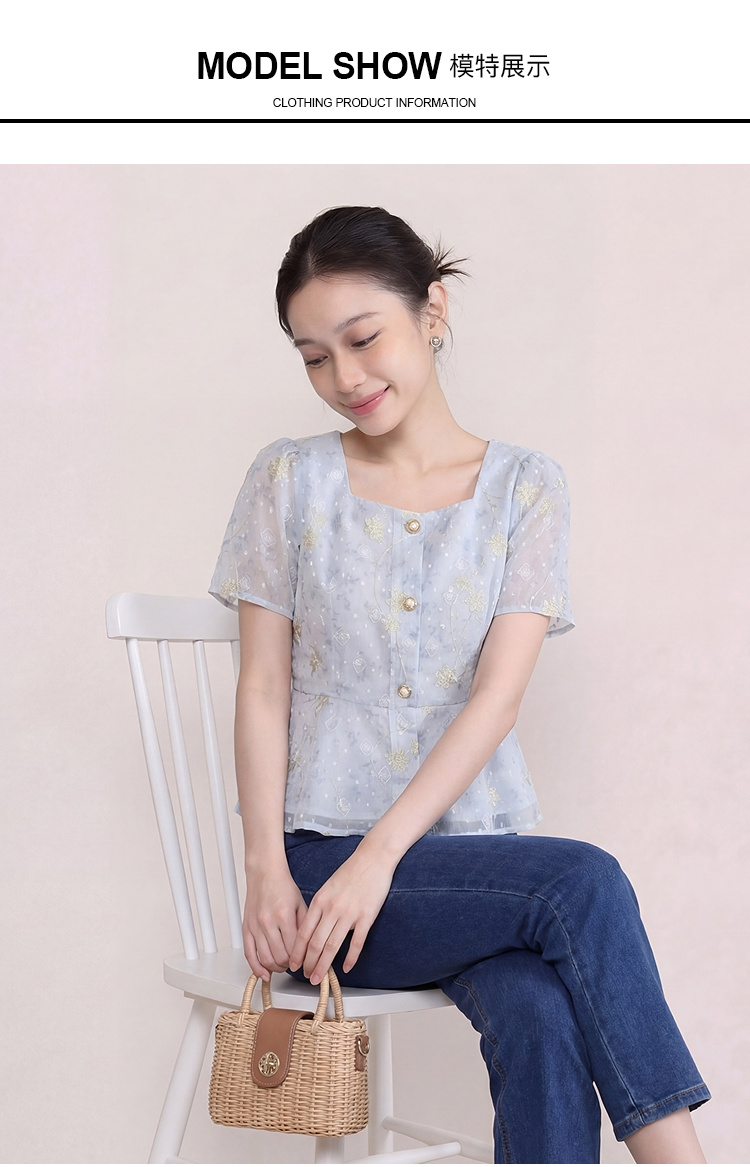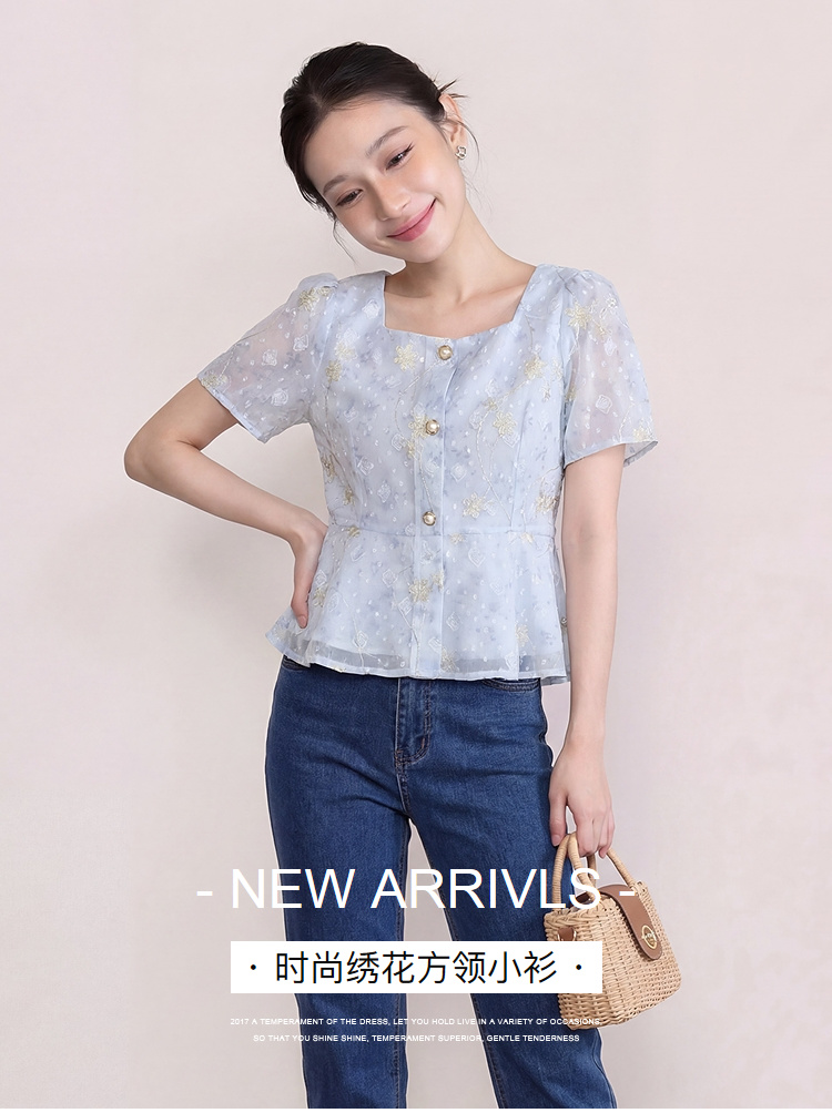 奢姿大码女装2026夏季减龄印花上衣胖妹妹立体刺绣时尚方领小衫