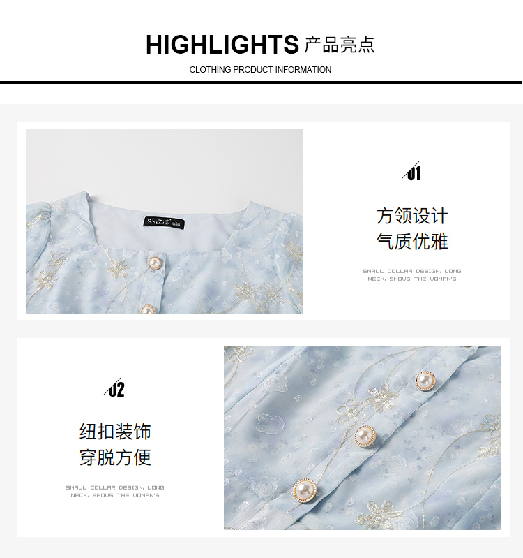 奢姿大码女装2026夏季荷叶边碎花方领连衣裙胖妹妹减龄时尚裙子9962836092