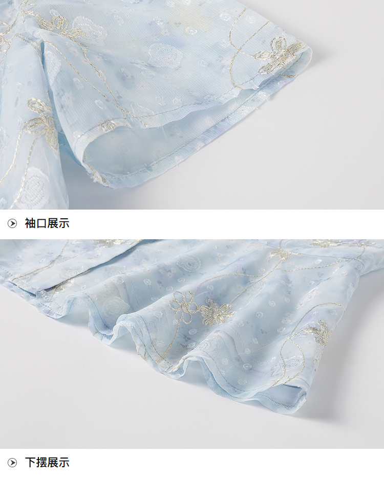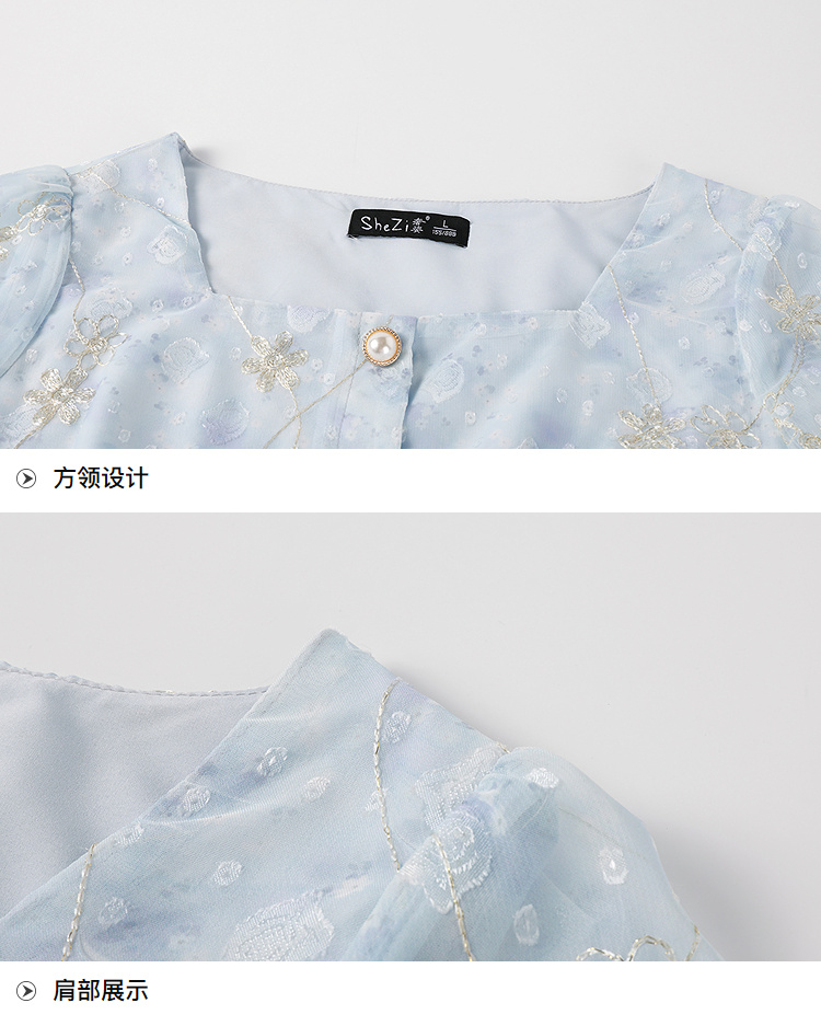 奢姿大码女装2026夏季波浪减龄绣花V领两件套胖妹妹时尚甜美套装9962994478AB