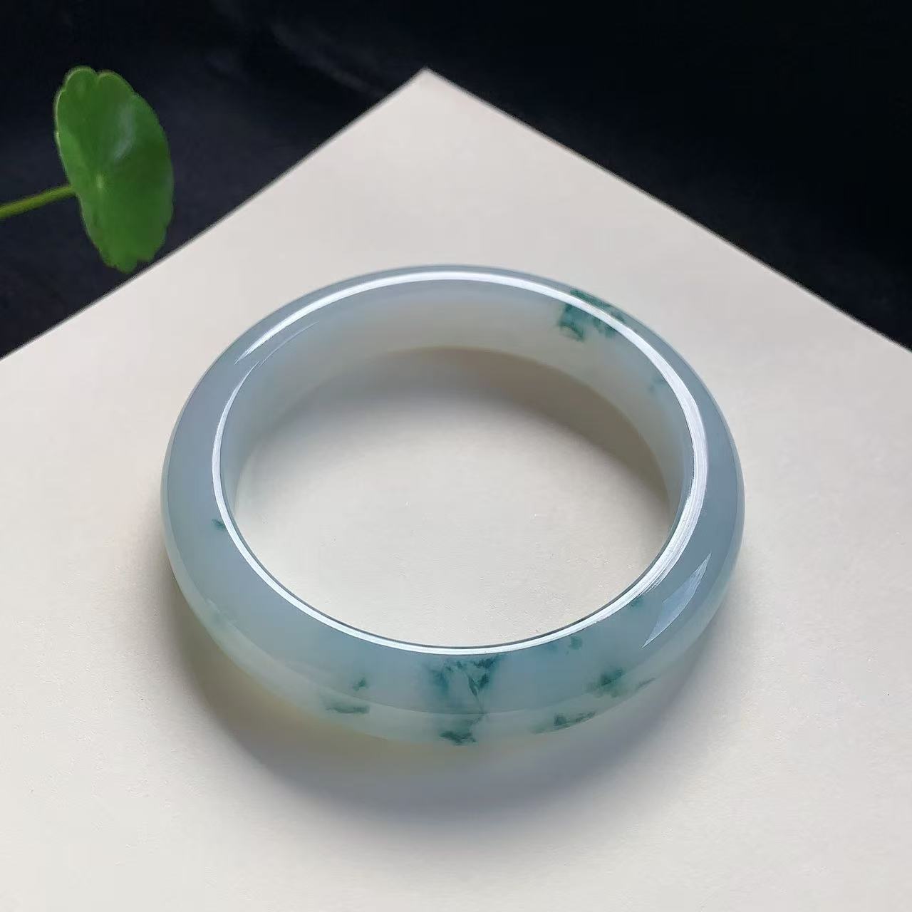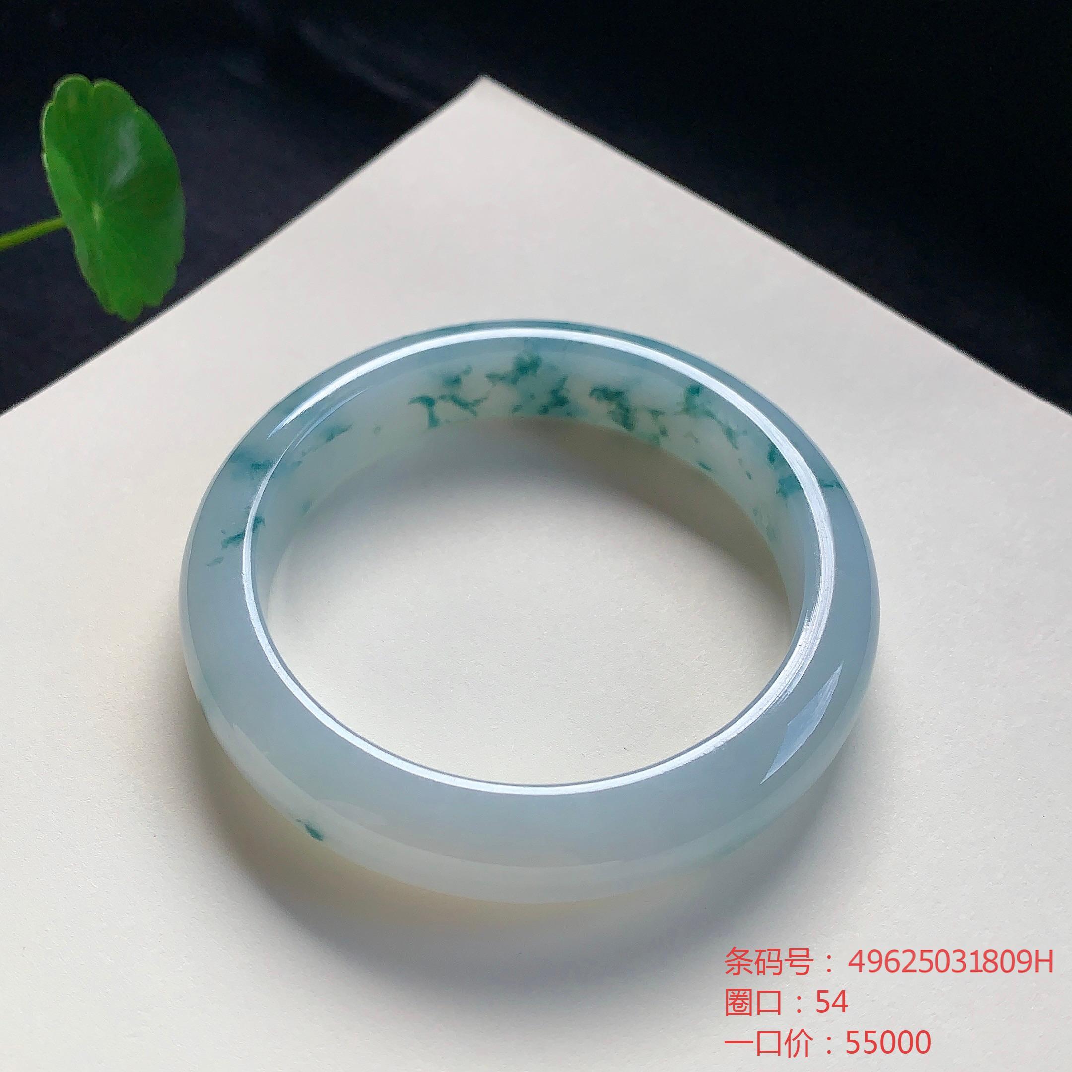 高货飘花翡翠手镯 传家宝温润圆满中式翡翠手镯49625031809H(一口价)
