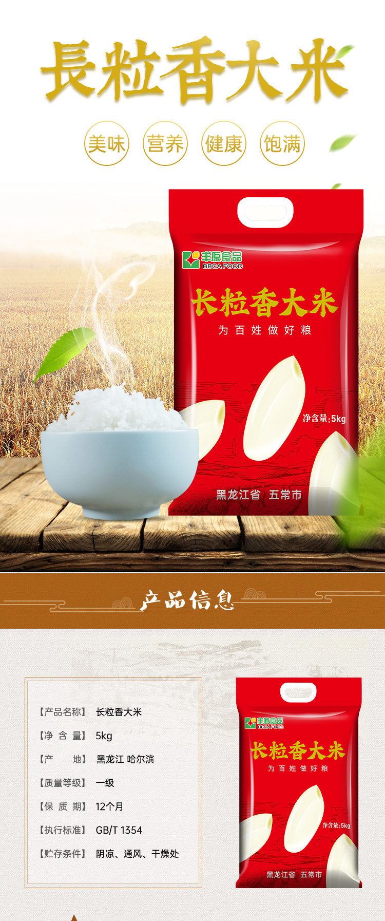 丰原 五常长粒香大米5kg/袋 颗粒饱满 色泽清亮 袋装大米 72小时发货