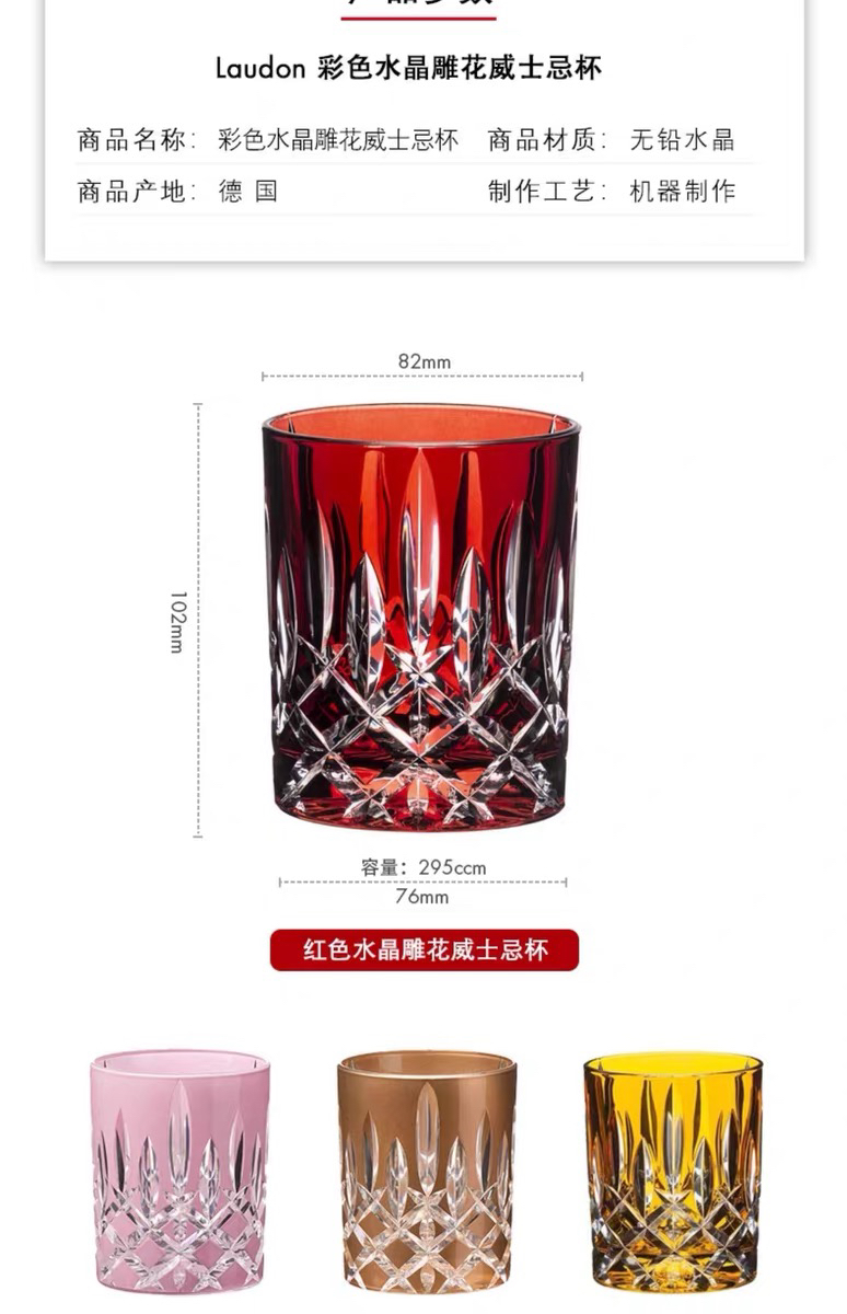 奥地利RIEDEL威士忌杯雕花古典白兰地杯洋酒杯进口水晶切割烈酒杯